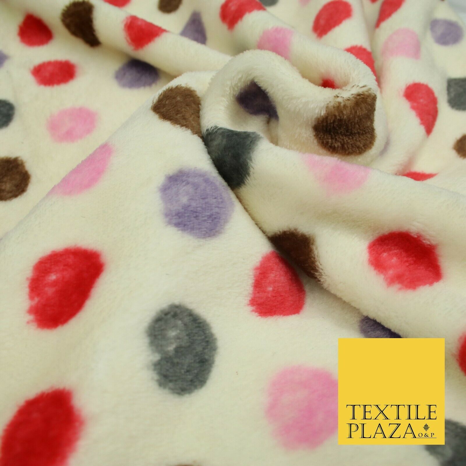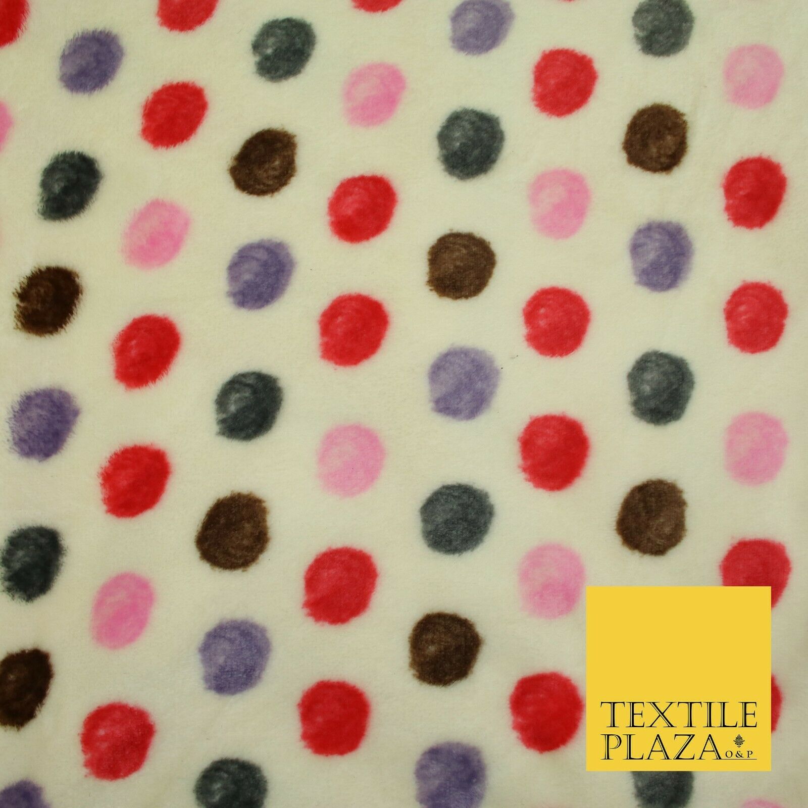 Super Soft Cream Red Multi Spotted Cuddle Fleece Double Sided Fabric 58" 1841