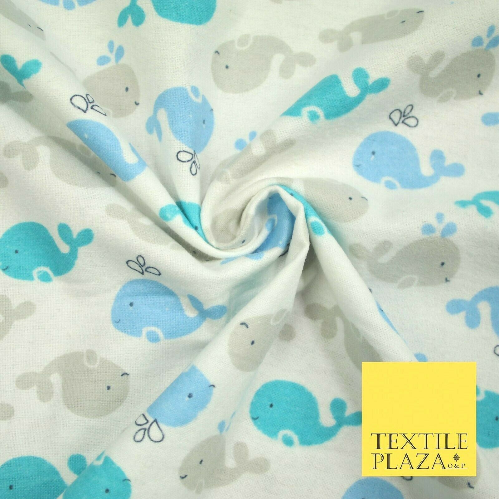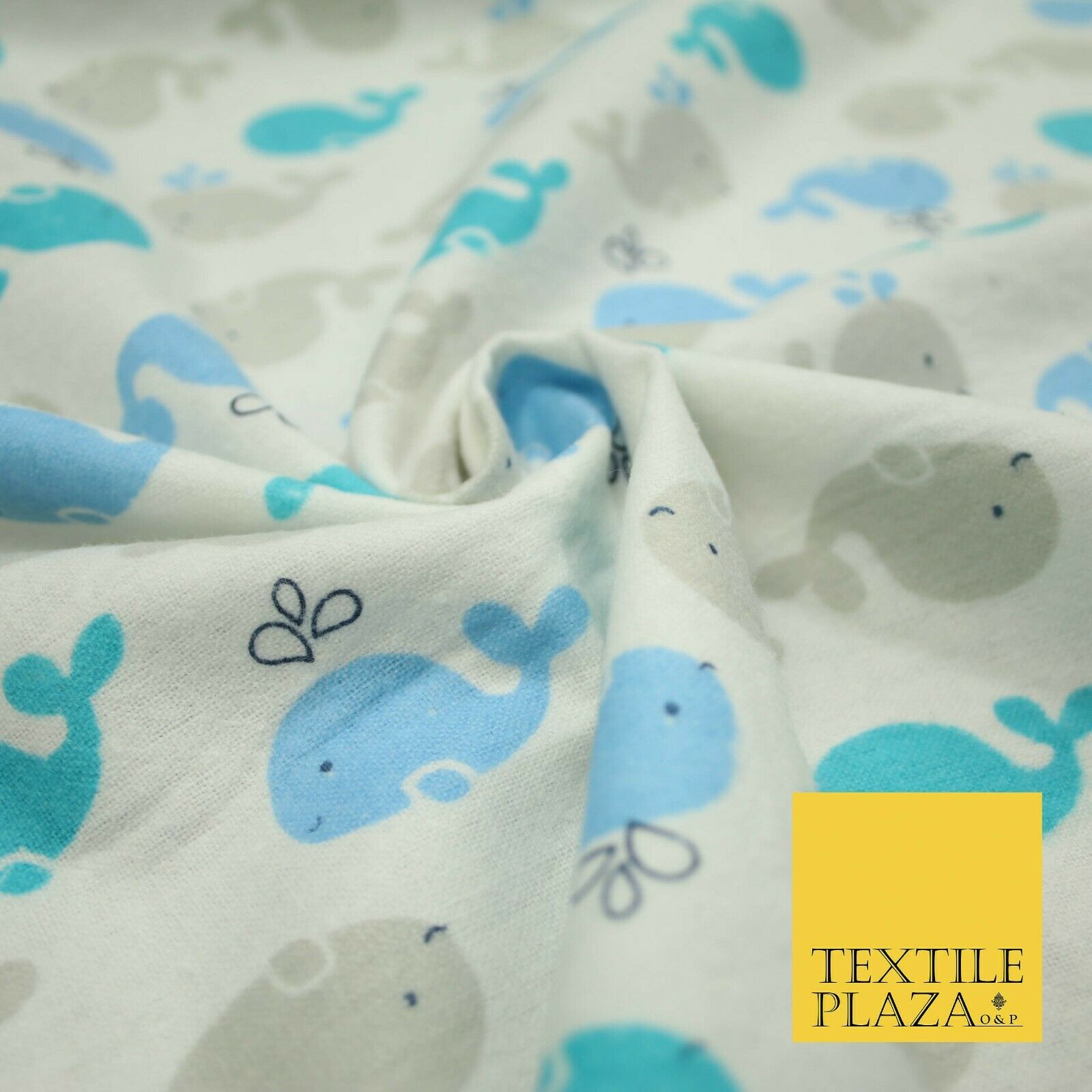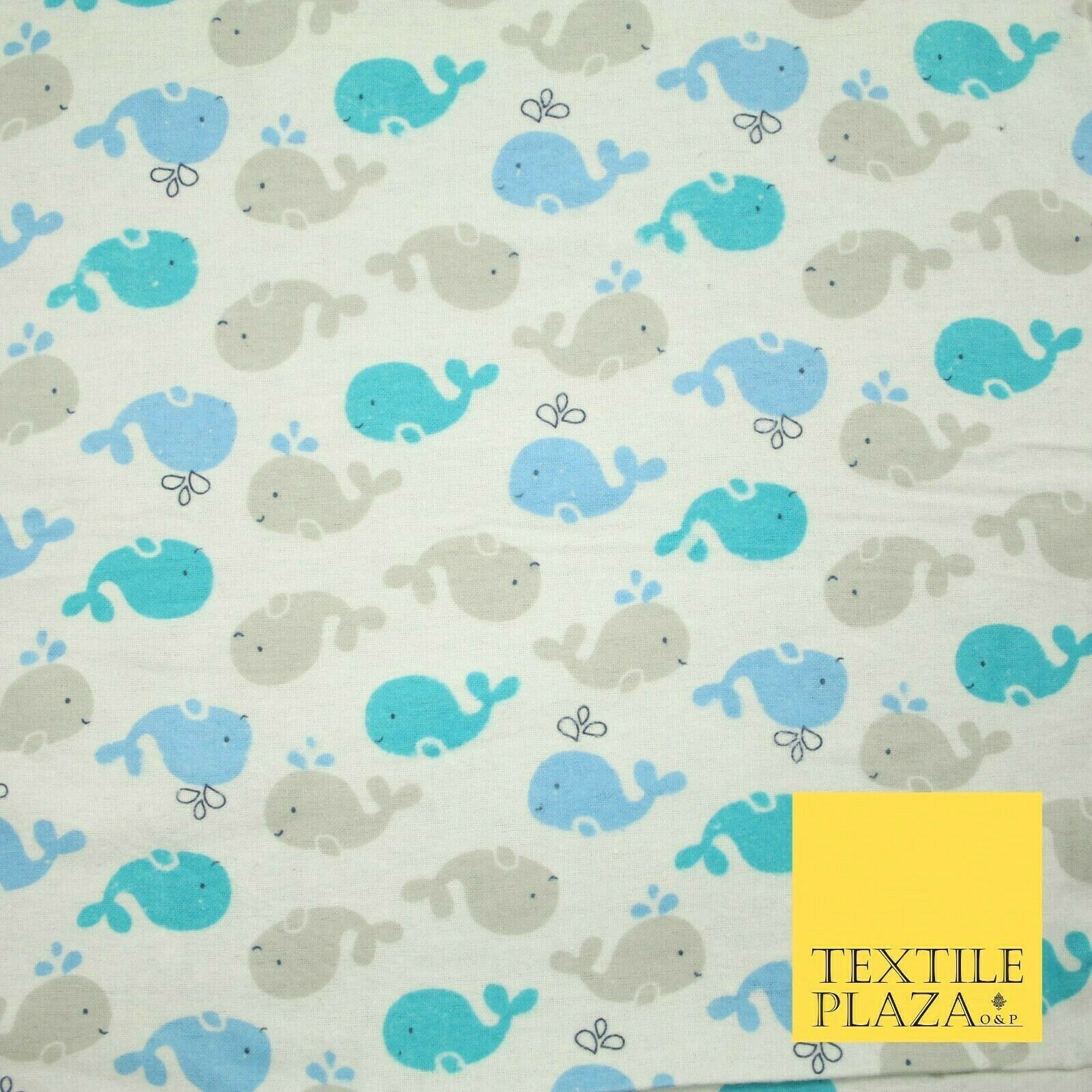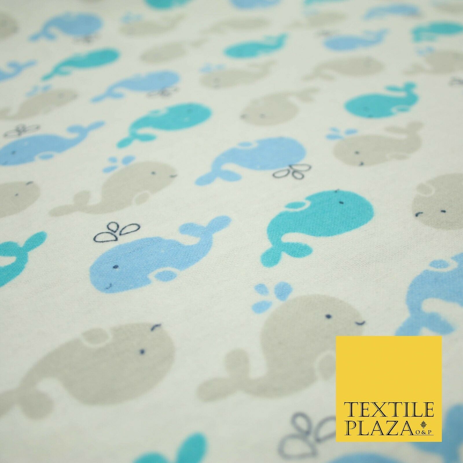 Swimming Whale Dolphin Printed Brushed Cotton Winceyette Flannel Fabric 58" 5075