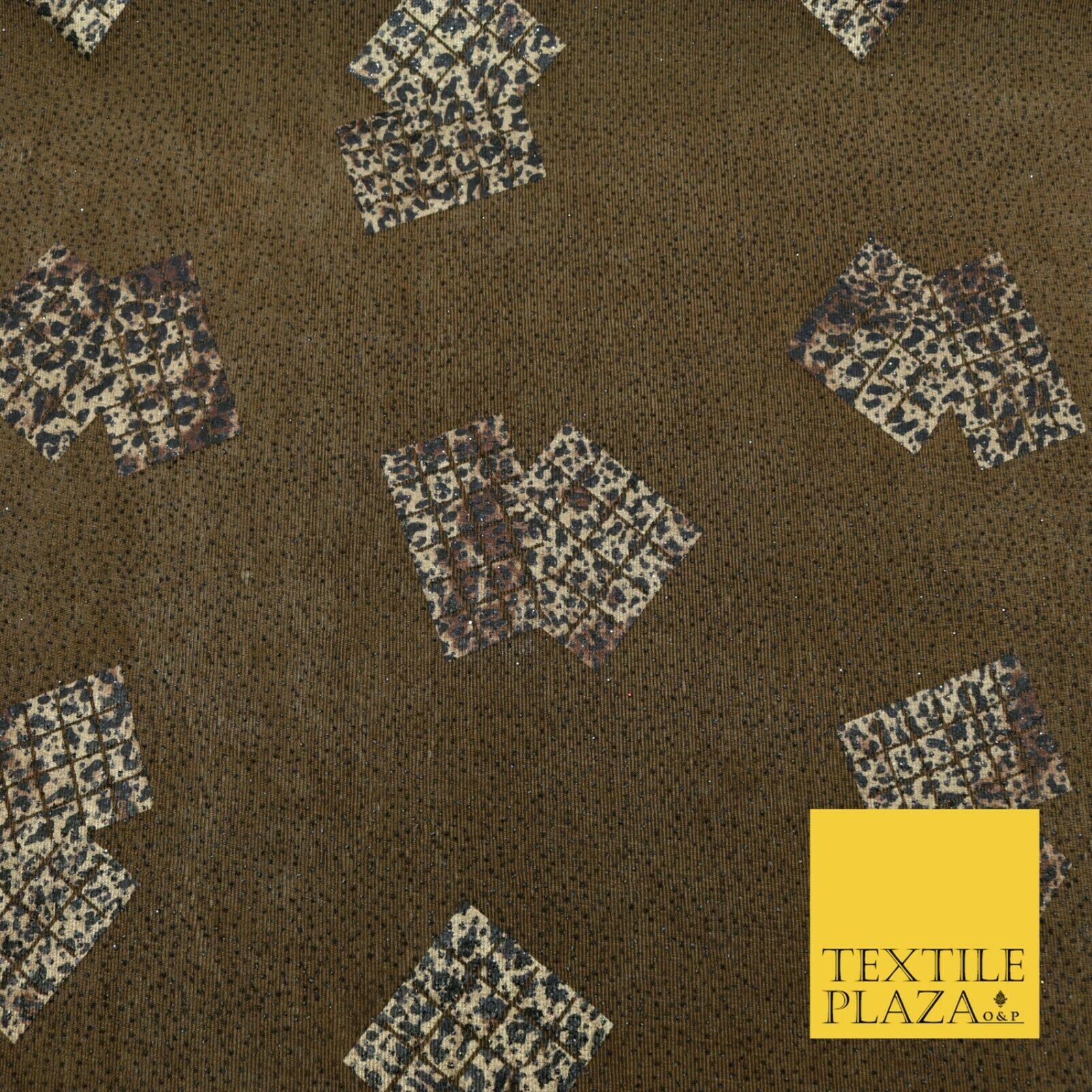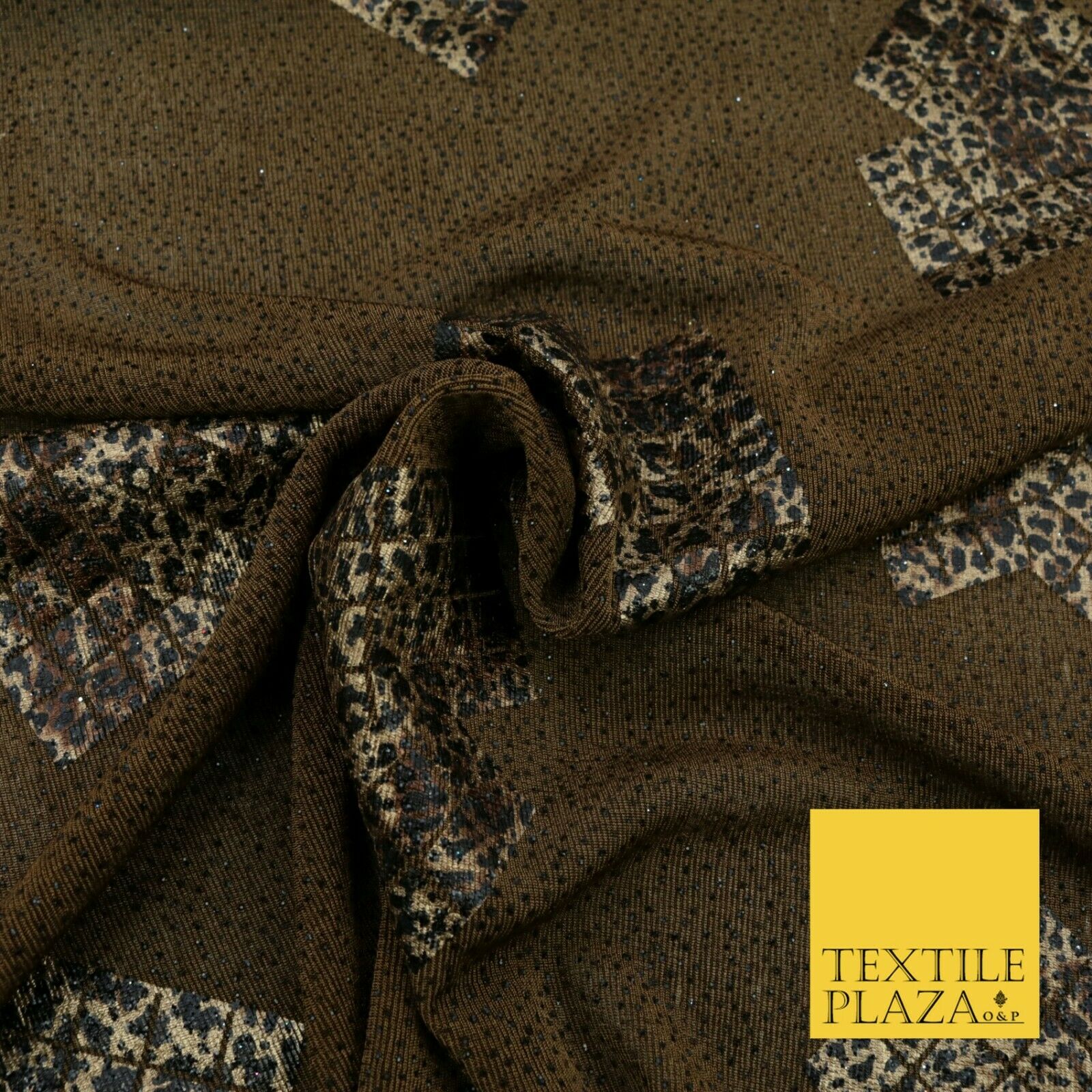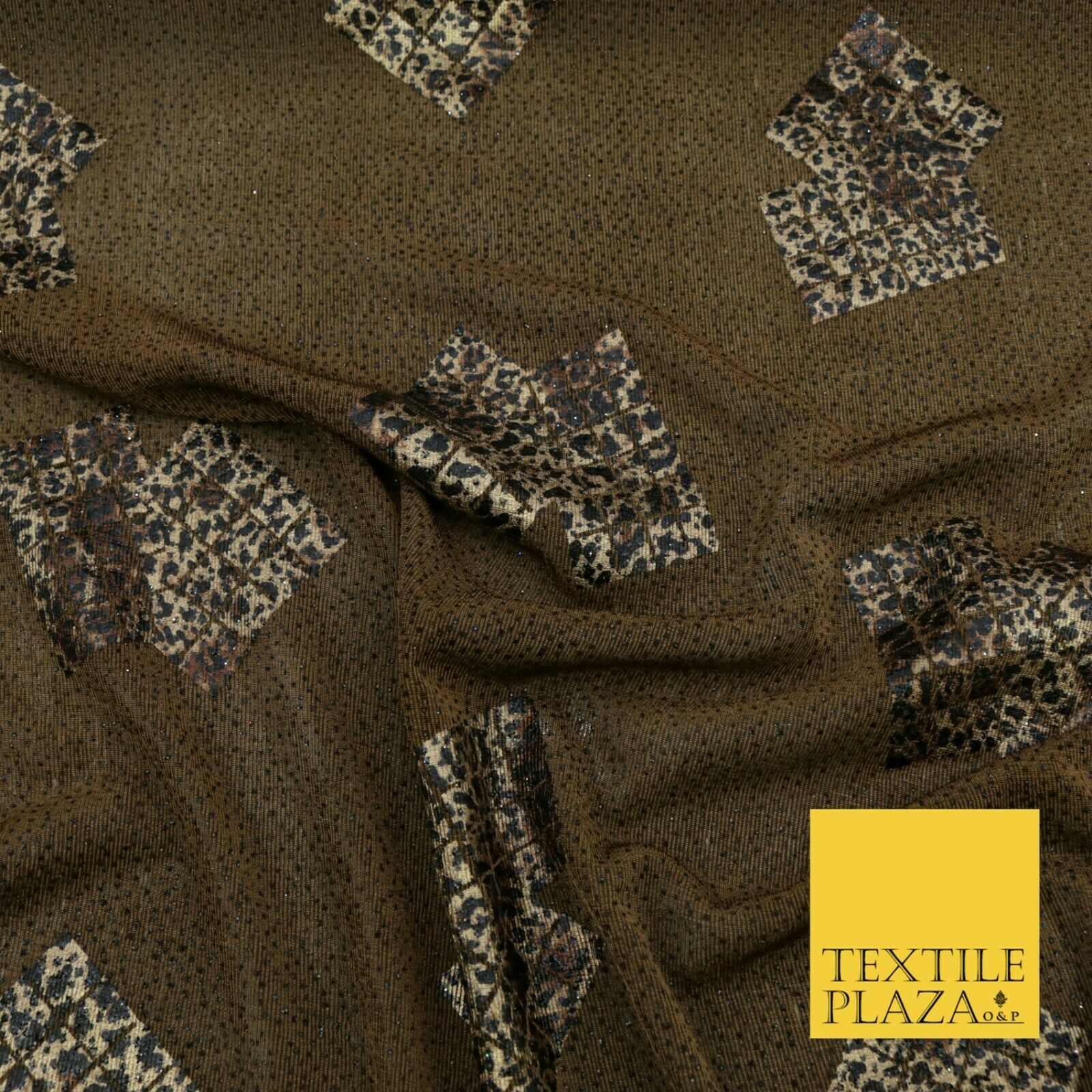 TAN BROWN Leopard Waffle Cube Metallic Glitter Stretch Jersey Fabric - 59" 1577