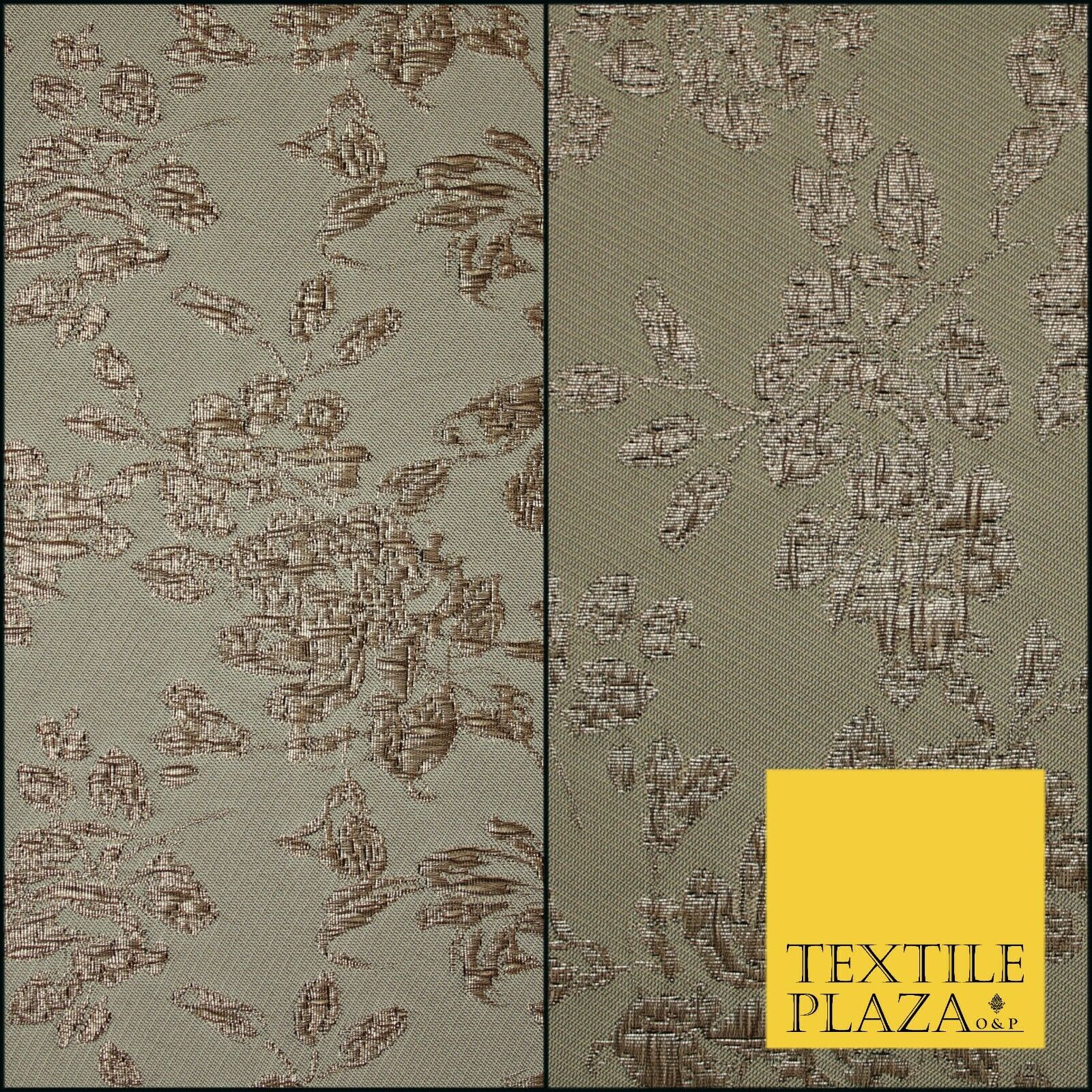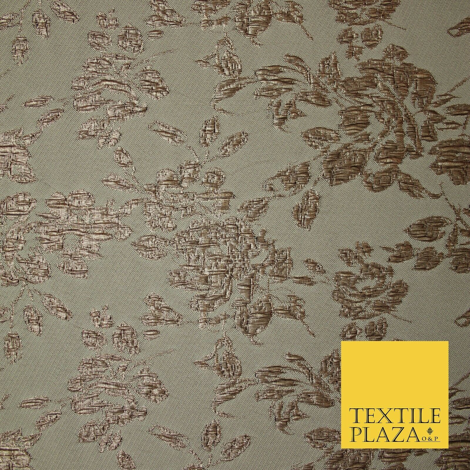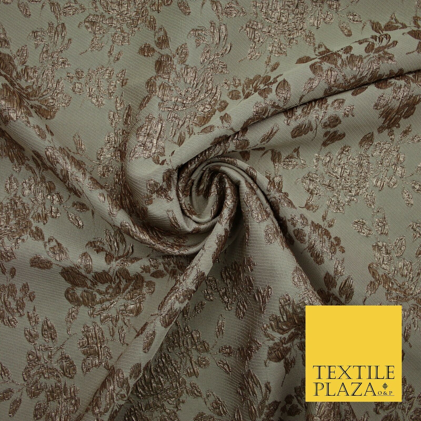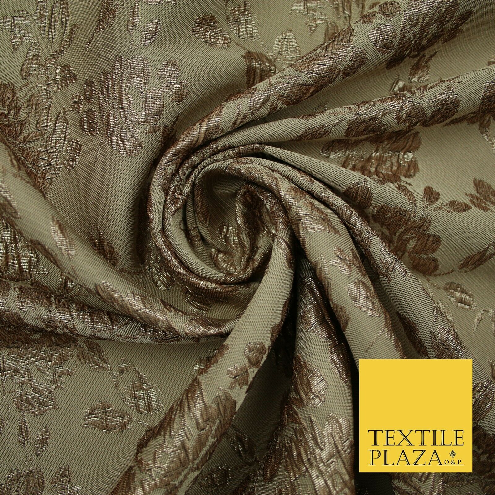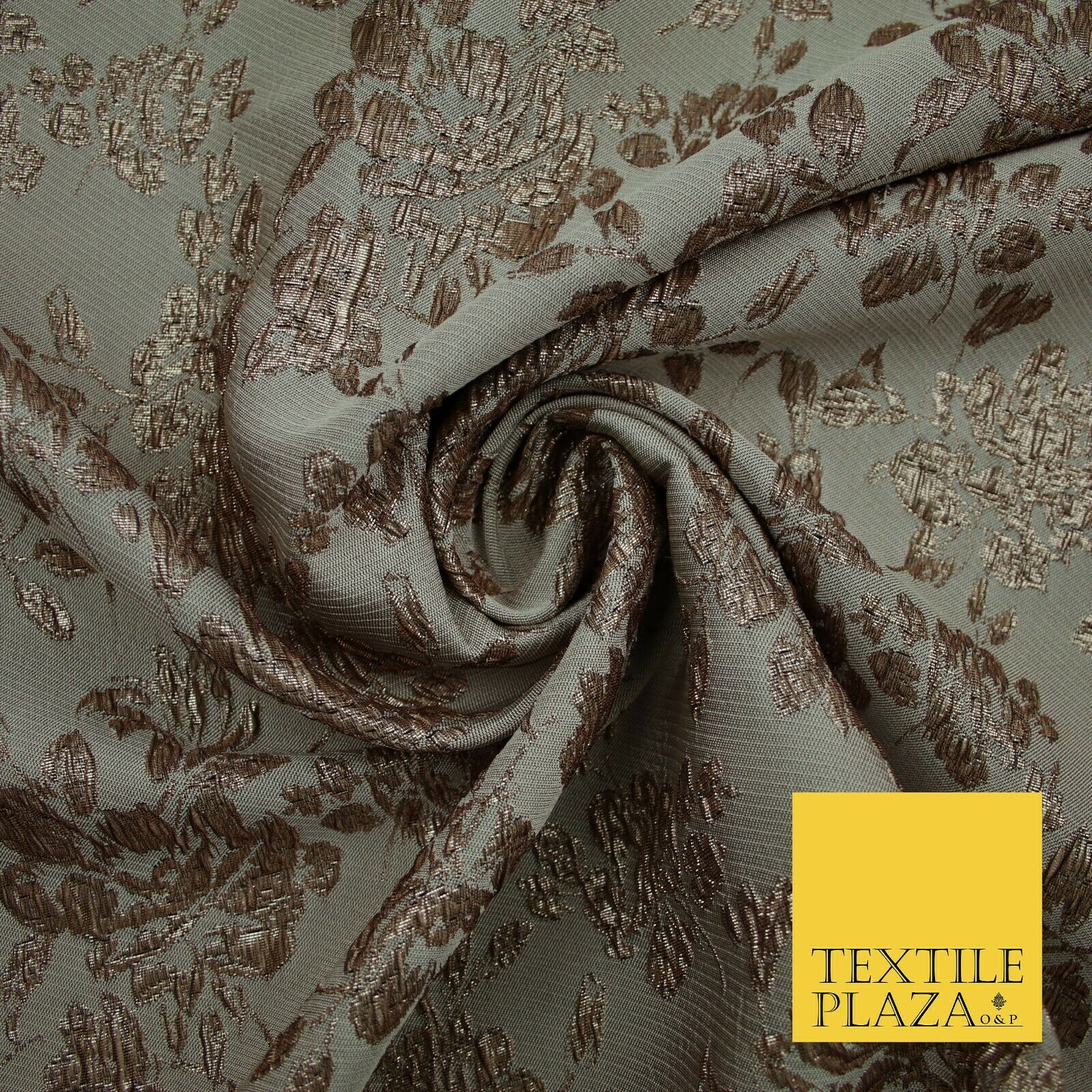 TAUPE BROWN Creased Metallic Rose Flowers Textured Brocade Jacquard Dress Fabric