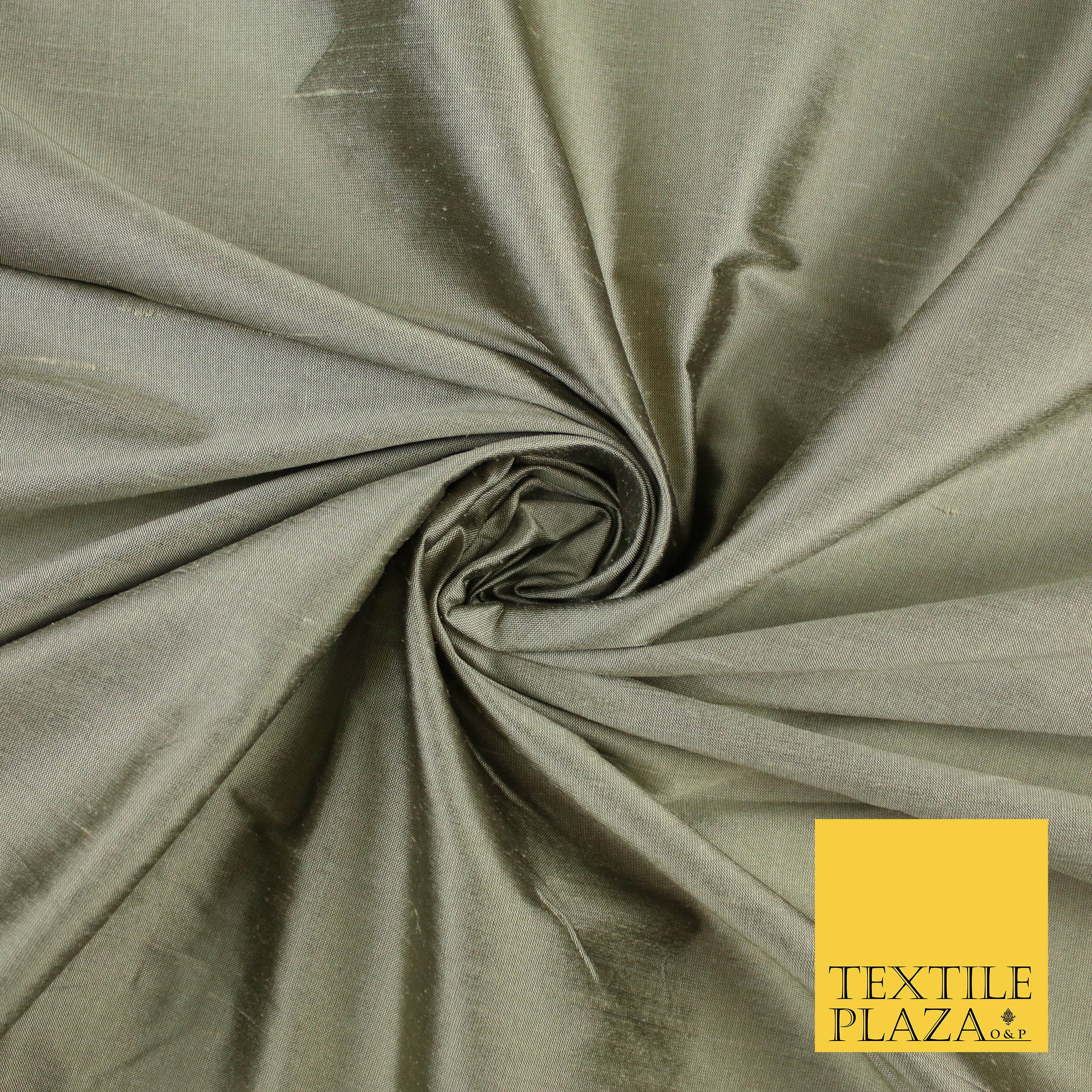 TAUPE GOLD SHOT BLACK Luxury 100% PURE Plain Dupion Raw Silk Handloom Dress Fabric 8461