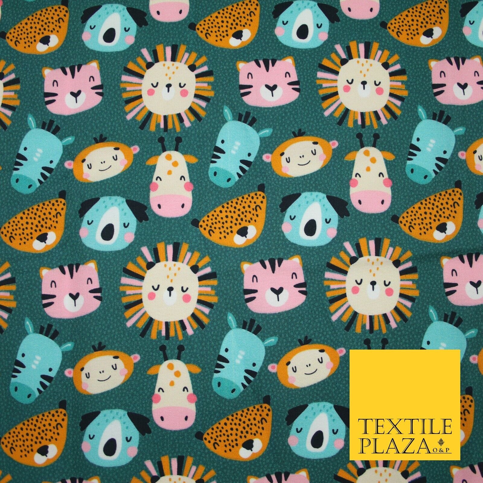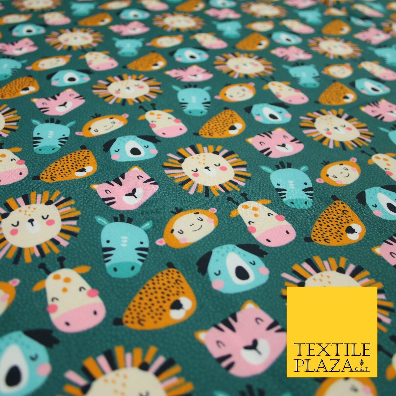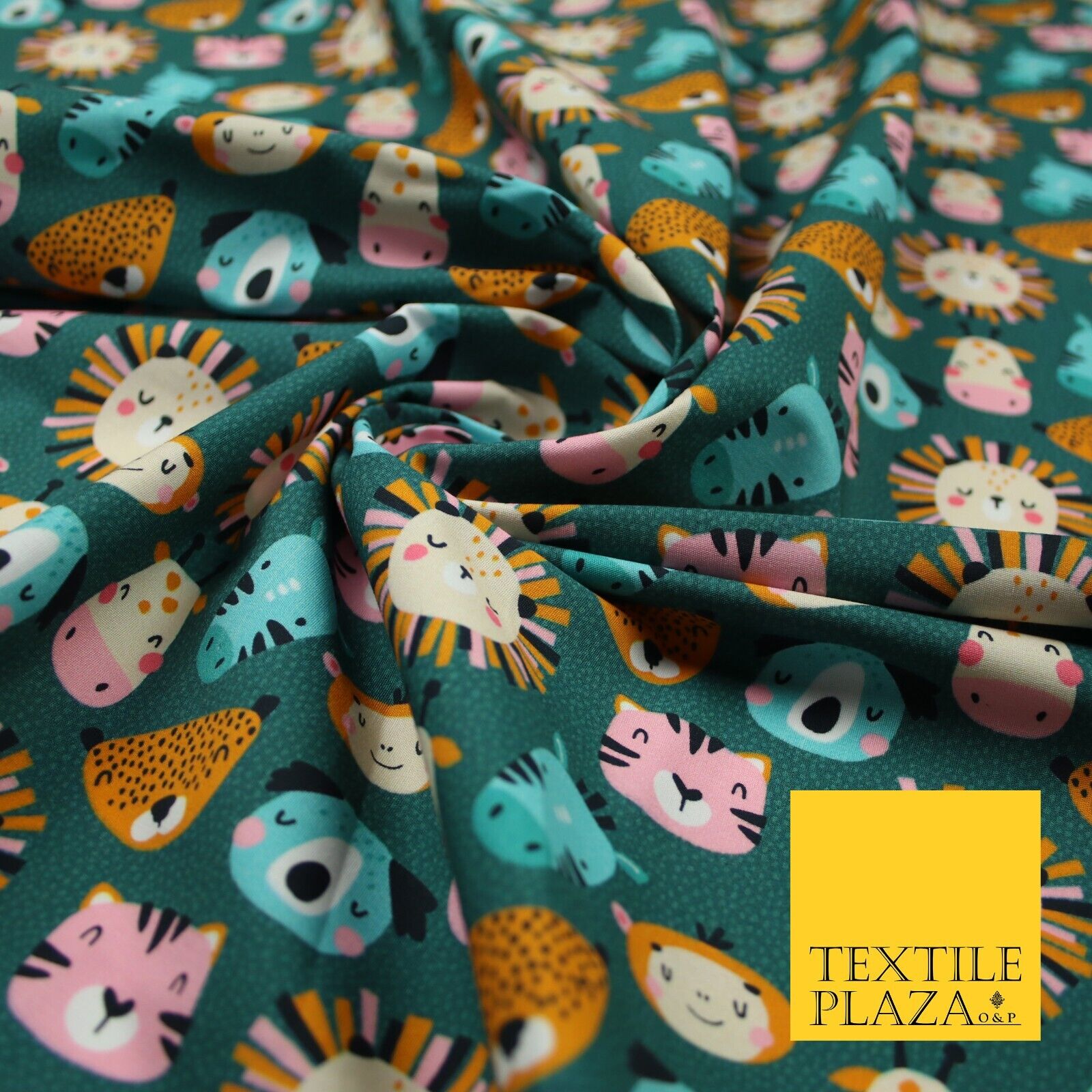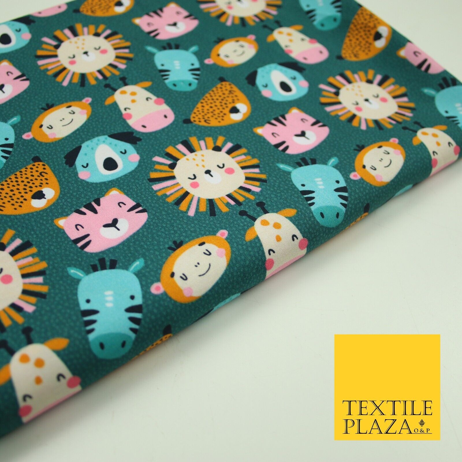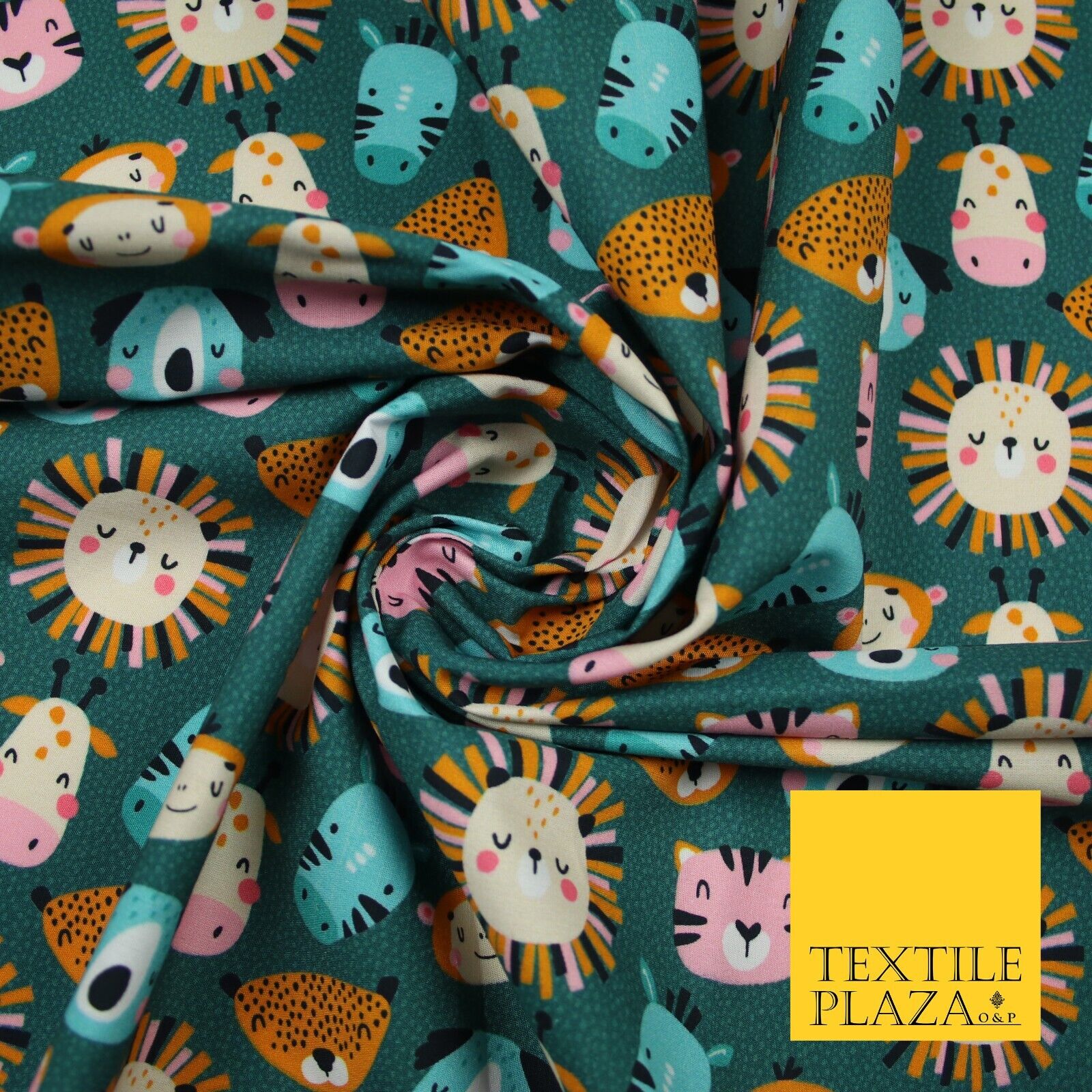 Teal Cartoon Sleepy Animals Lion Tiger Monkey Cats Koala 100% Cotton Fabric 7346