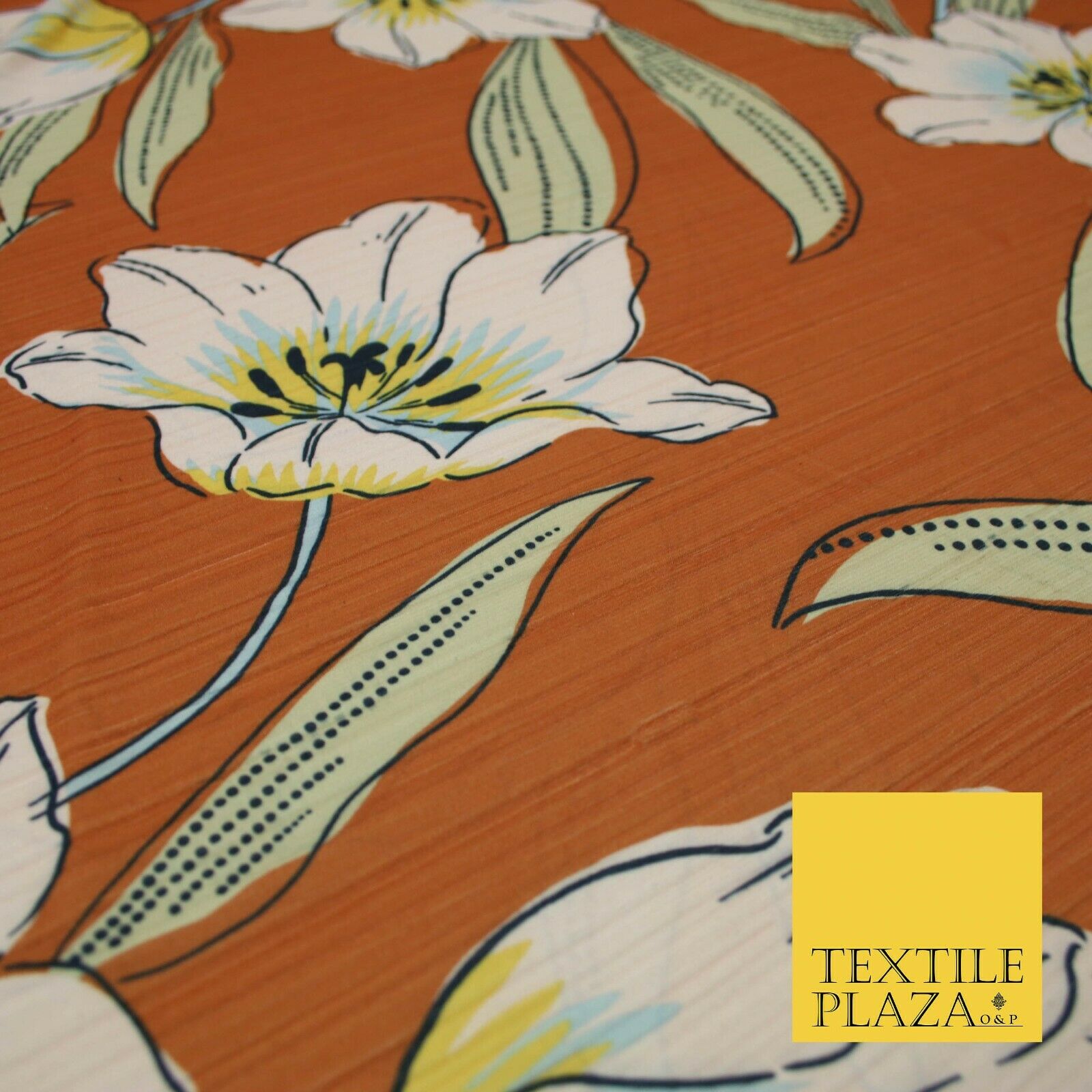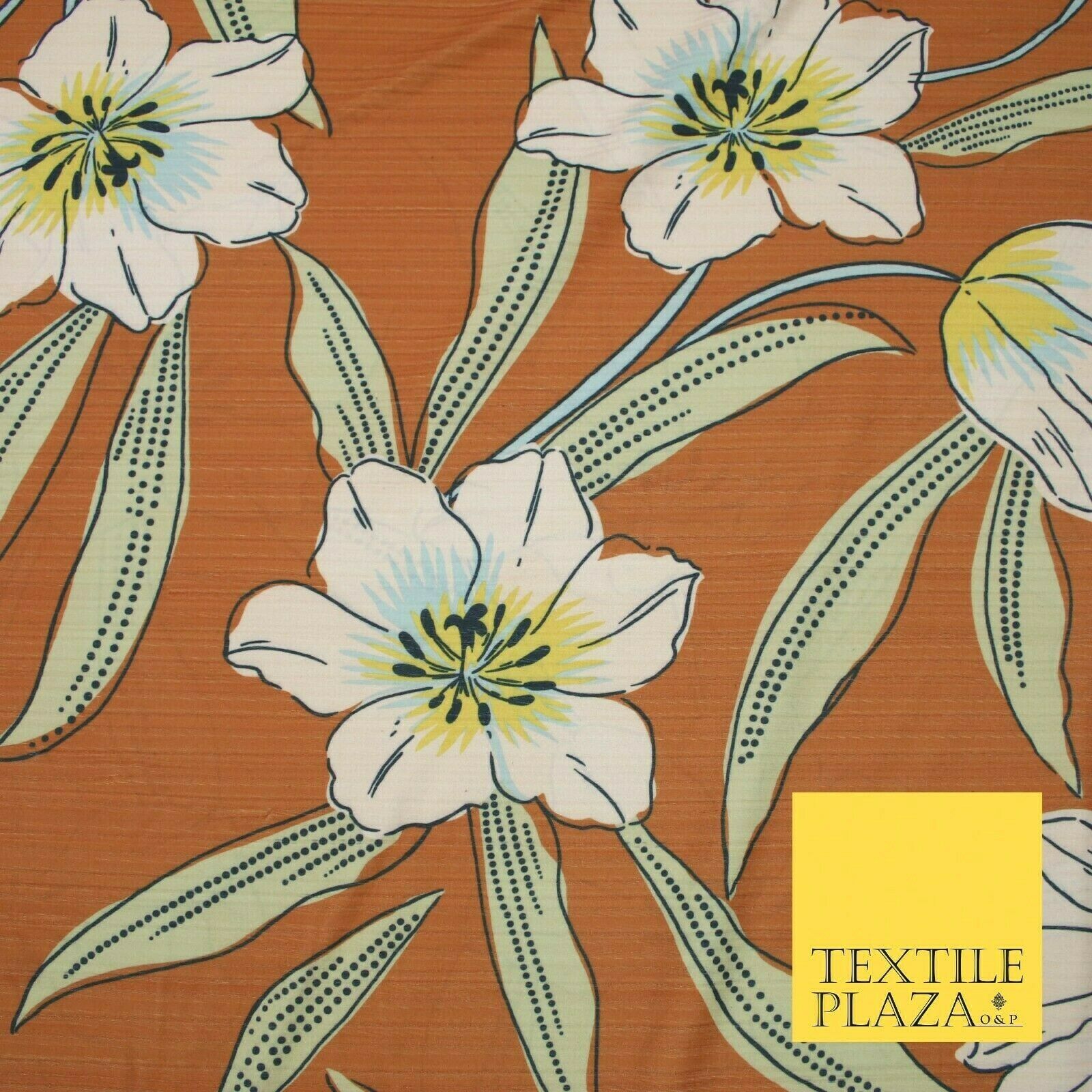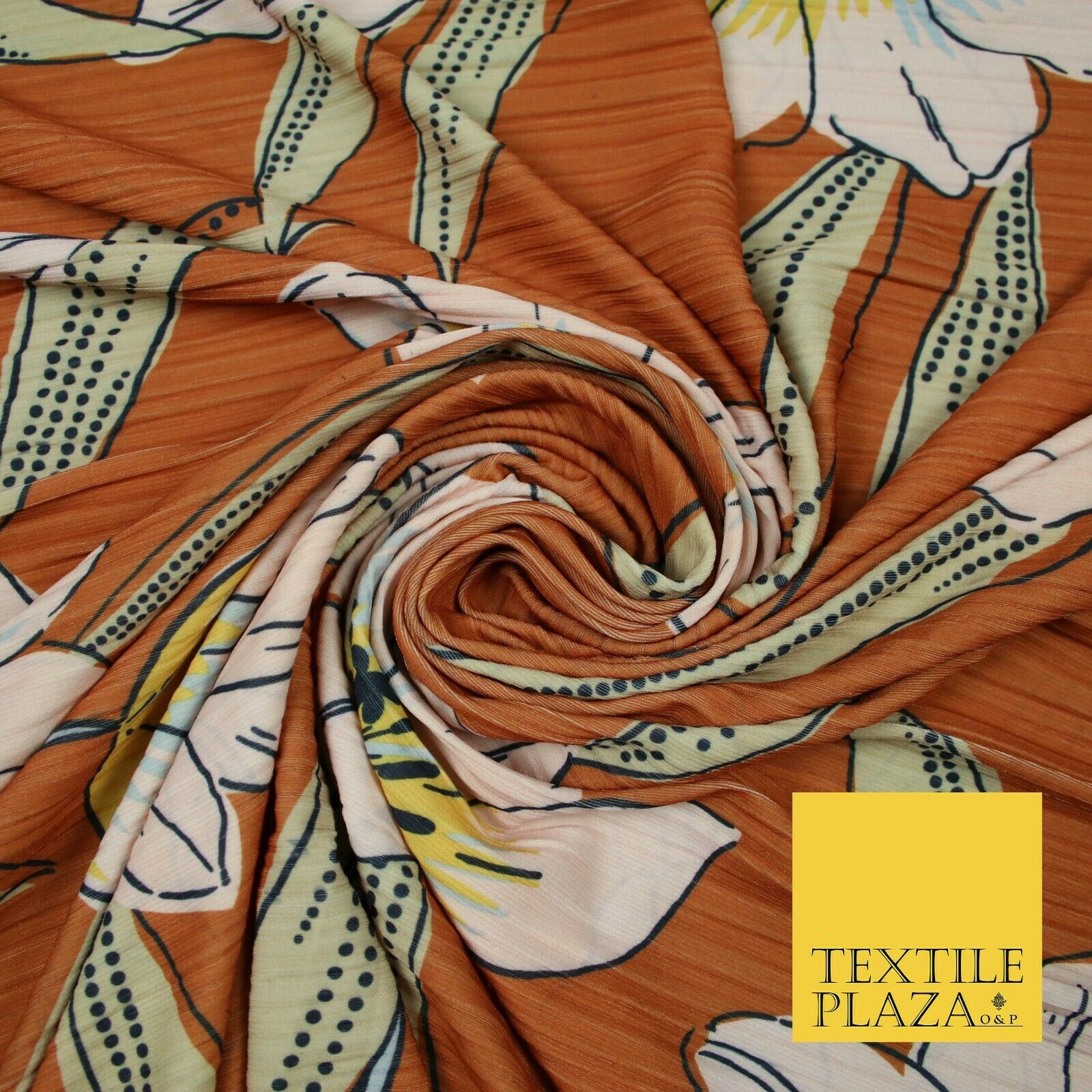 Terracotta Rust Oversized Large Floral Stretch Stripe Jersey Dress Fabric 5446