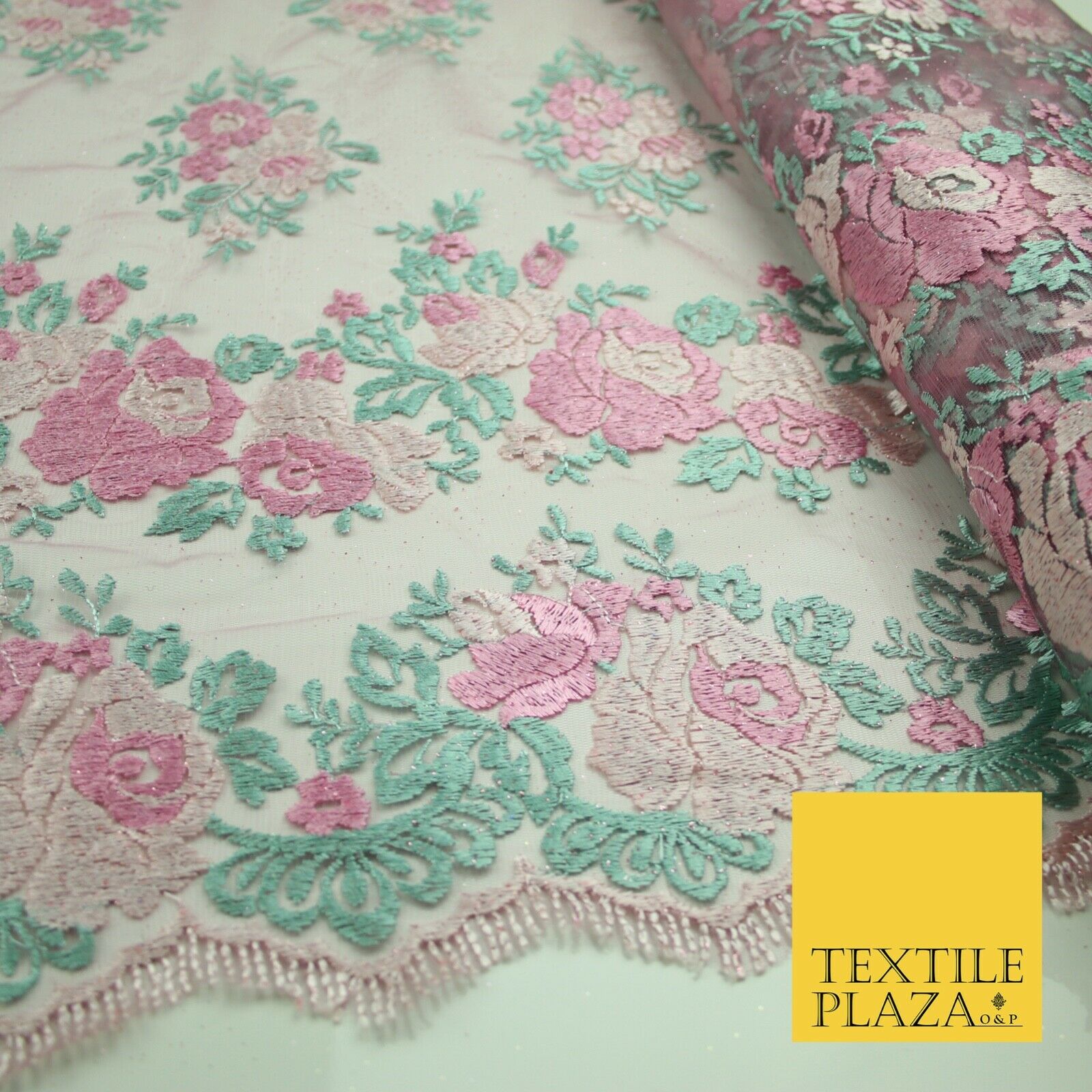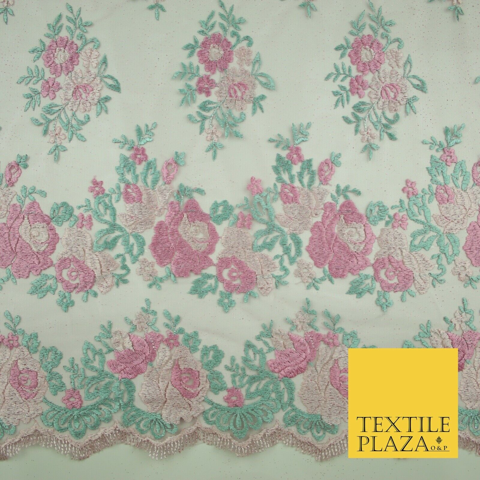 Thread Embroidery Border Glitter Net Lace Fashion Bridal Wedding Dress Fabric