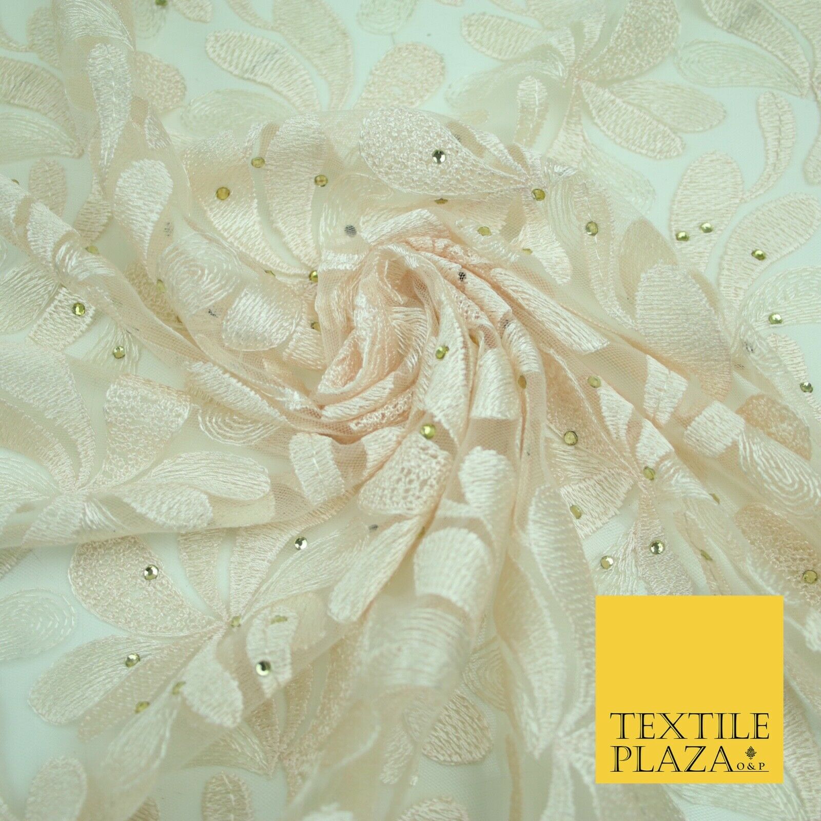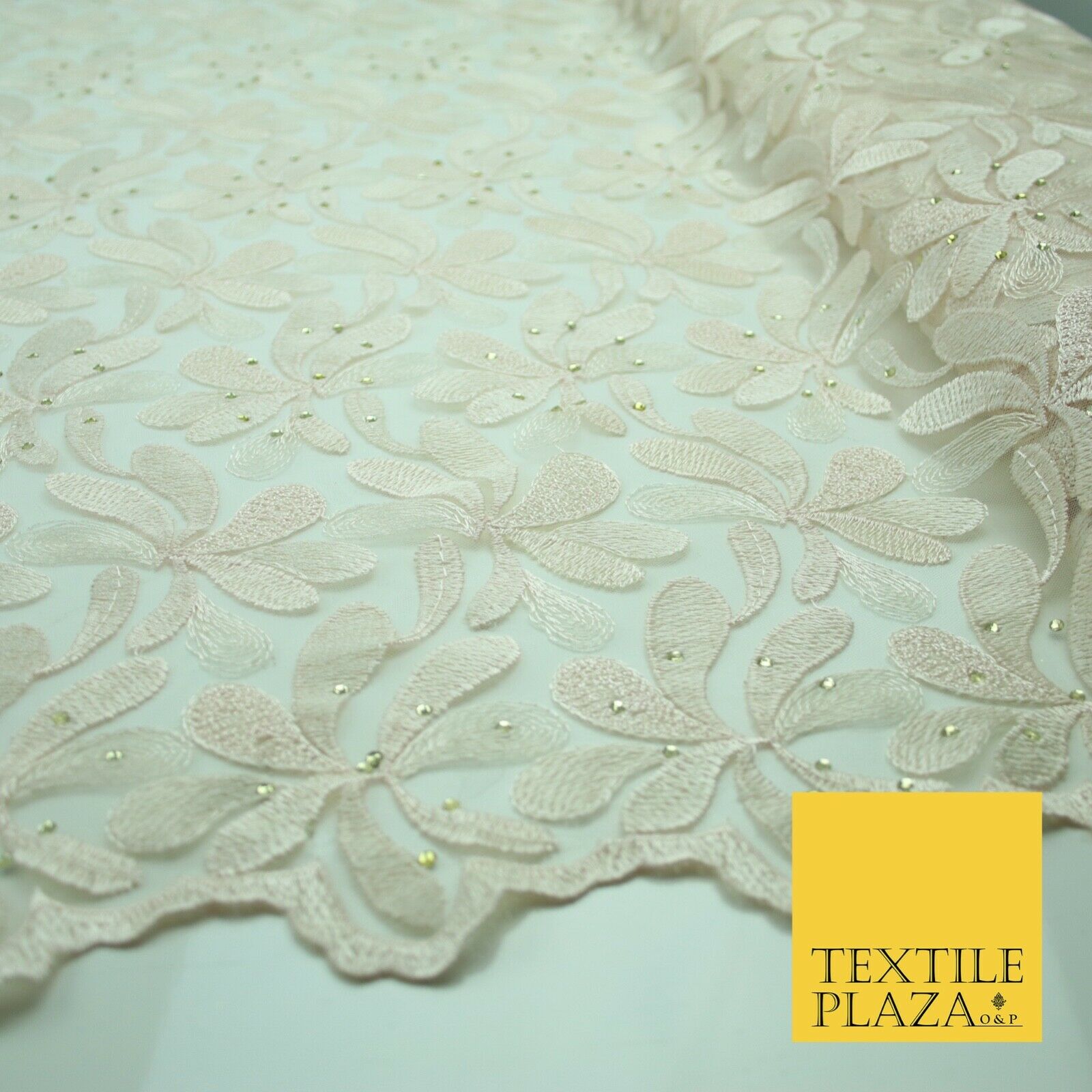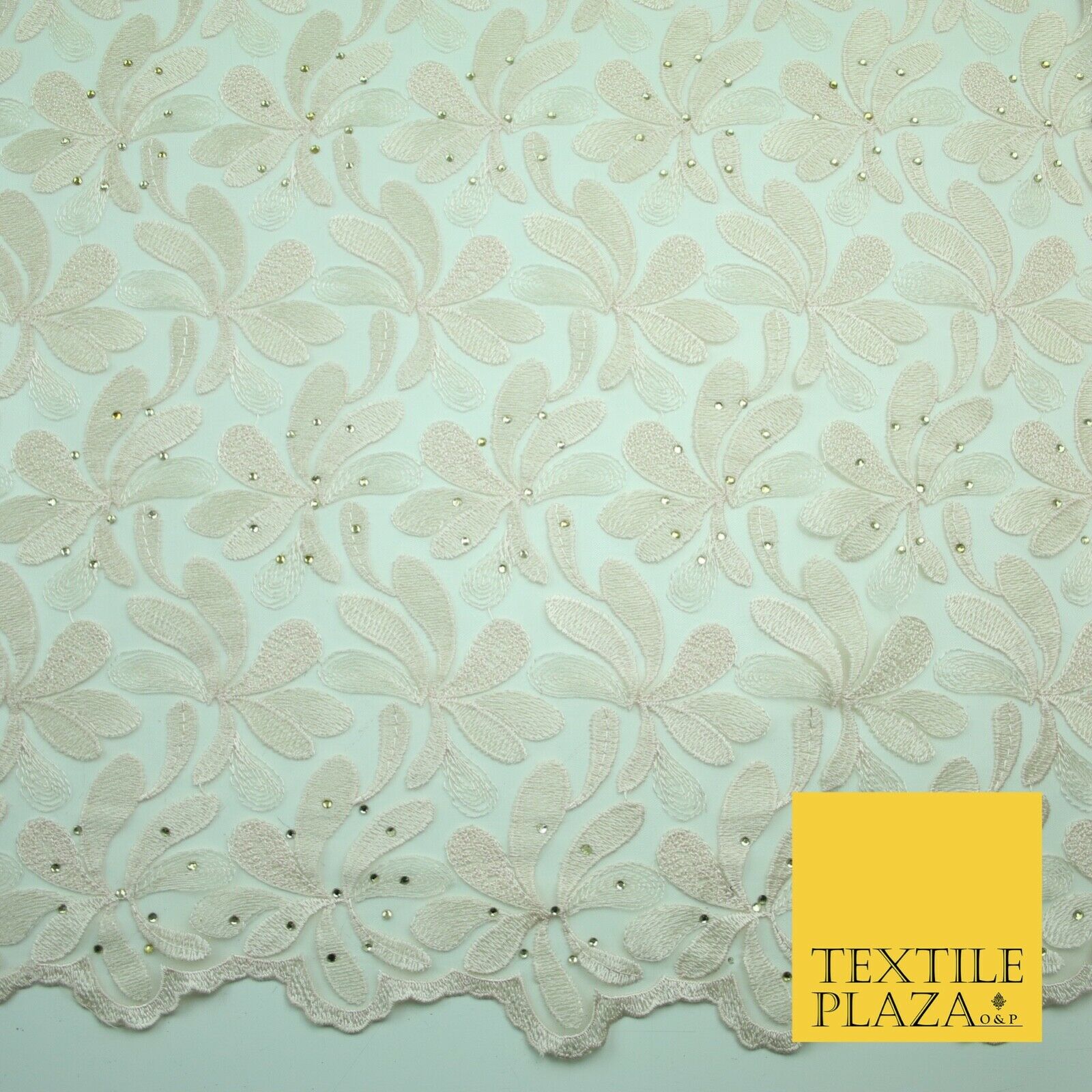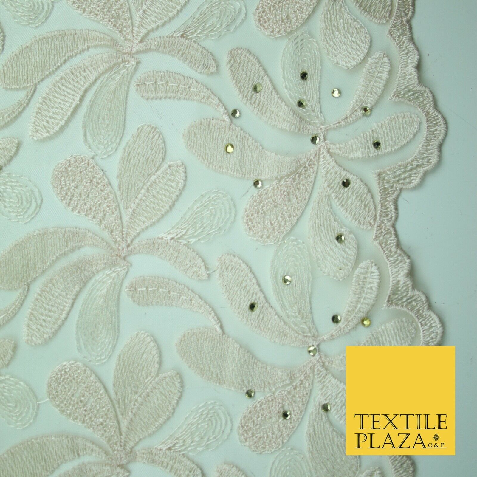 Threadwork Diamonte Embroidery Net Lace Bridal Bridesmaid Wedding Dress Fabric