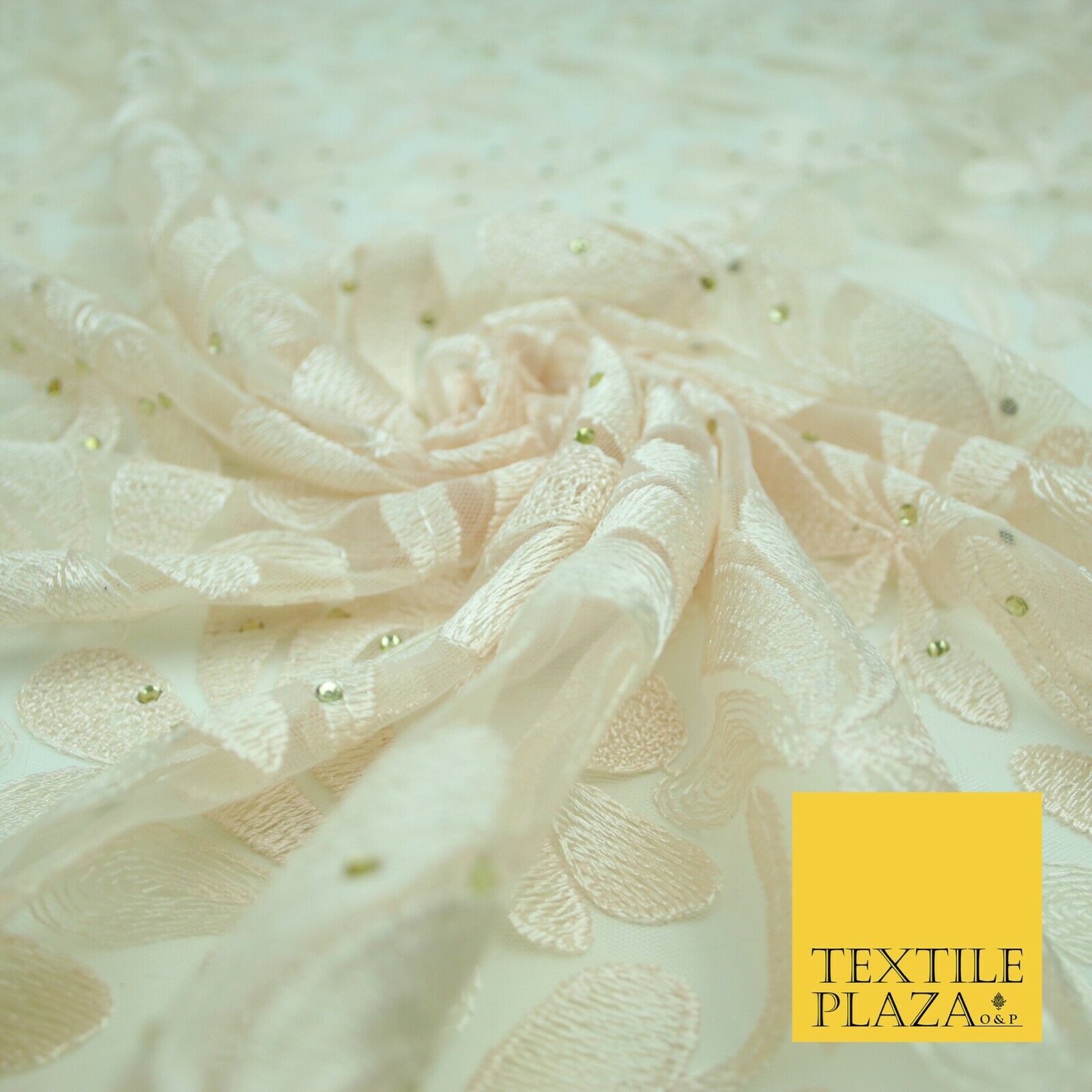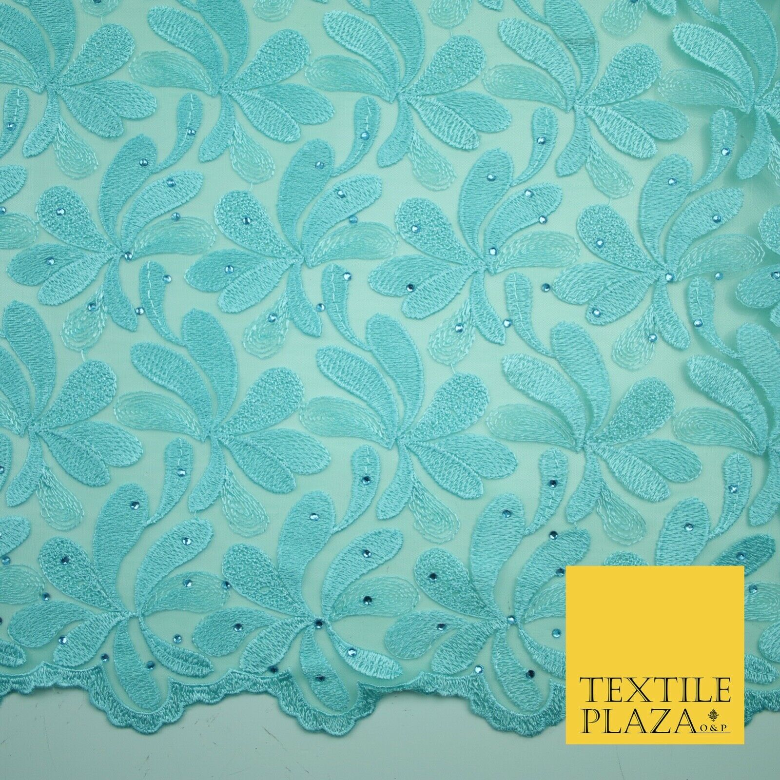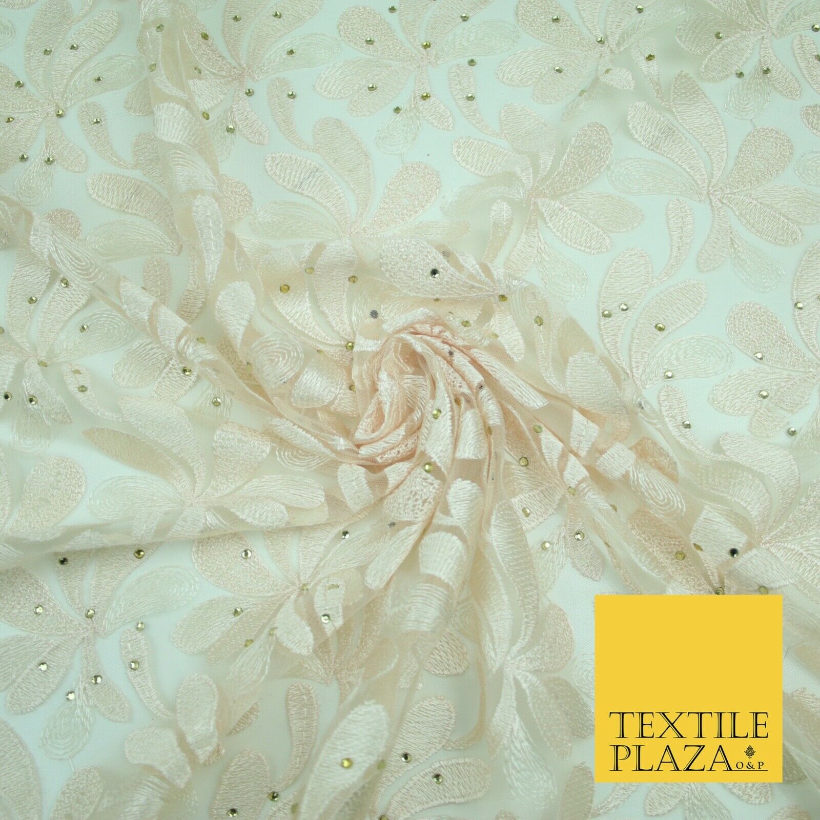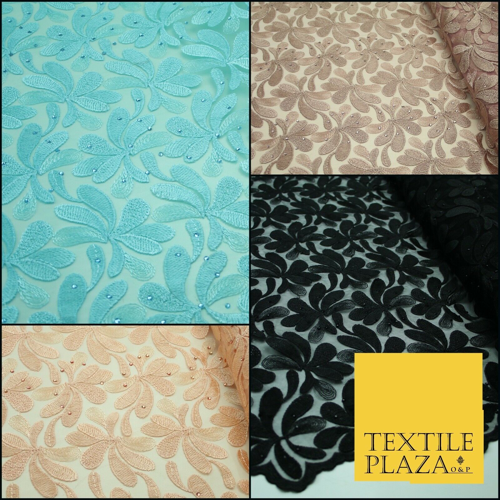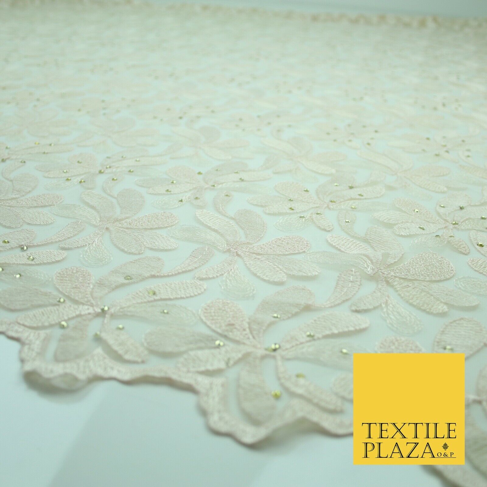 Threadwork Diamonte Embroidery Net Lace Bridal Bridesmaid Wedding Dress Fabric