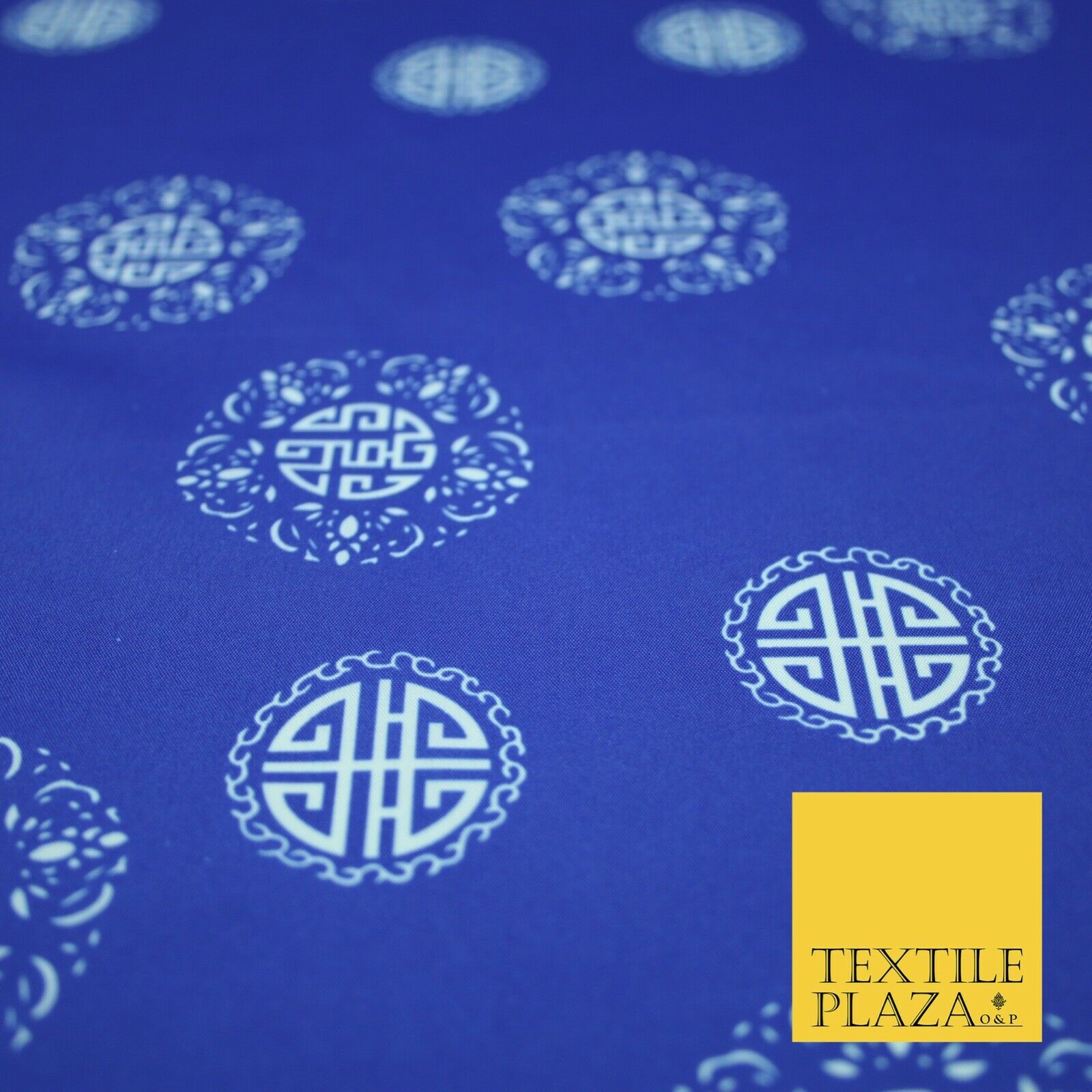 Traditional Kimono Oriental Chinese Emblem Printed Crepe Polyester Dress Fabric