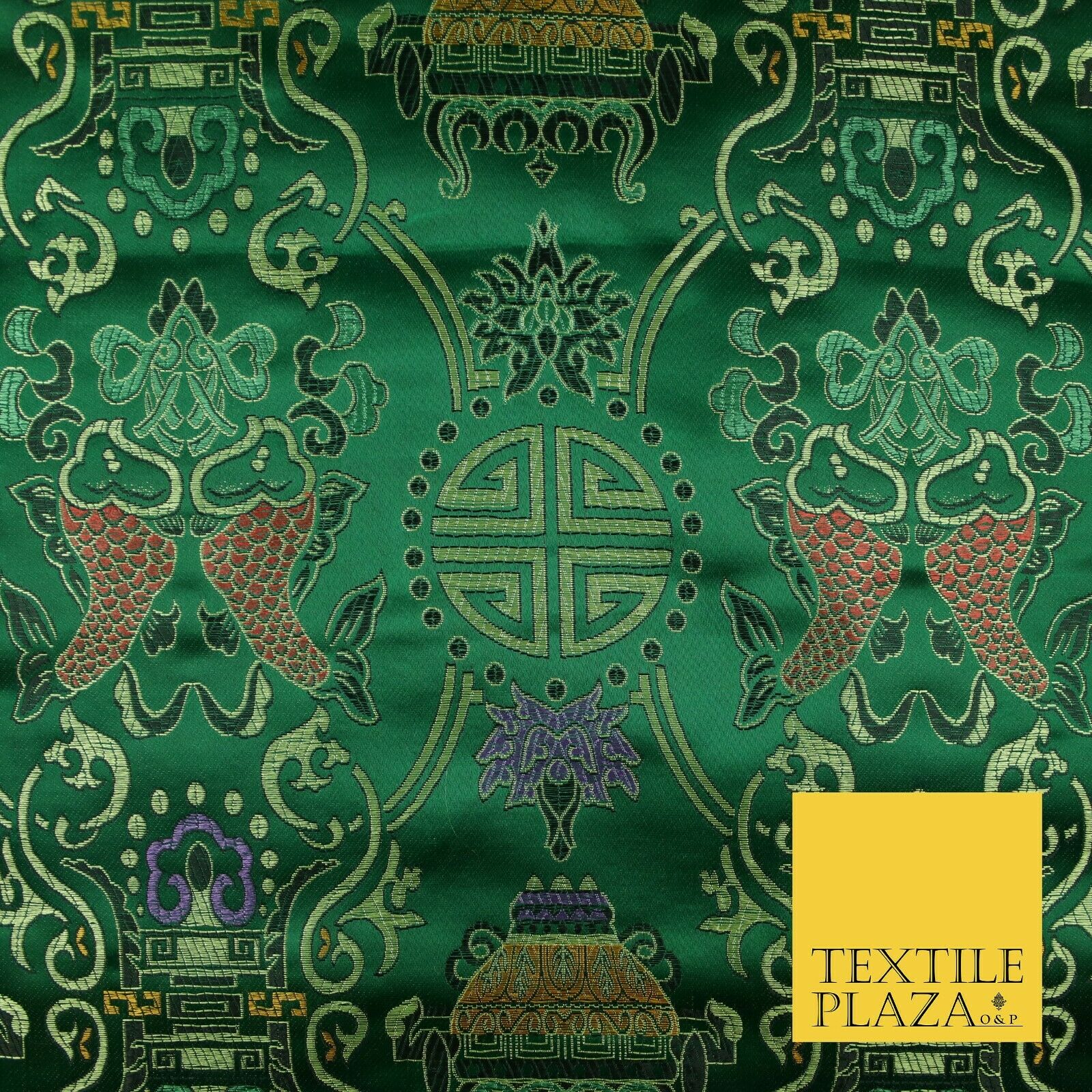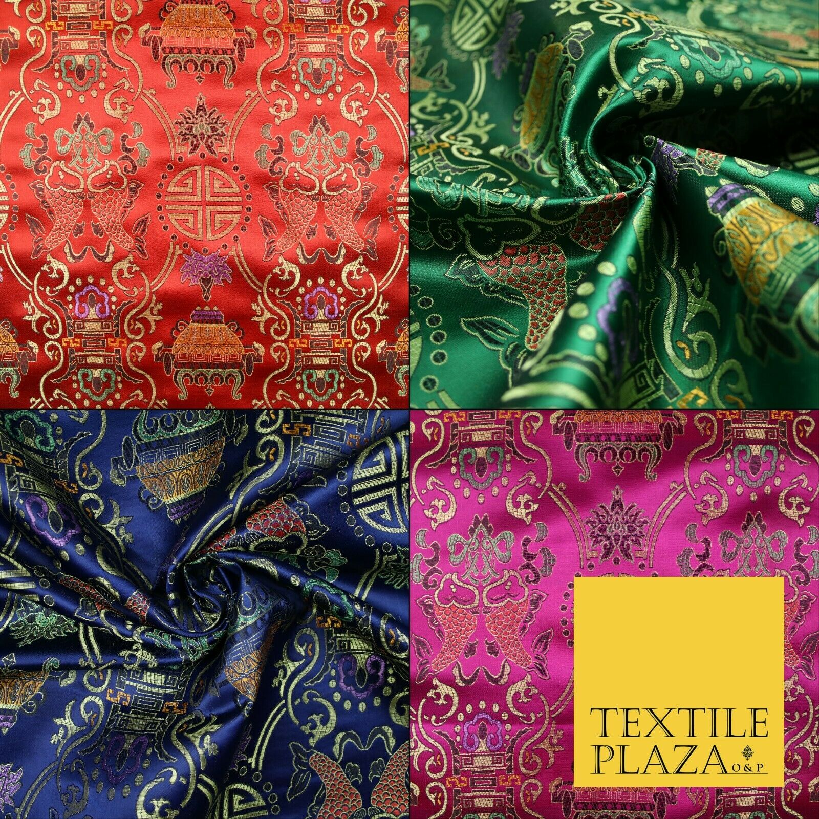 Traditional Oriental Shou Ornate Silky Satin Chinese Brocade Dress Fabric 36"