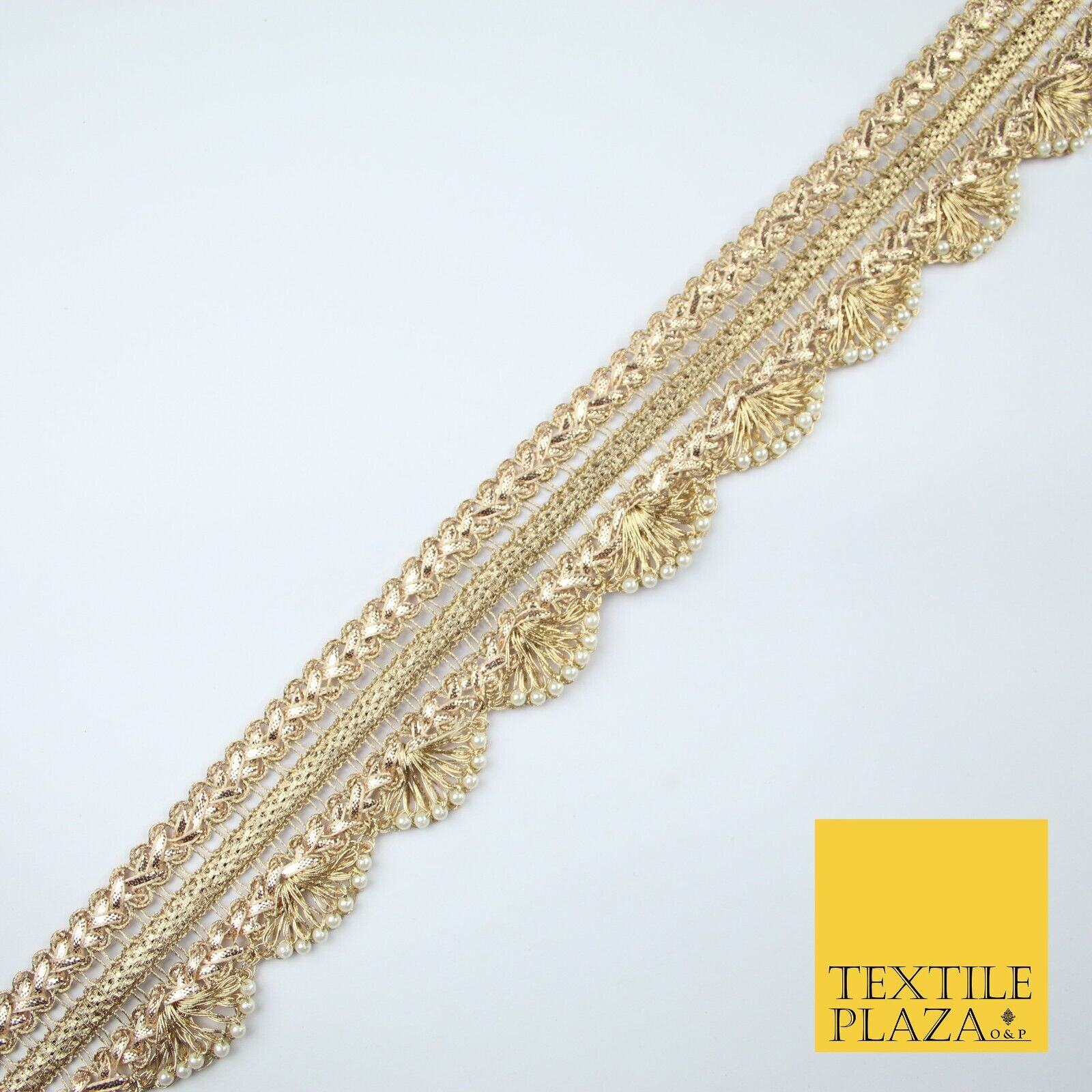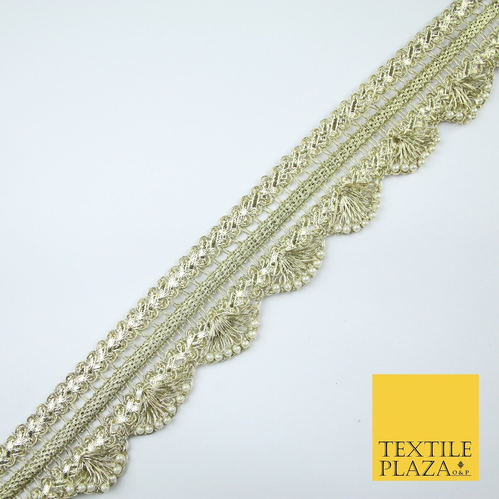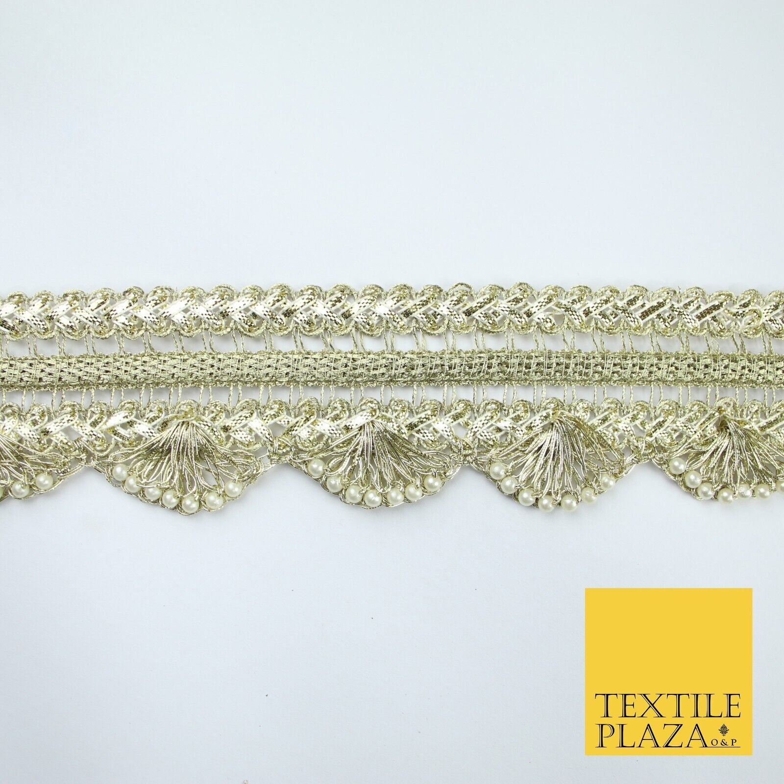 Triple Layer Swag Scalloped Plait Pearl Ribbon Trim Border Lace - 4.5cm Wide