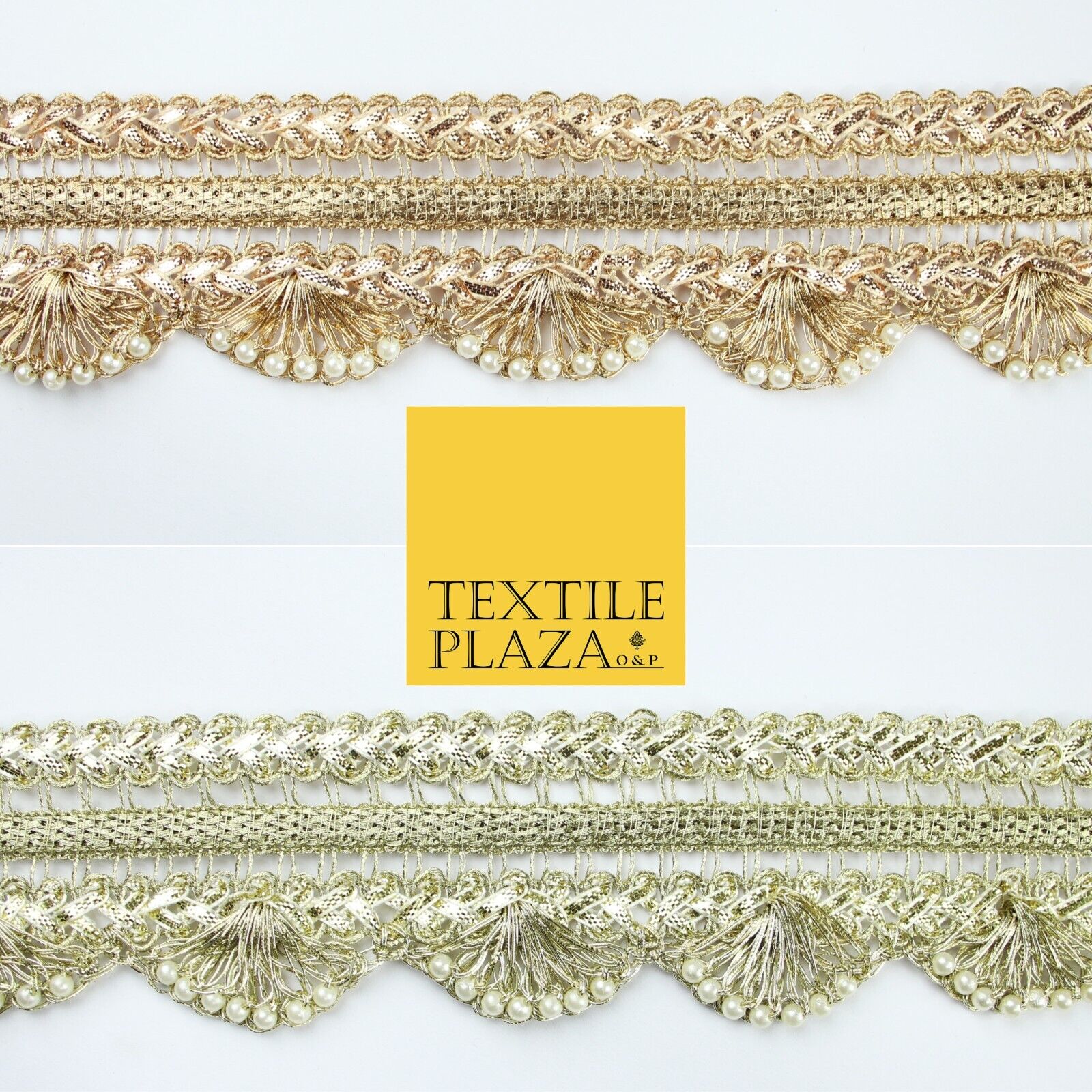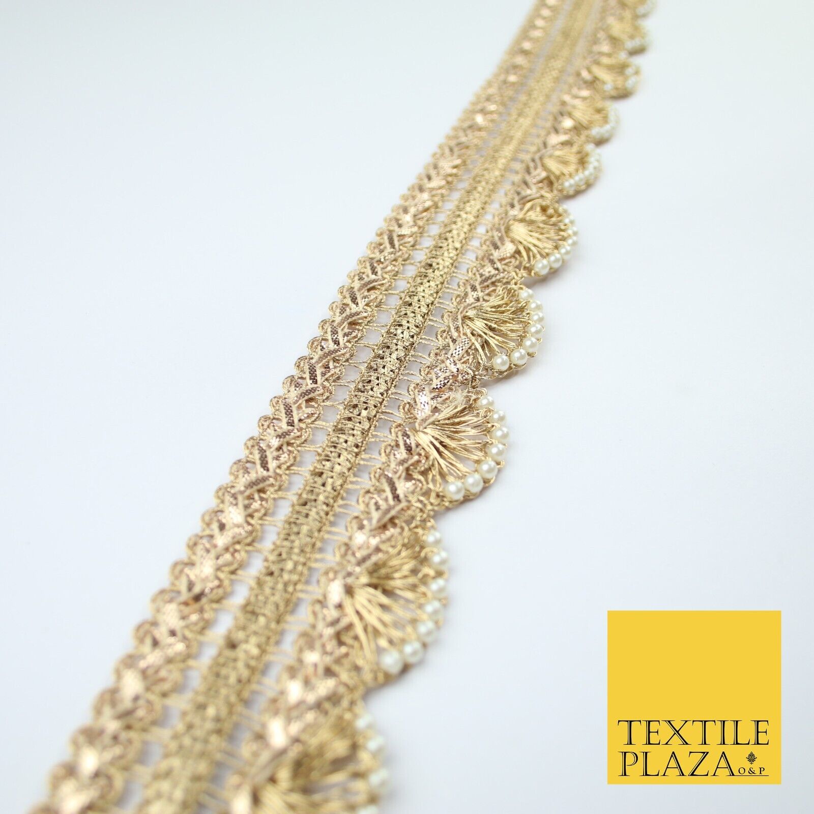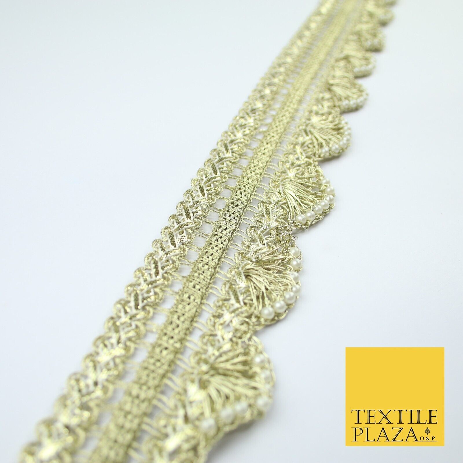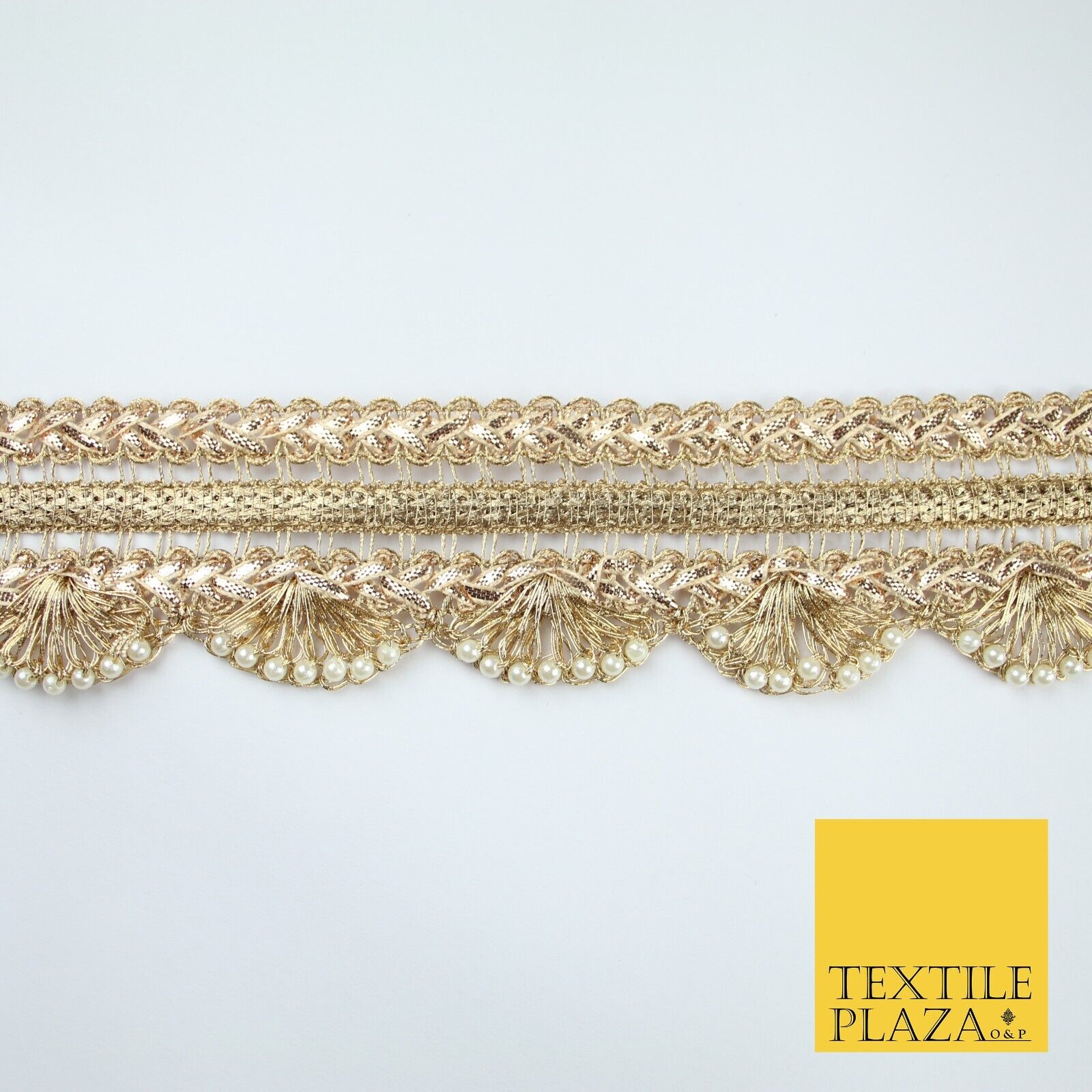 Triple Layer Swag Scalloped Plait Pearl Ribbon Trim Border Lace - 4.5cm Wide