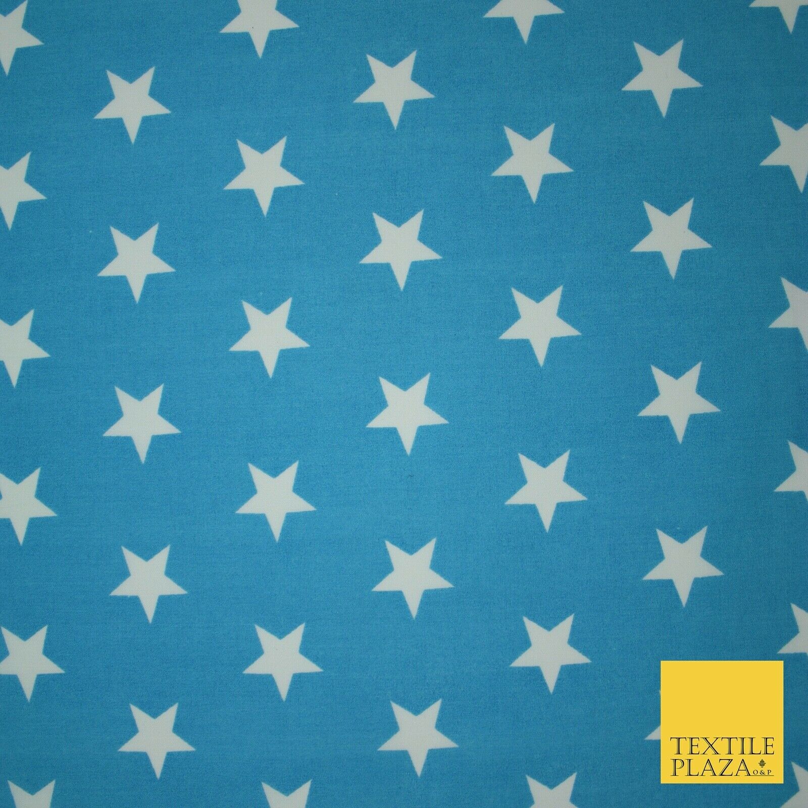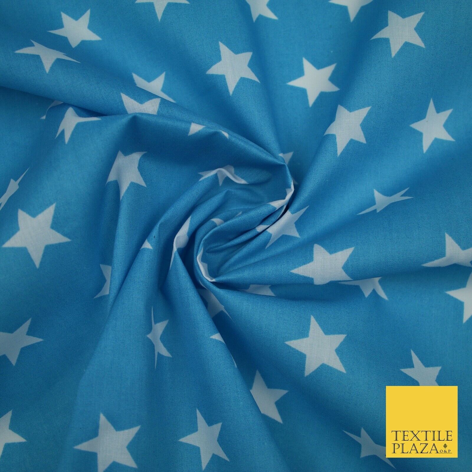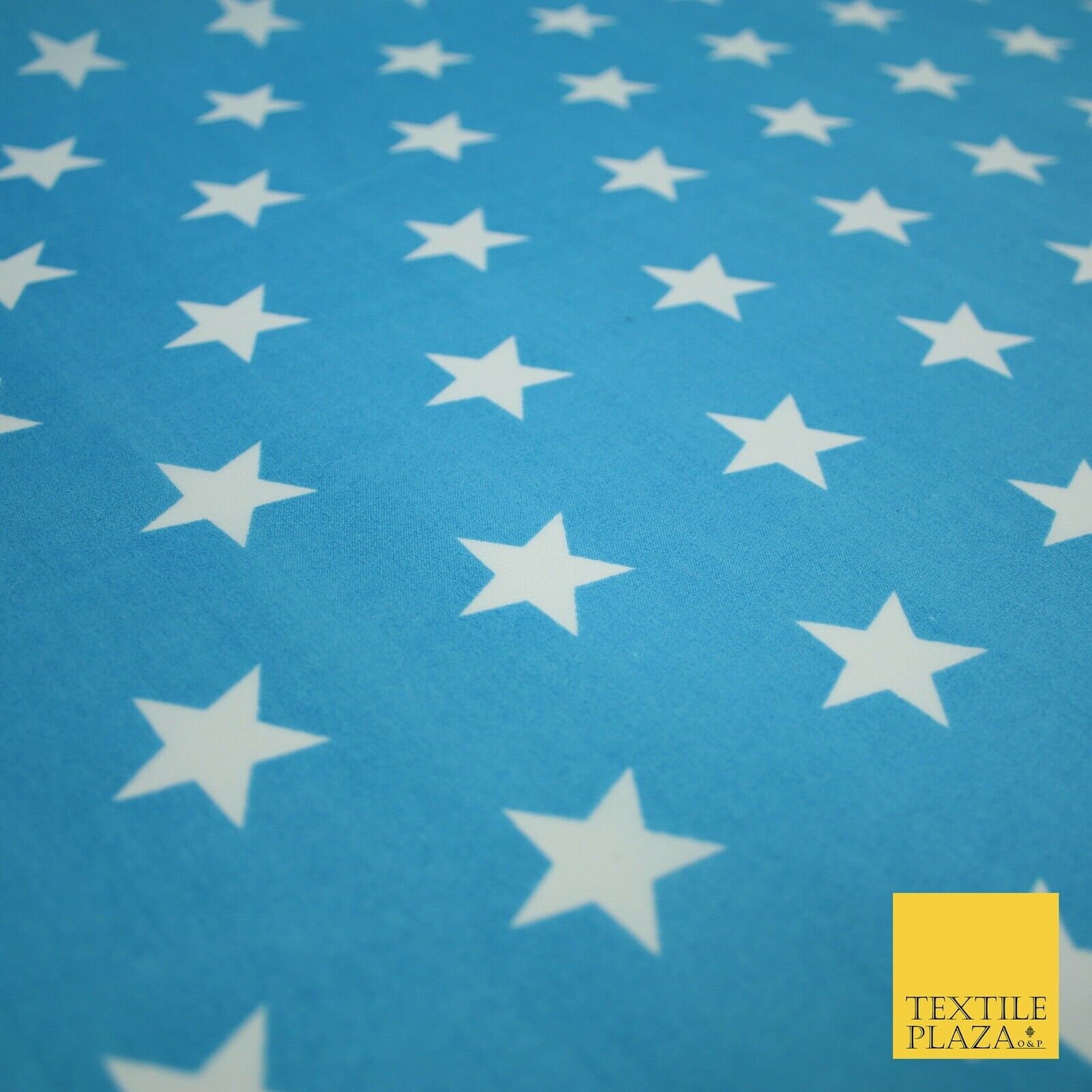 Turquoise Blue and White Star Printed Poly Cotton Fabric Polycotton Mask 45"3761
