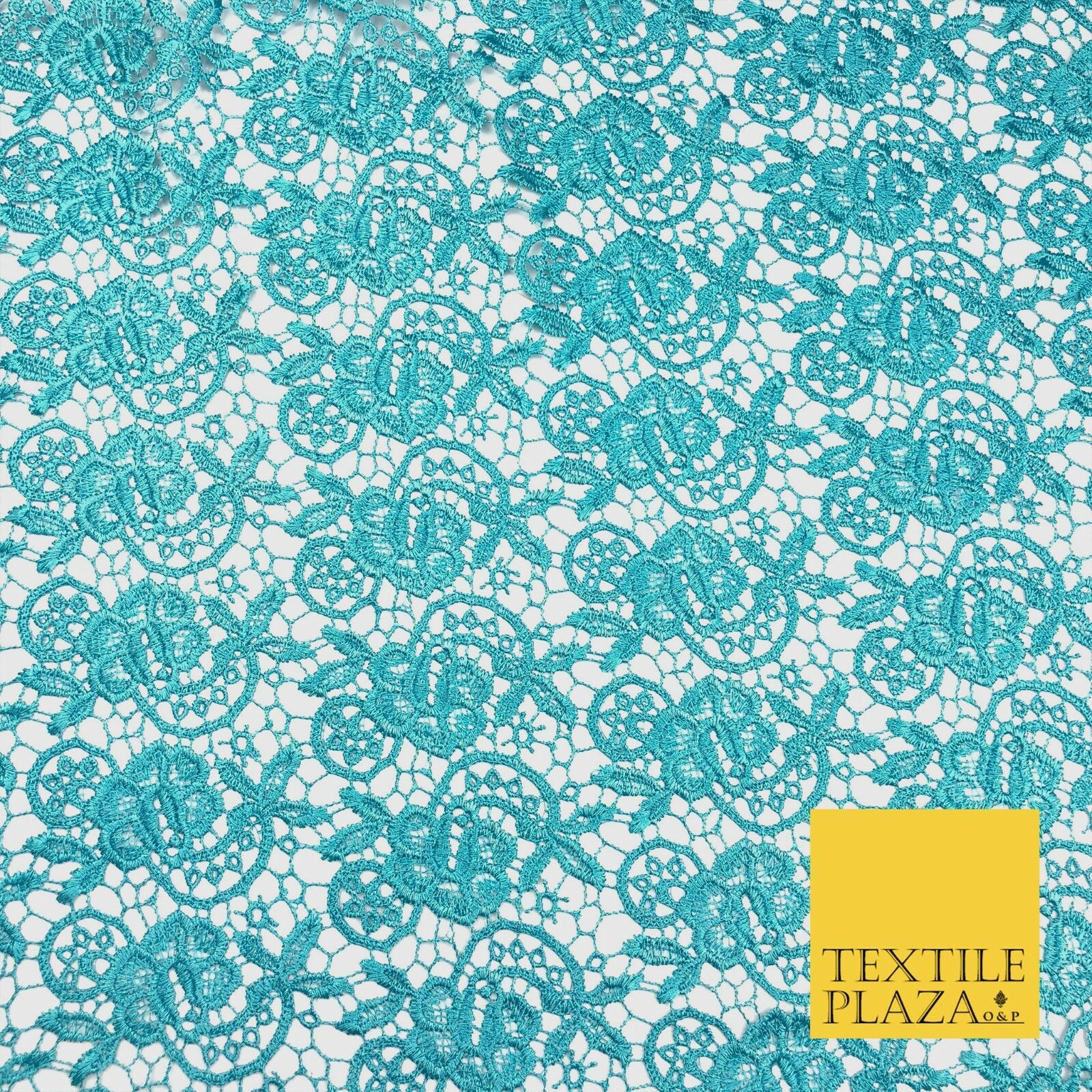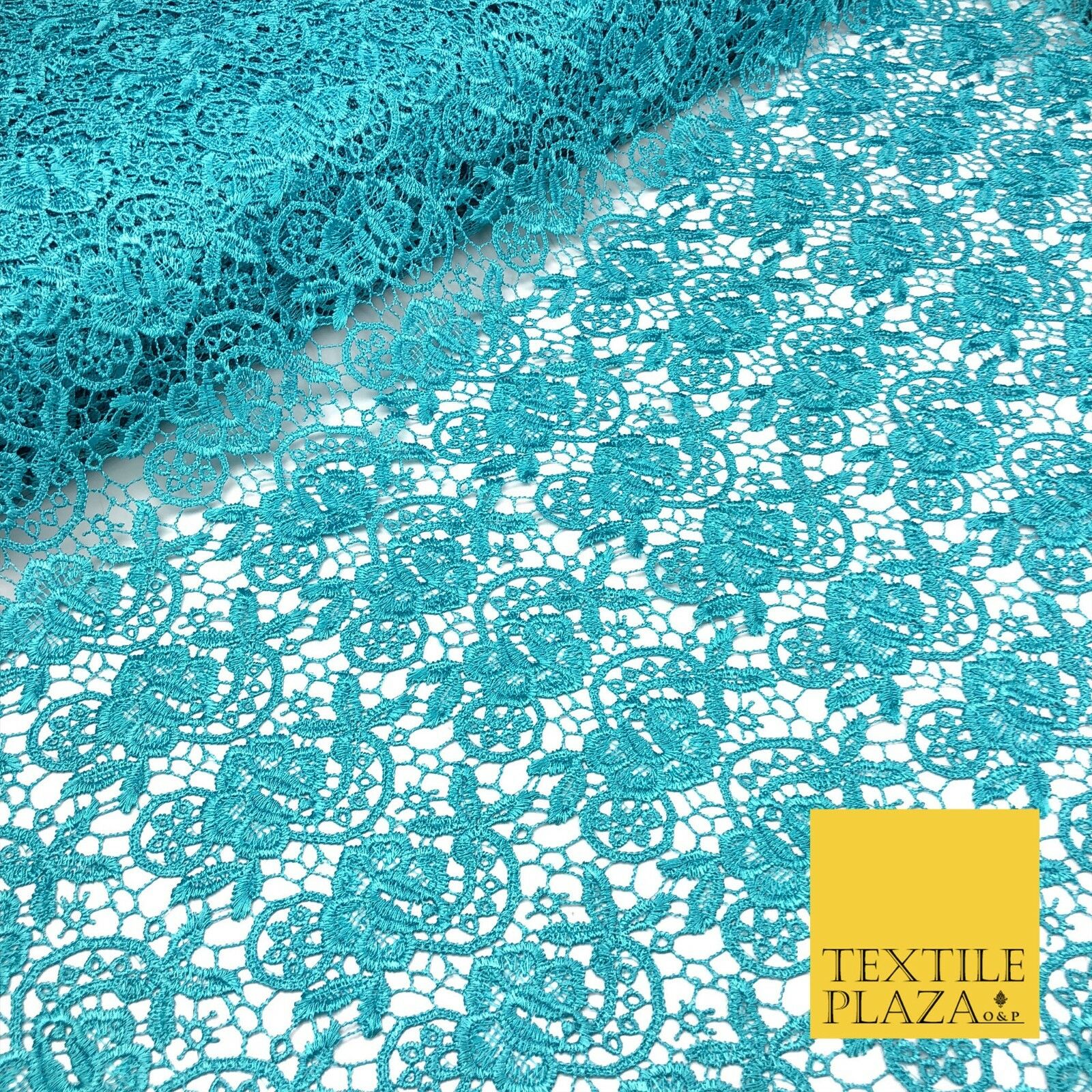 TURQUOISE BLUE Premium Guipure Intricate Lace Dress Fabric Wedding Bridal 856