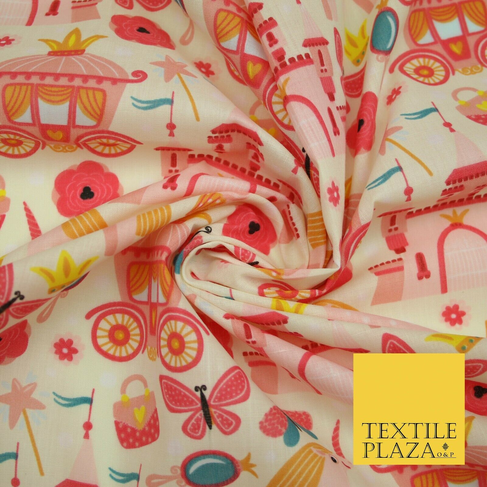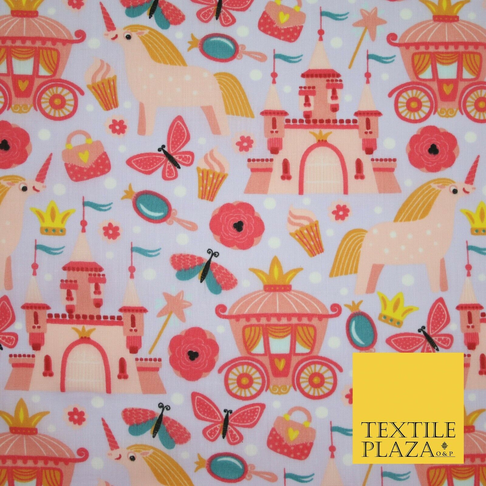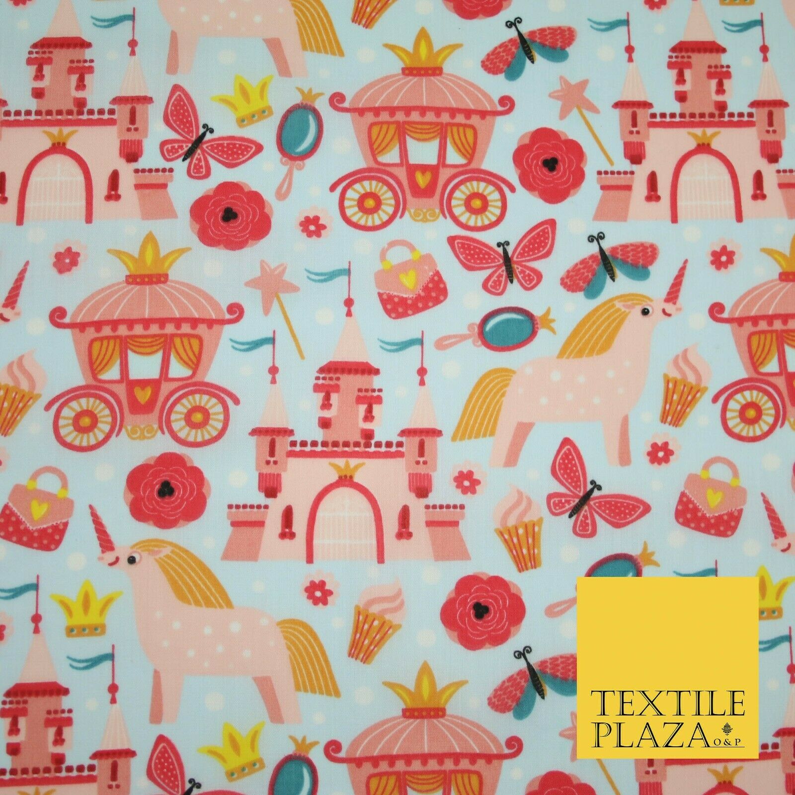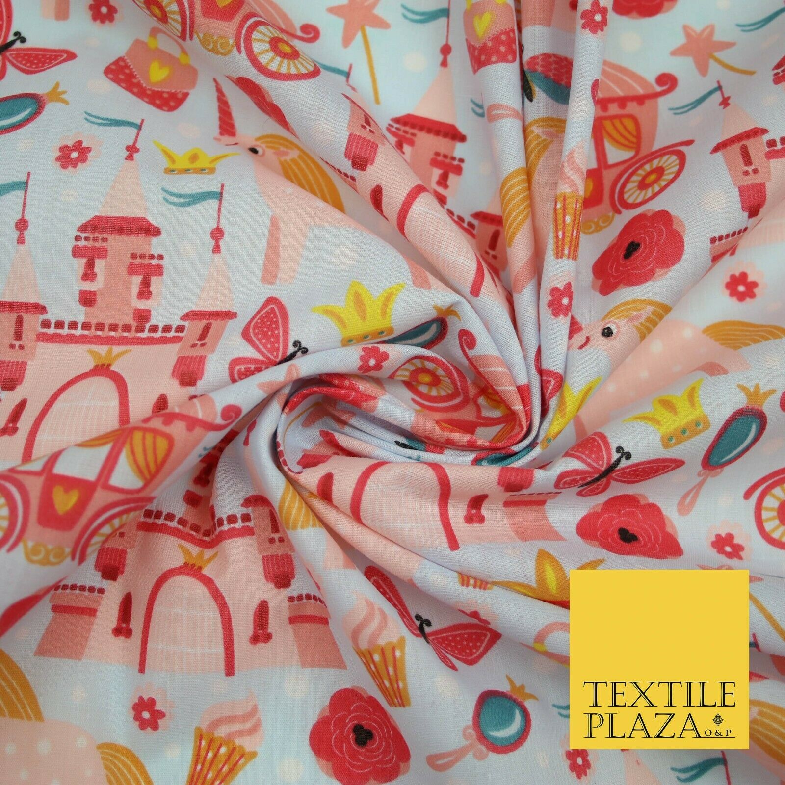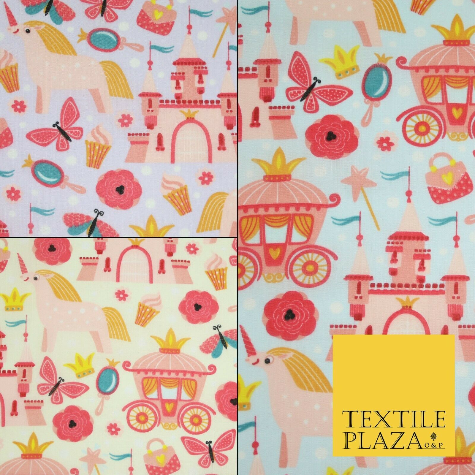 Unicorn Girly Princess Castle Printed Polycotton Dress Craft Fabric 44" 3COLOURS