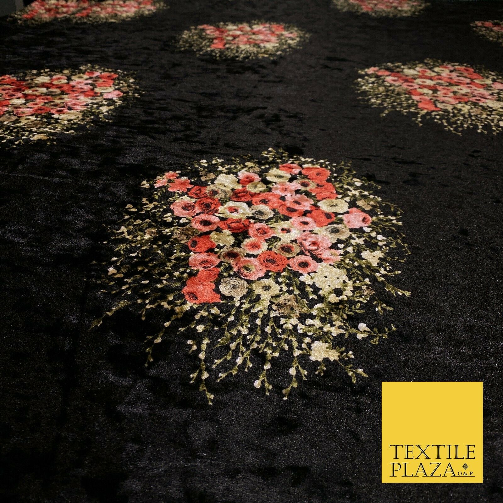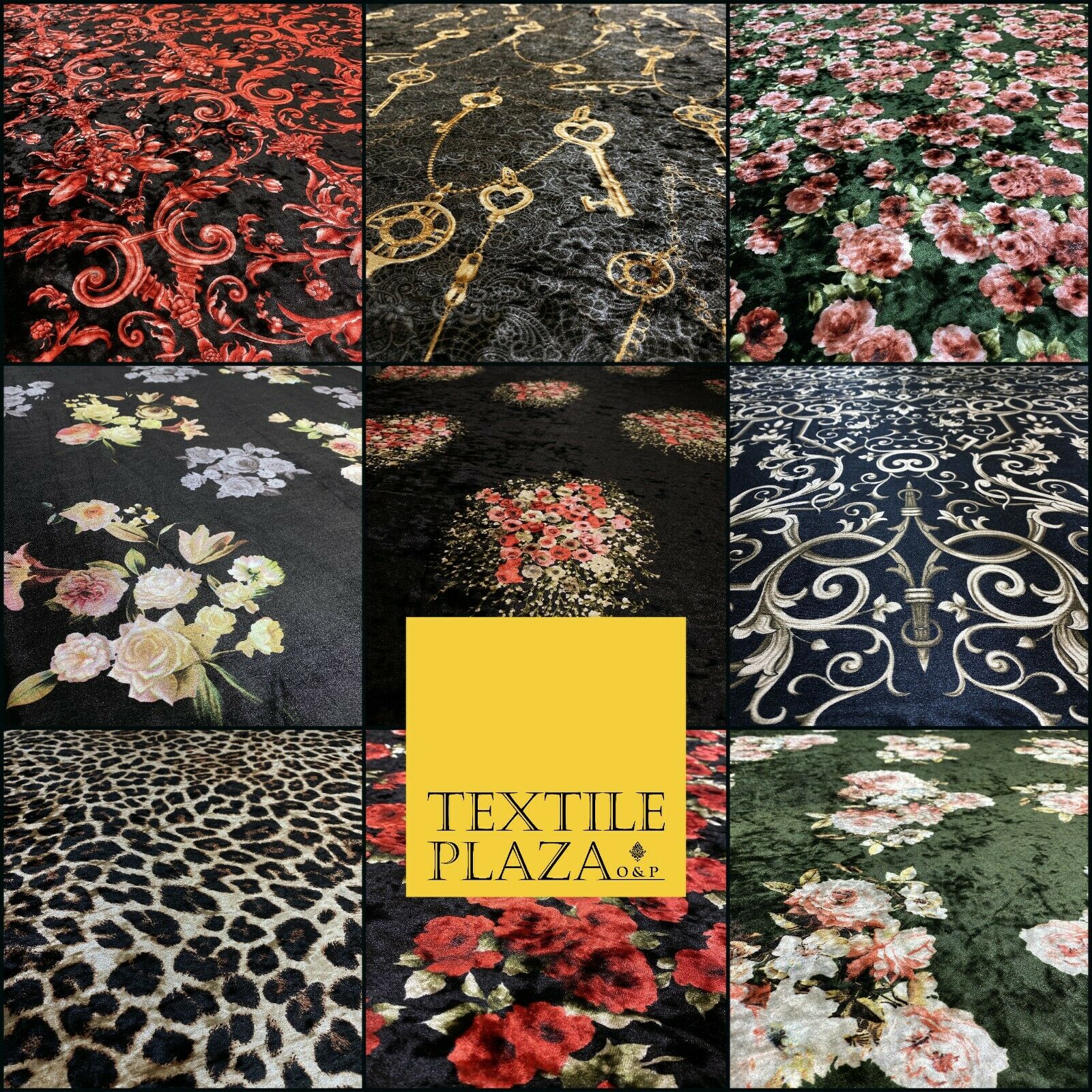 Various Floral Ornate Leopard Flowers Printed Soft Stretch Velvet Dress Fabric