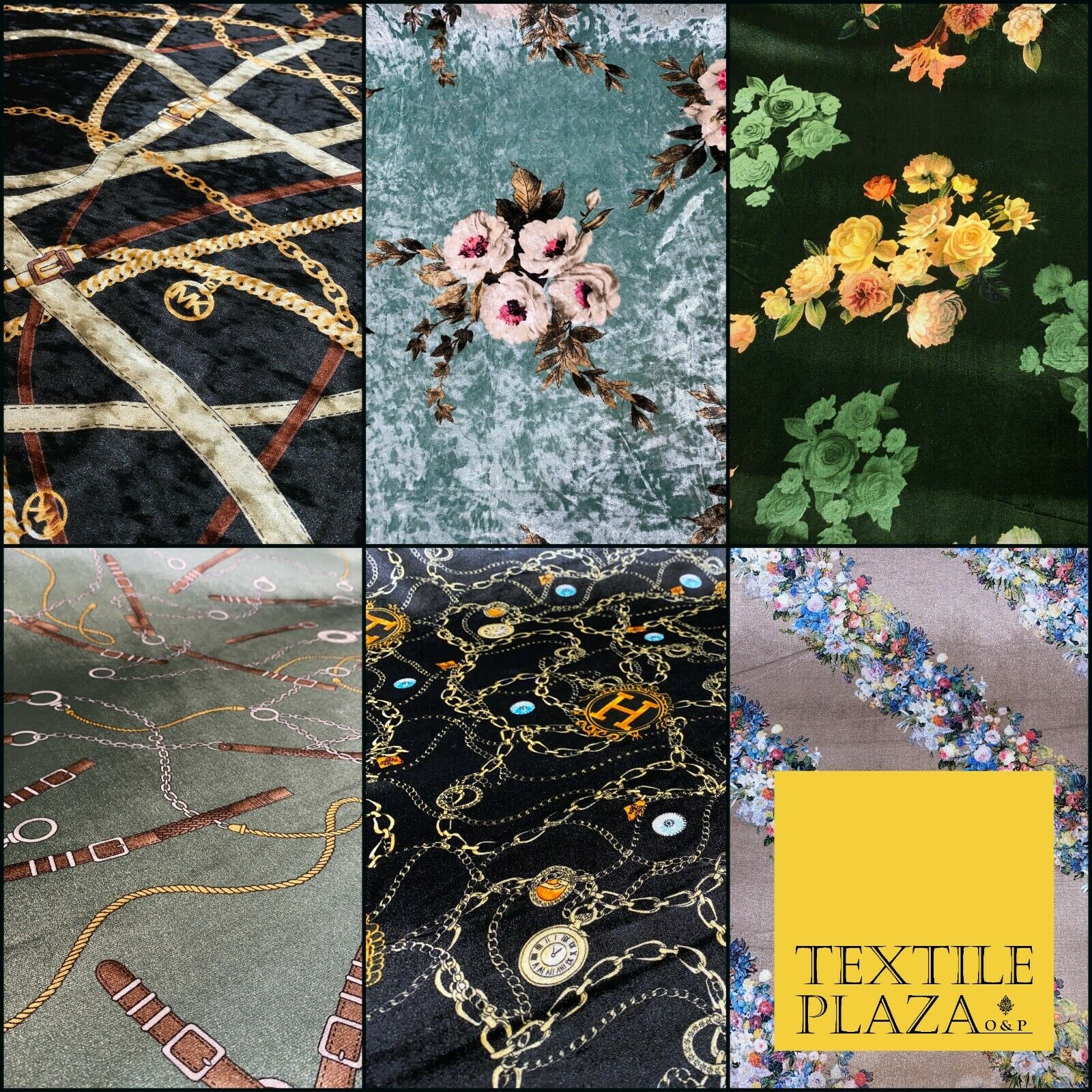 Various Floral Stripe Chains Hermes MK Printed Soft Stretch Velvet Dress Fabric