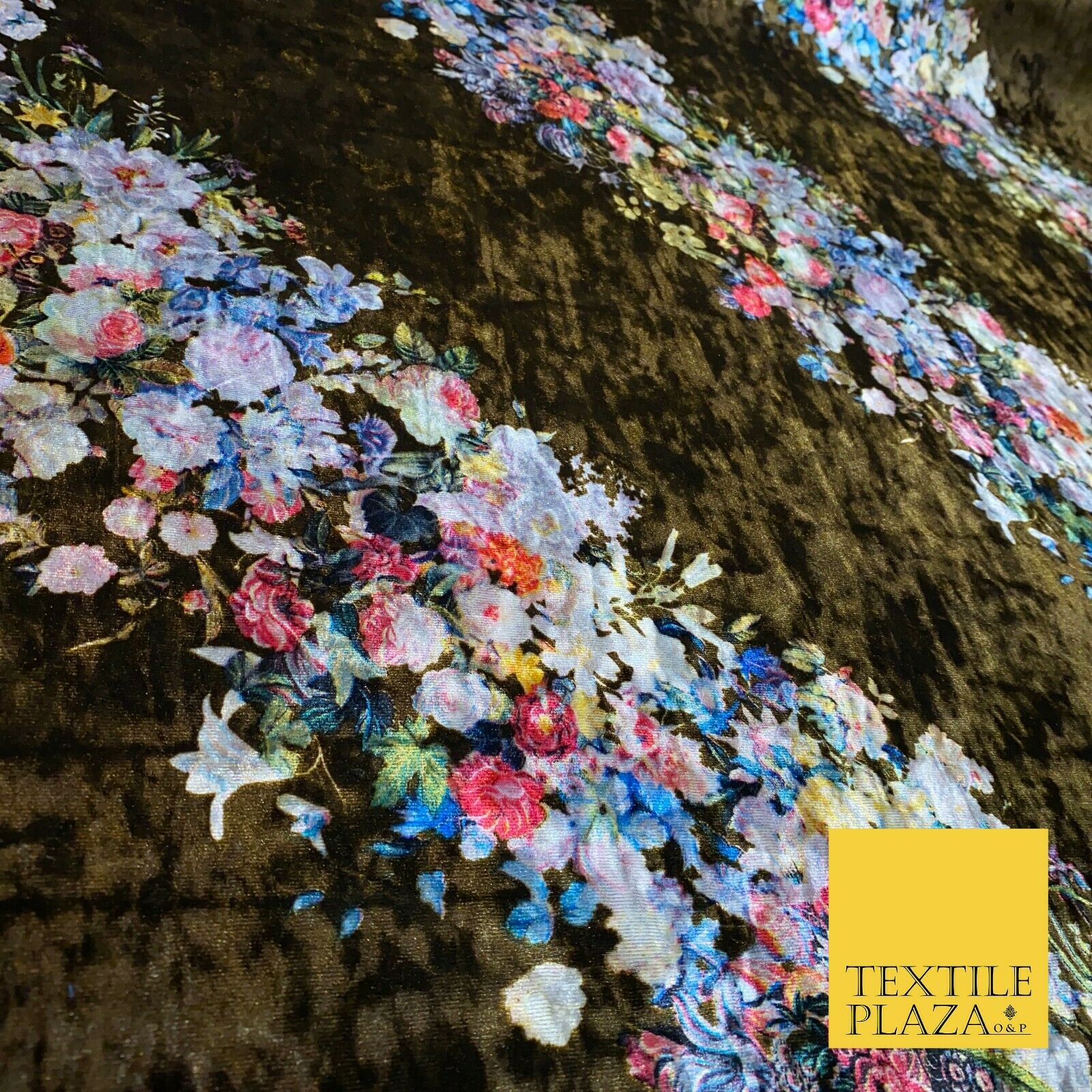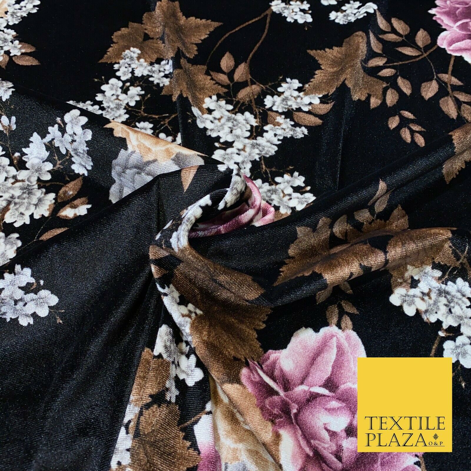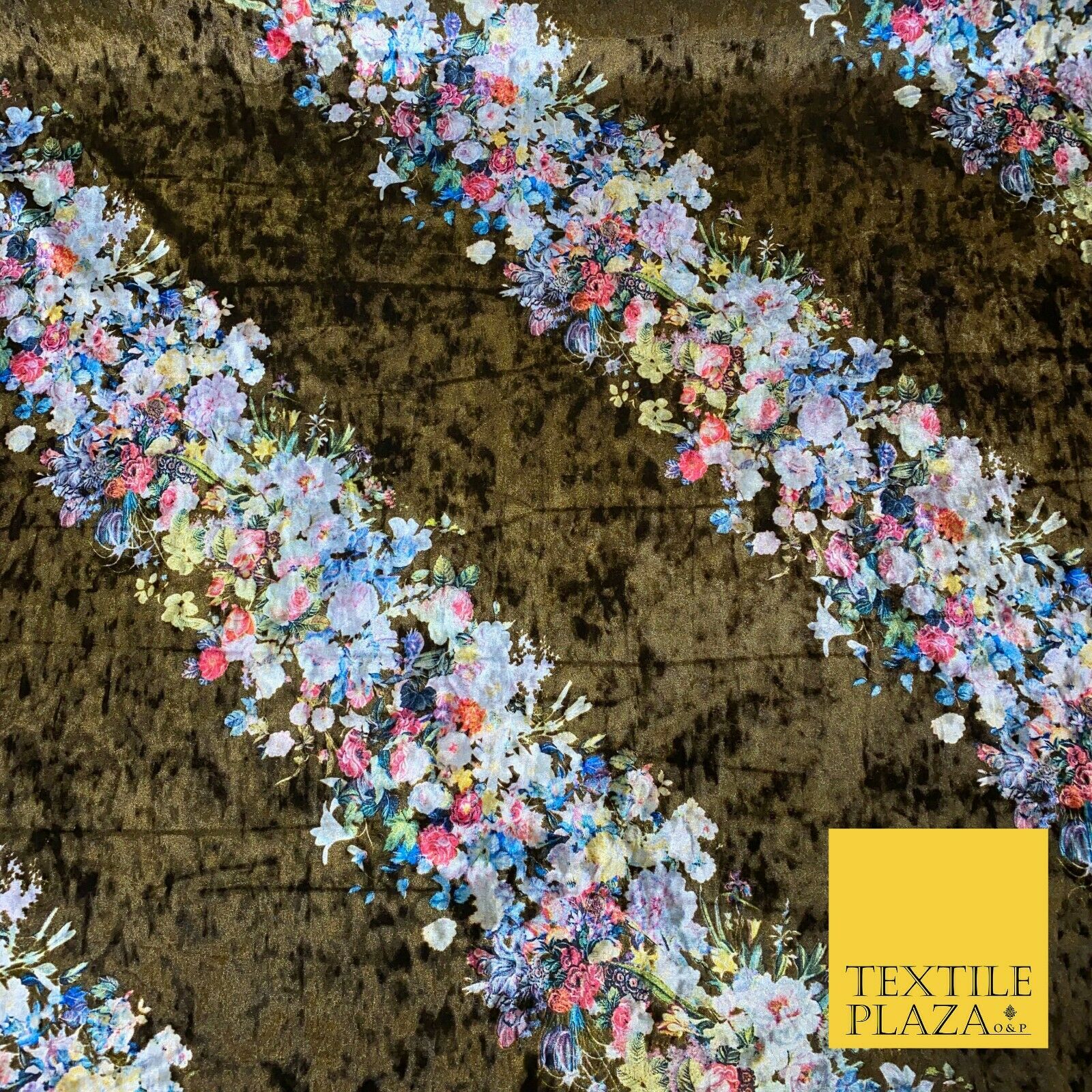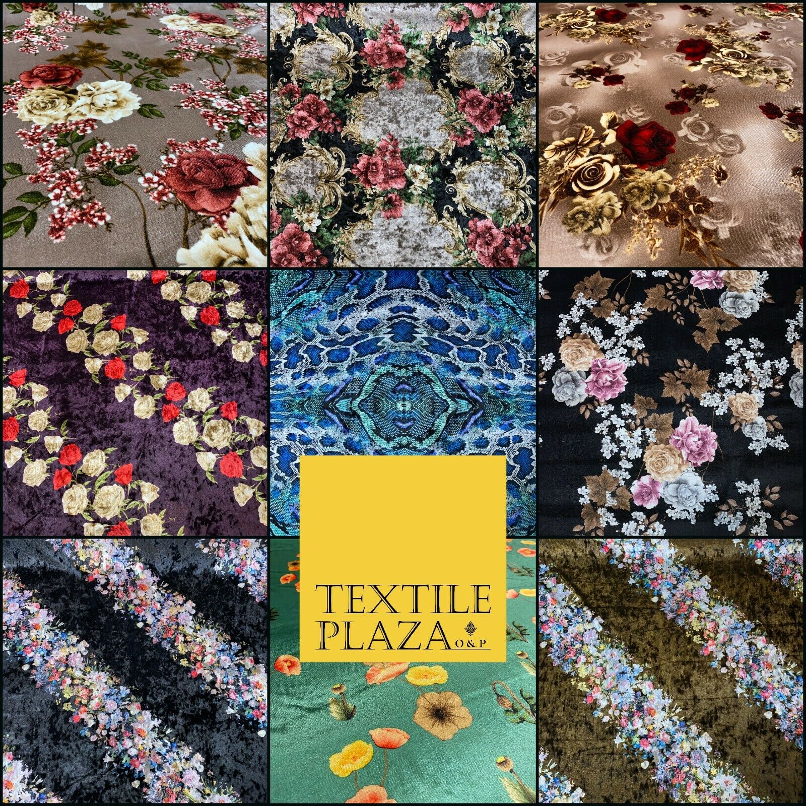 Various Floral Stripe Optical Blossom Printed Soft Stretch Velvet Dress Fabric