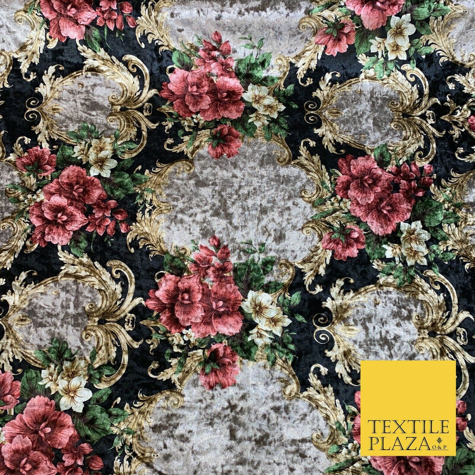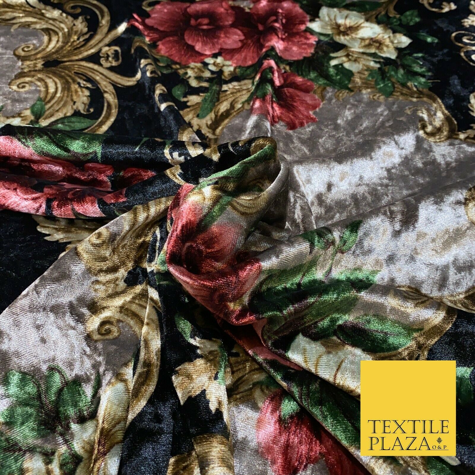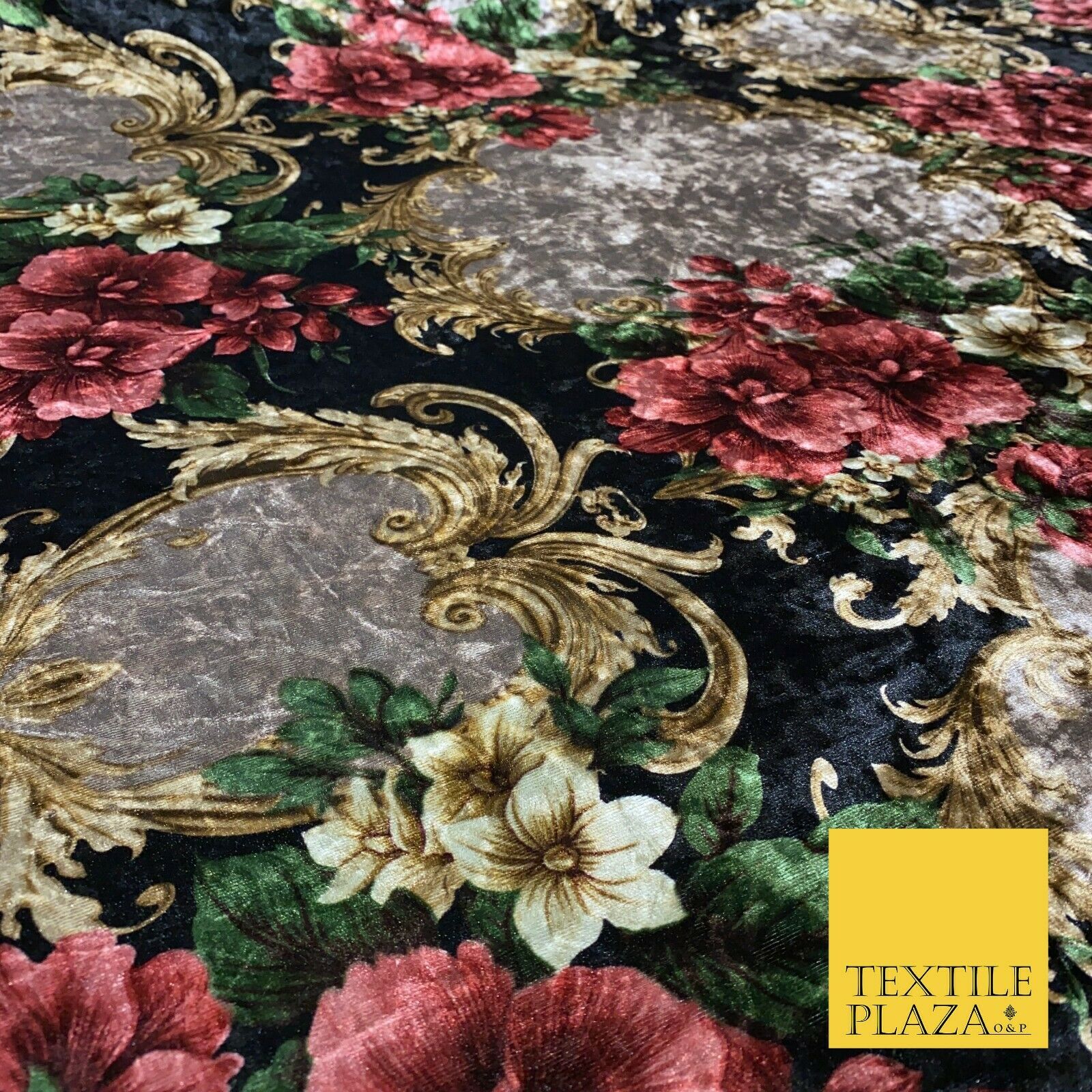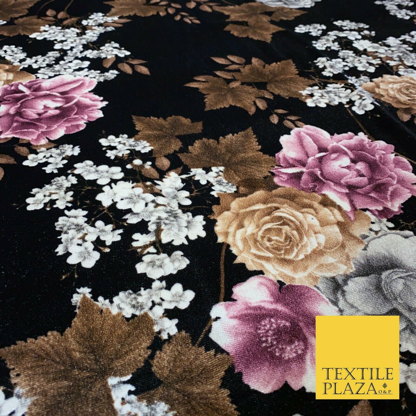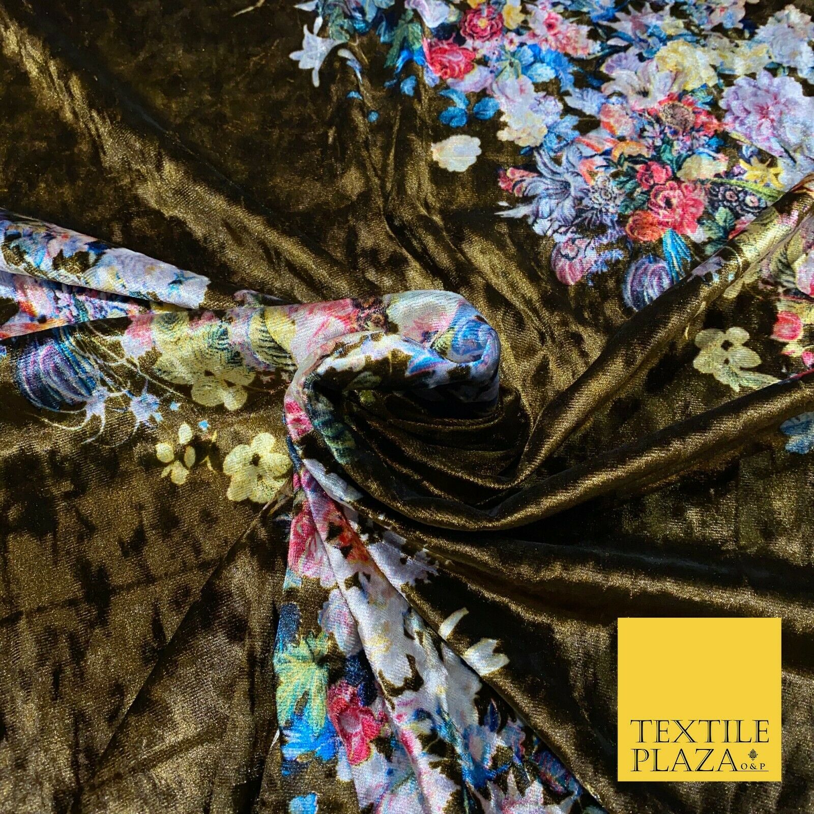 Various Floral Stripe Optical Blossom Printed Soft Stretch Velvet Dress Fabric