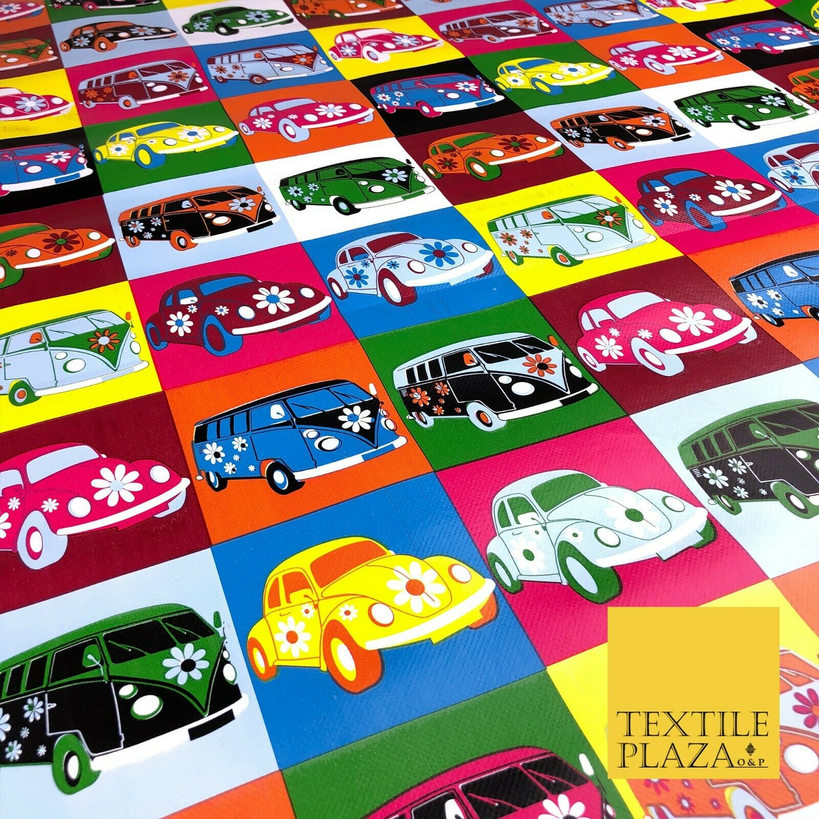 Vintage VW Beetle Colourful Retro PVC VINYL Tablecloth Oilcloth Wipe Clean 1261