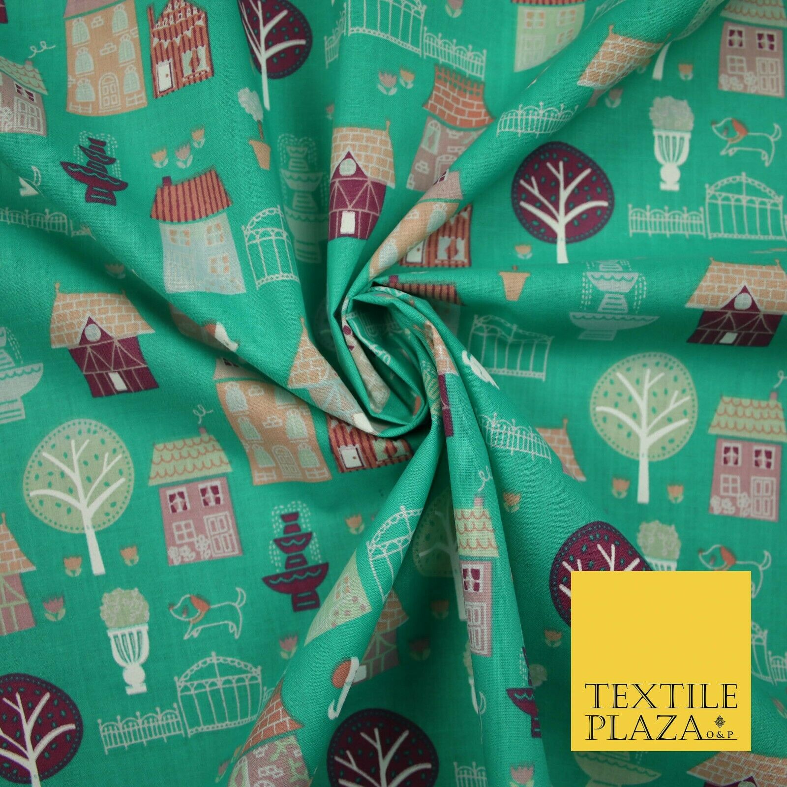 Walk In The Park Garden Gates Floral Printed Poly Cotton Fabric Polycotton Craft