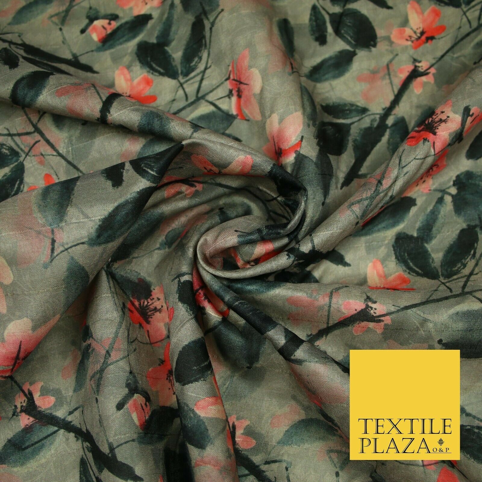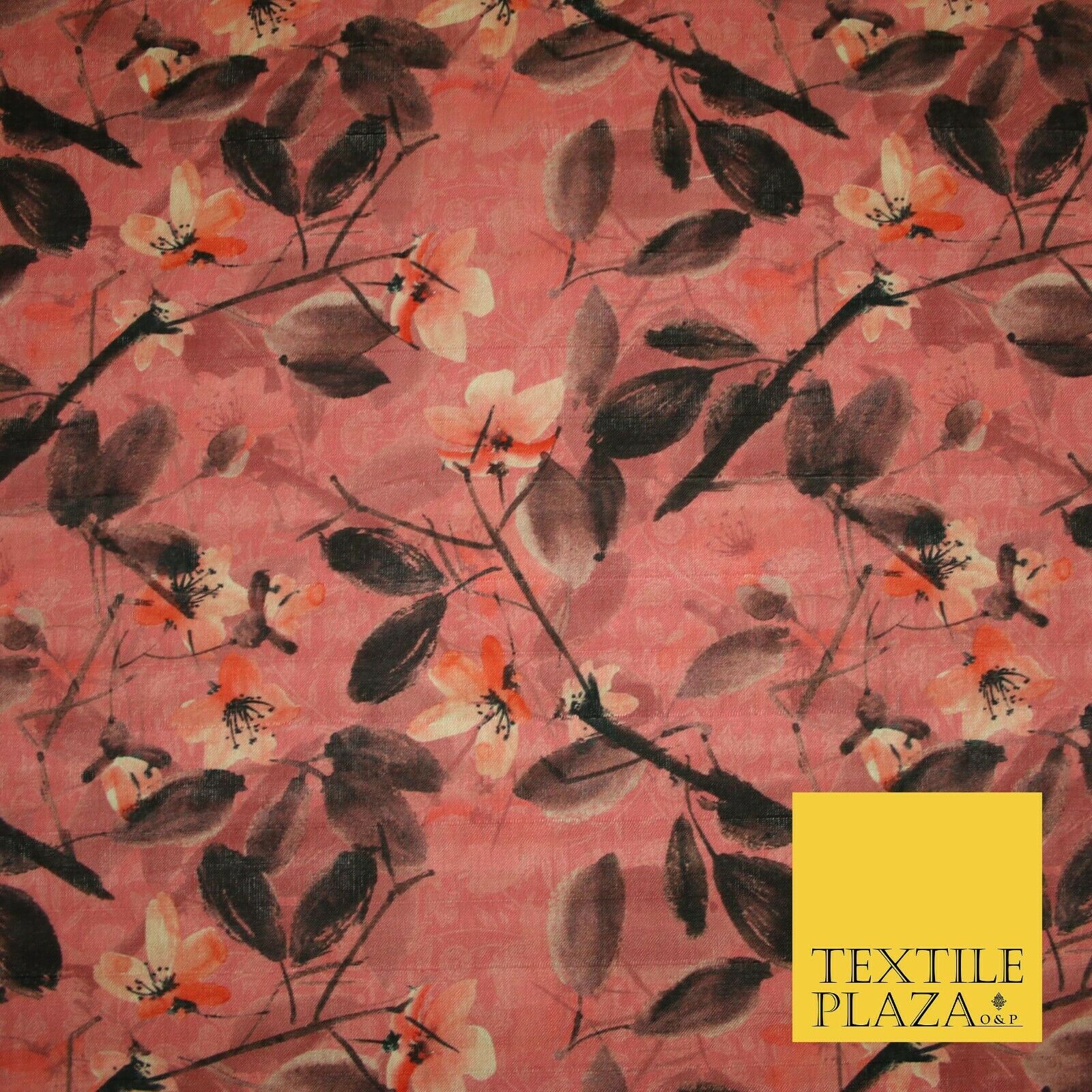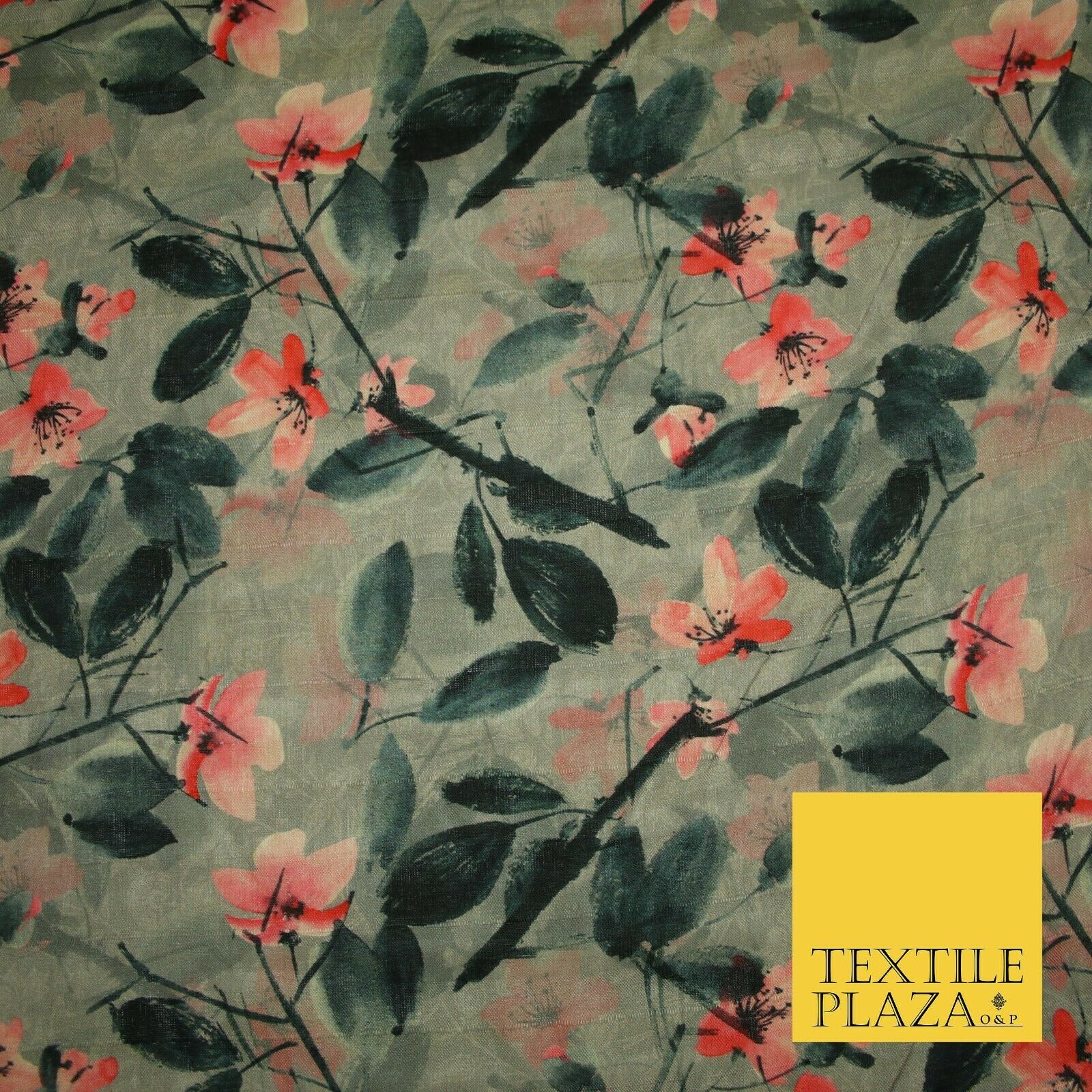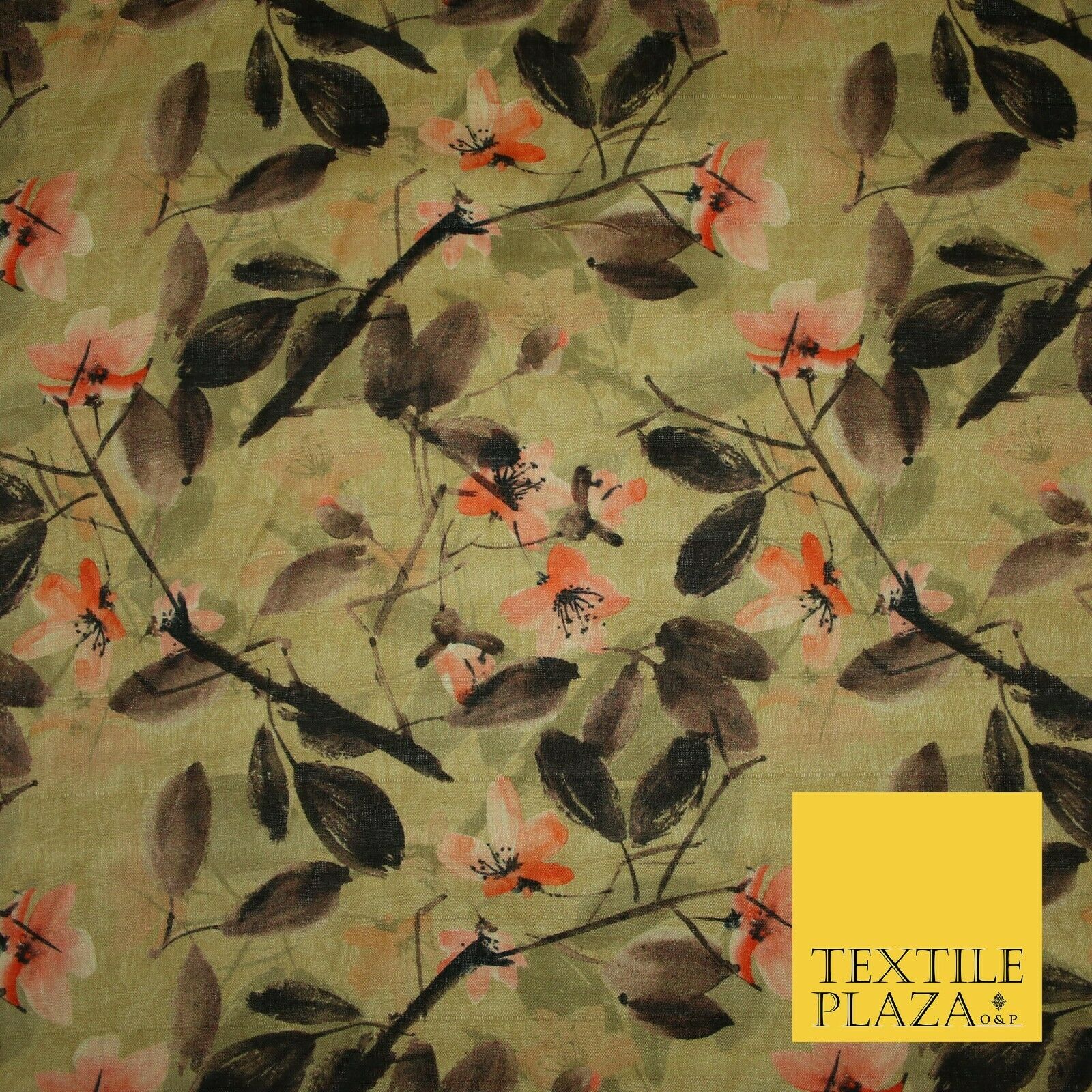 Watercolour Floral Leaves Digital Printed Faux Dupion Raw Silk Fabric Textured