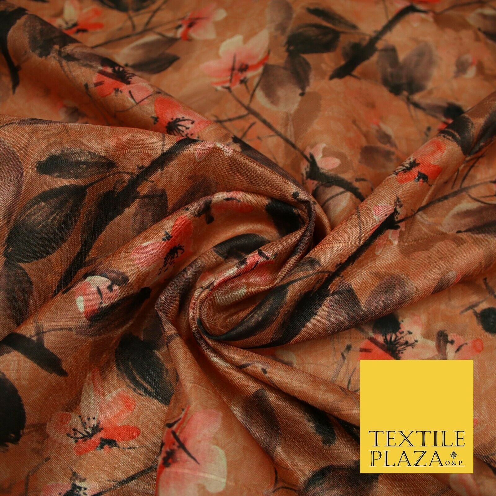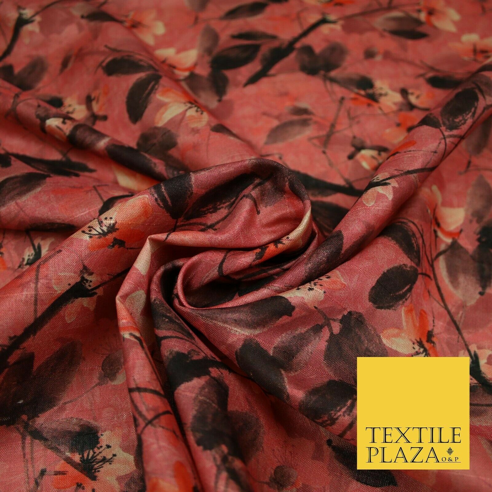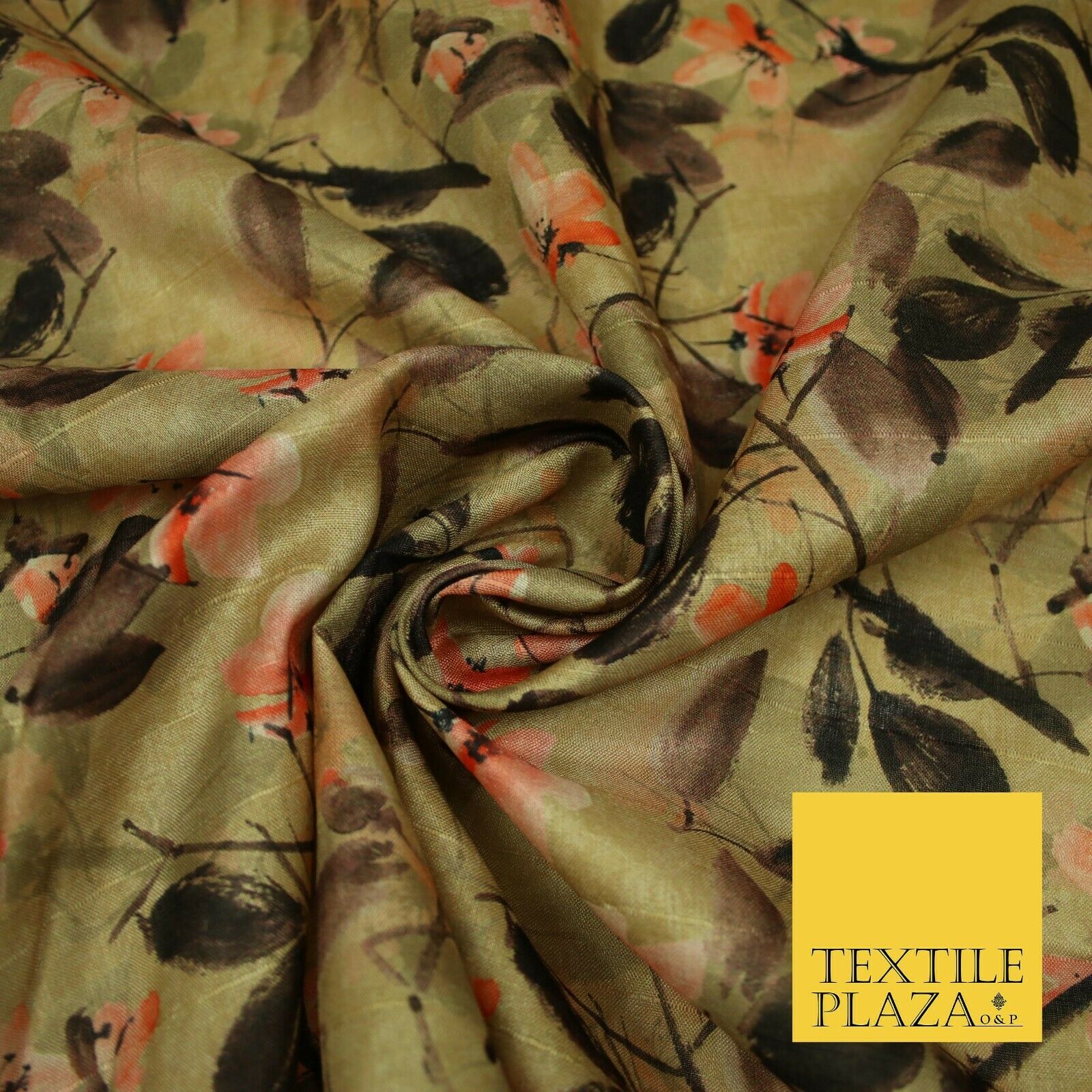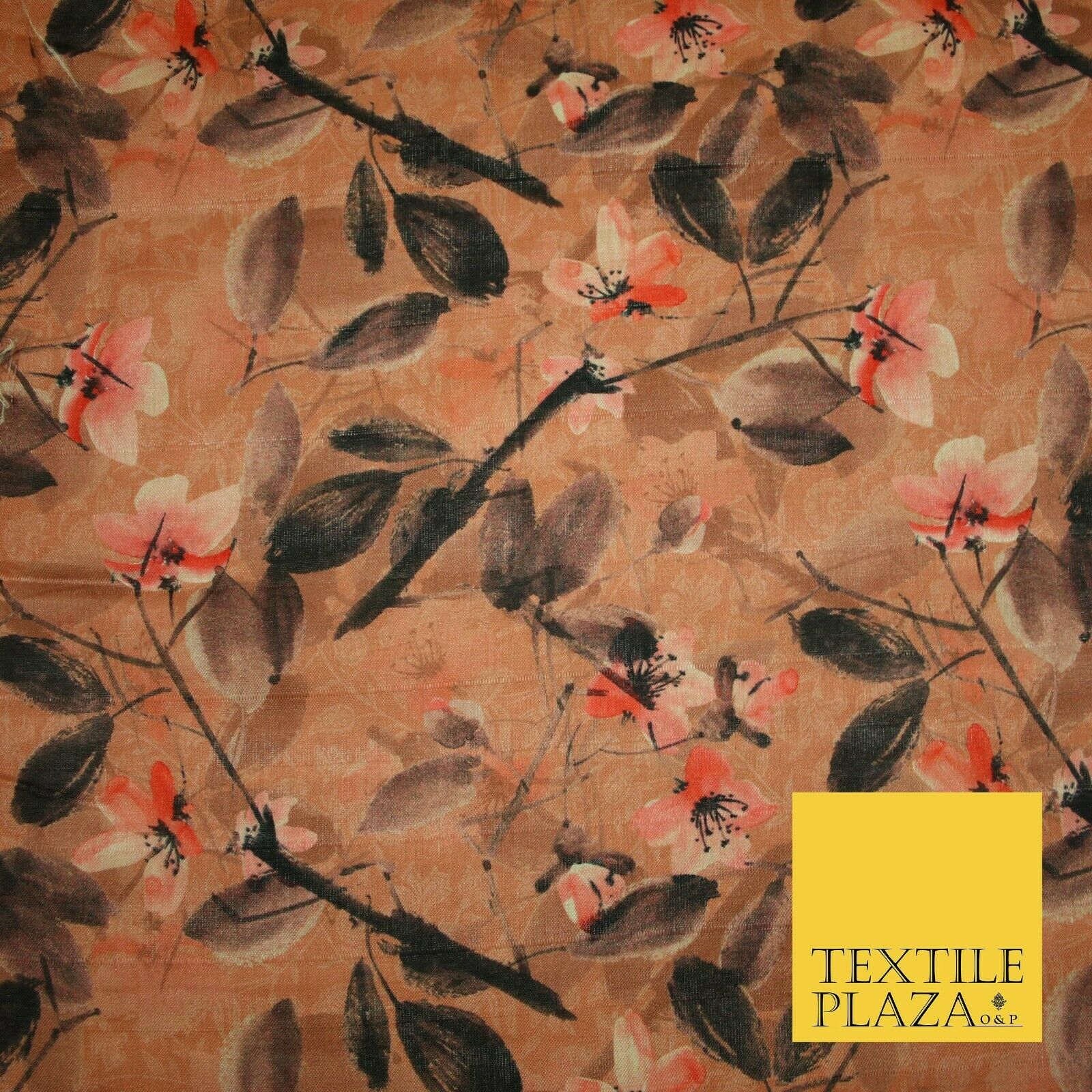 Watercolour Floral Leaves Digital Printed Faux Dupion Raw Silk Fabric Textured