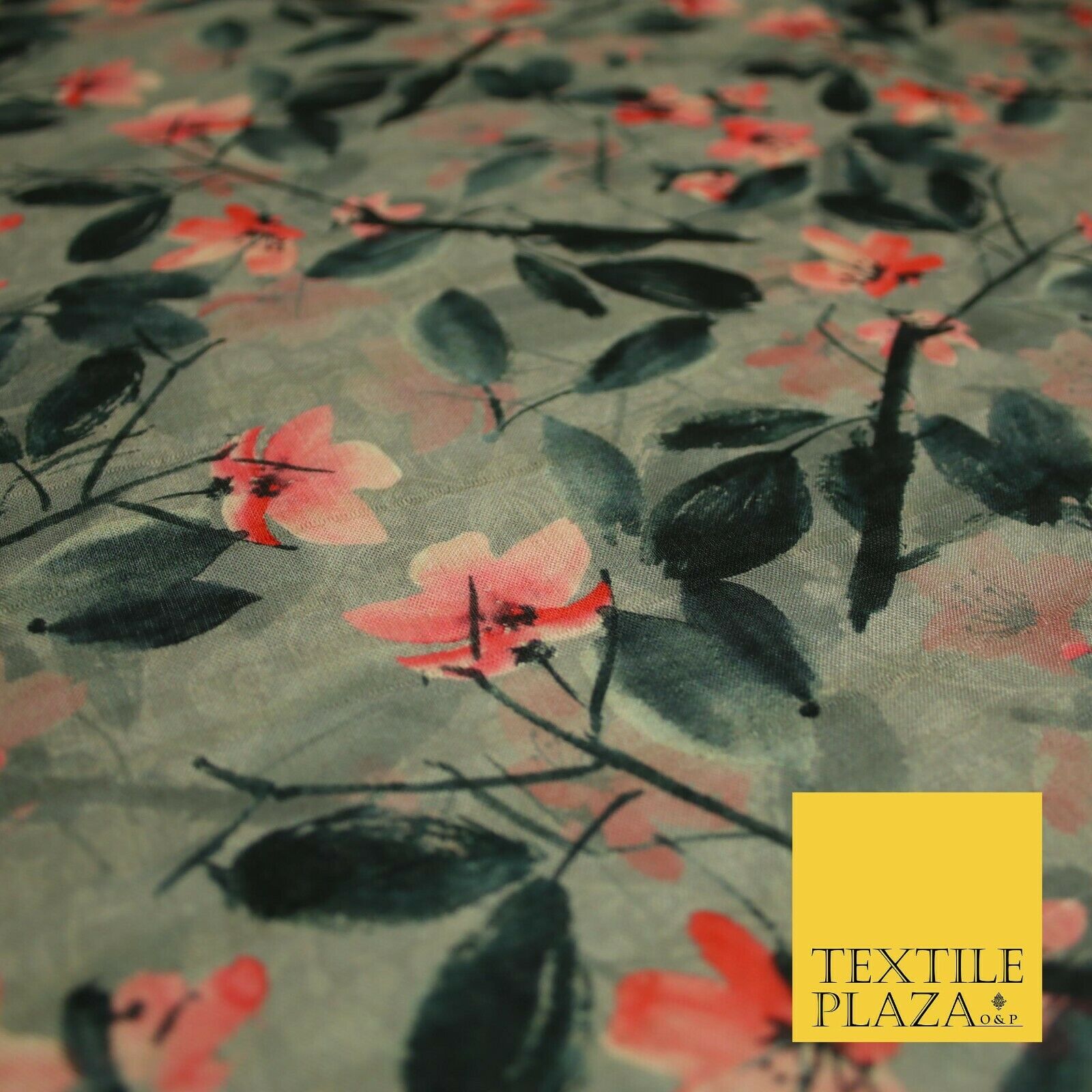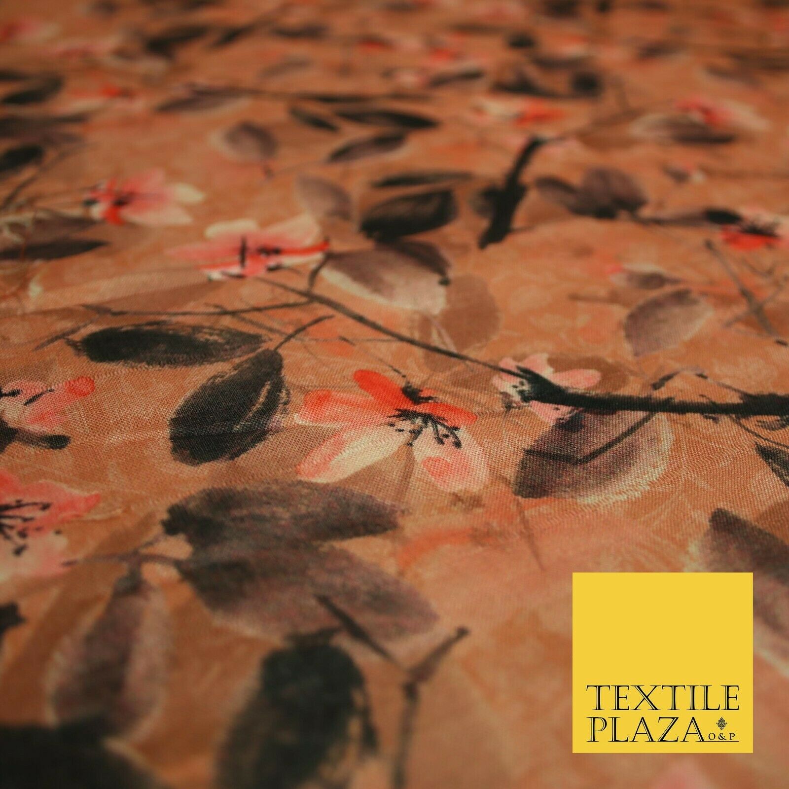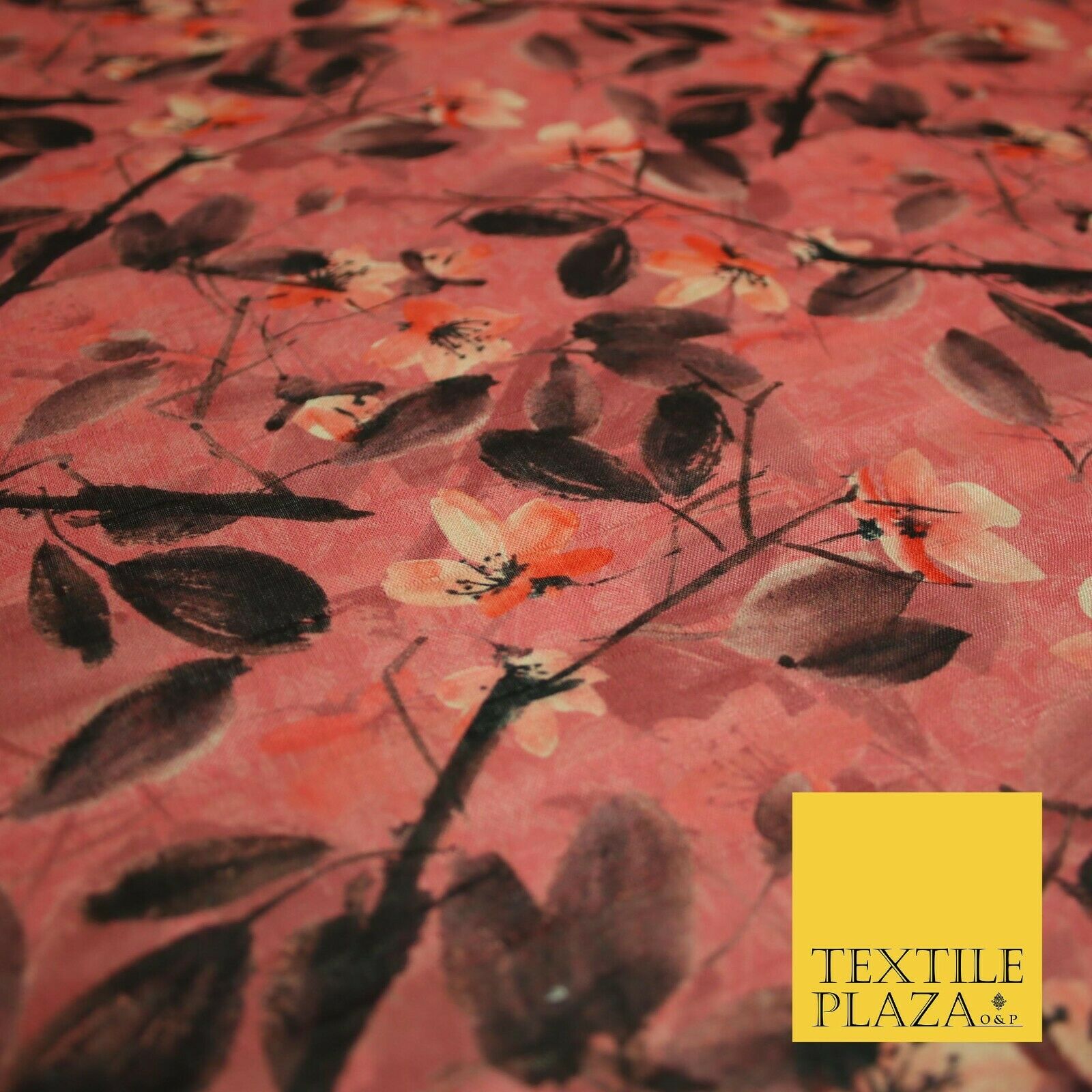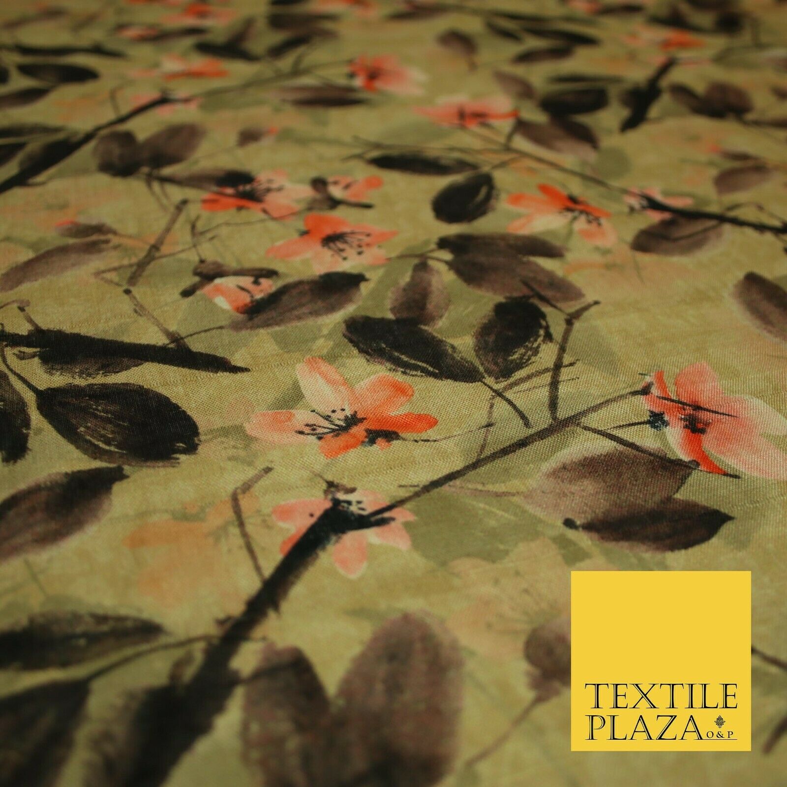 Watercolour Floral Leaves Digital Printed Faux Dupion Raw Silk Fabric Textured