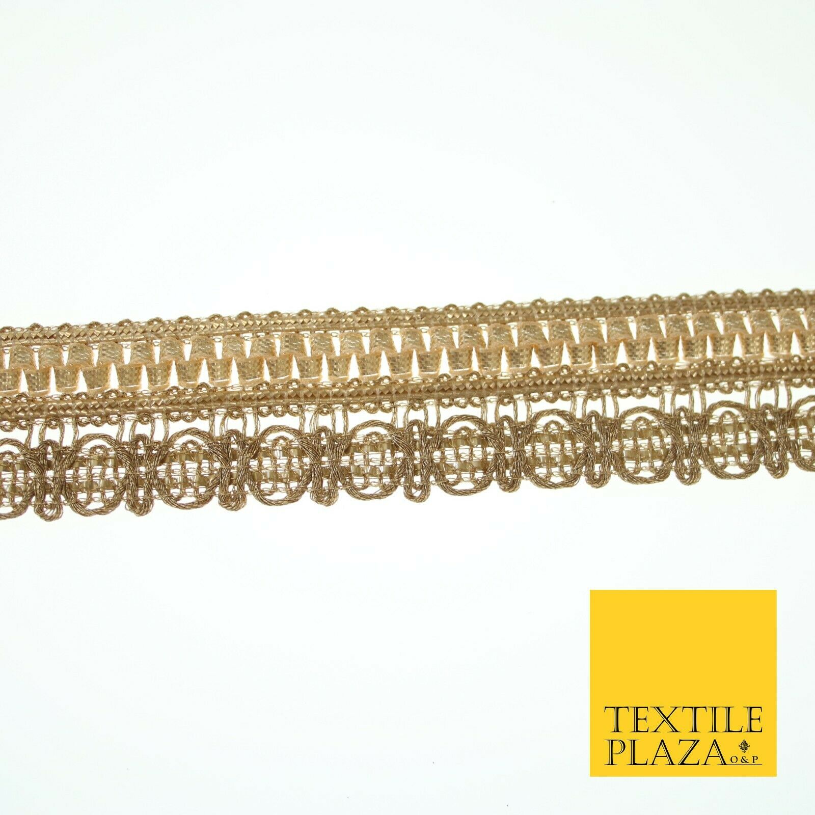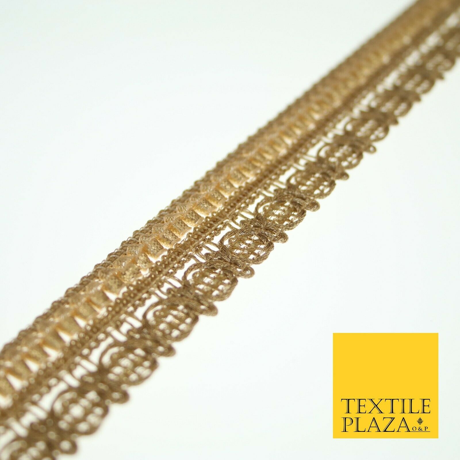 Wheat Gold Ornate Corded Woven Trim Border Gota Ribbon Lace 2.5cm Wide X552
