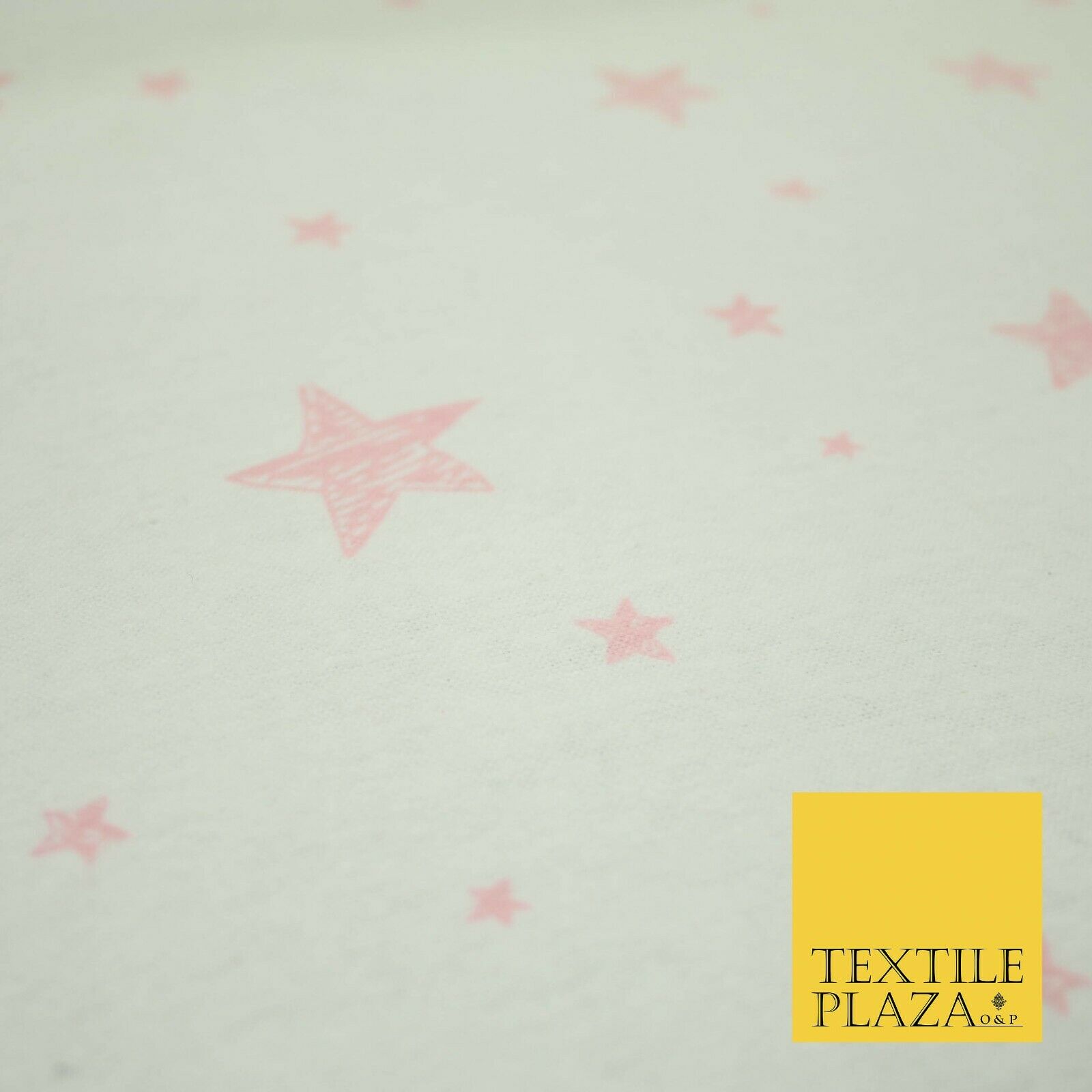 White Baby Pink Sketch Multi Star Brushed Cotton Winceyette Fabric Flannel 5533