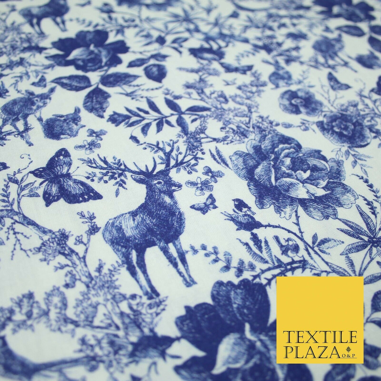 Floral Reindeer Forest Design Printed 100% Pure Cotton Fabric