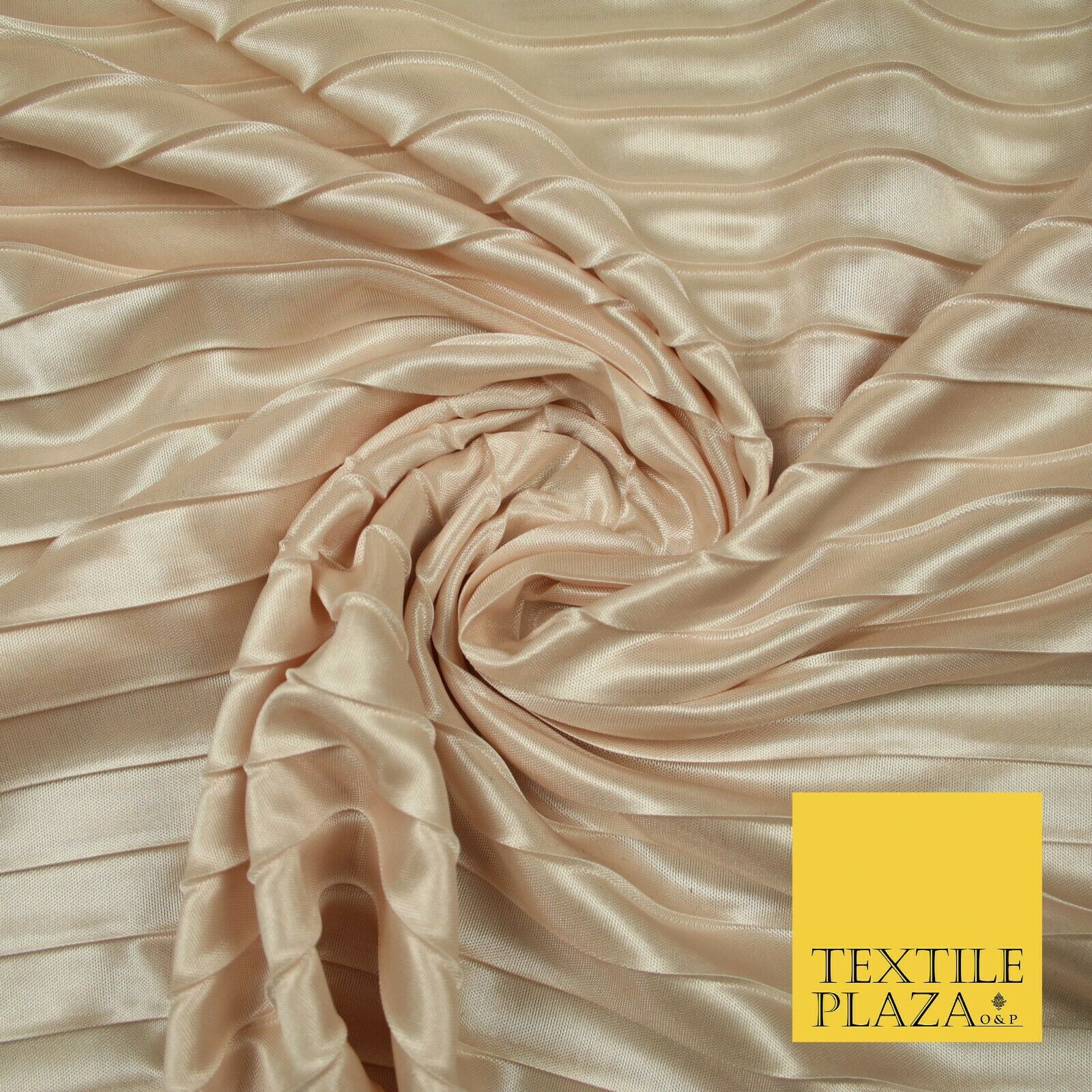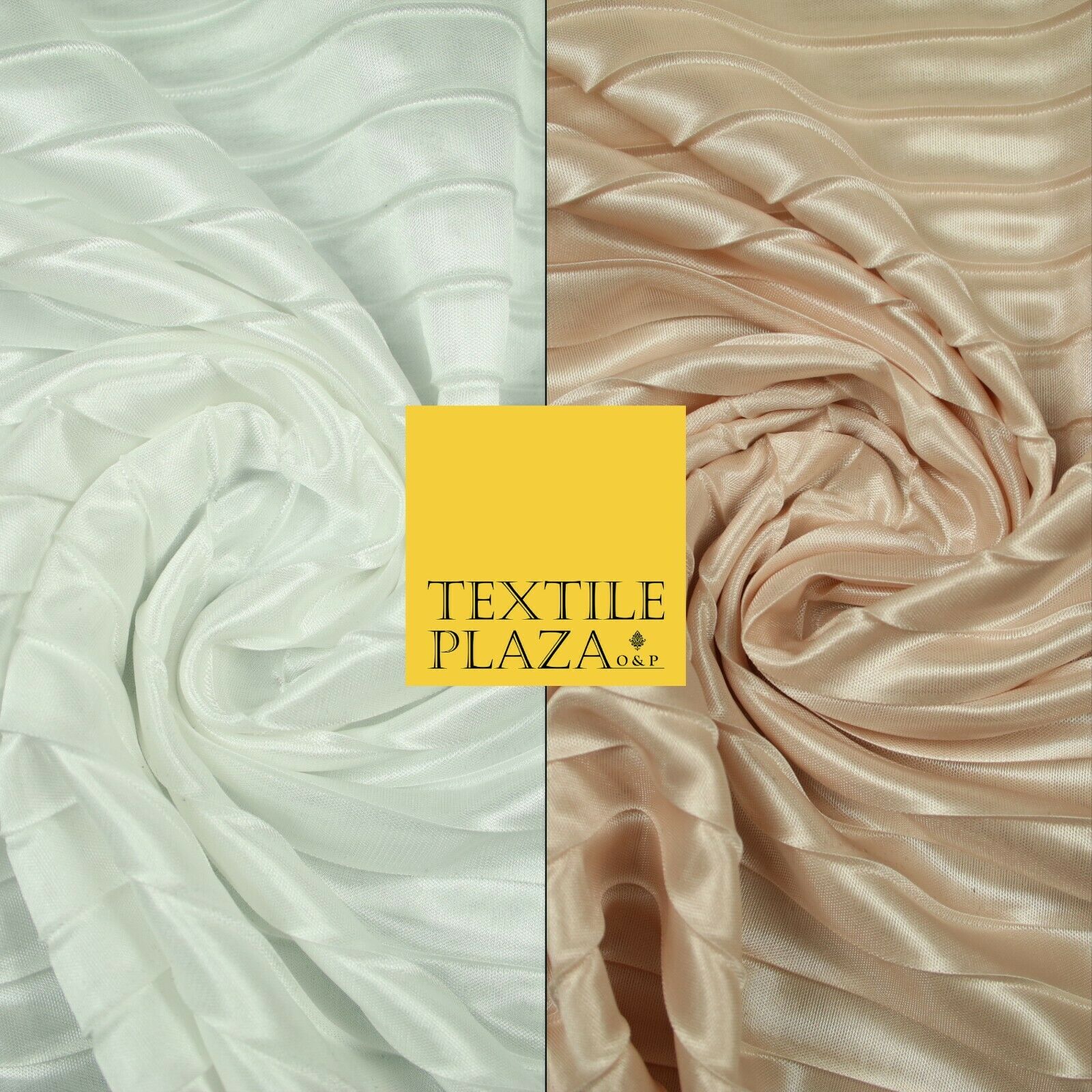 White Blush Pink 2cm Pleated Crinkle Stretch Silky Plisse Satin Fabric Dress 58"