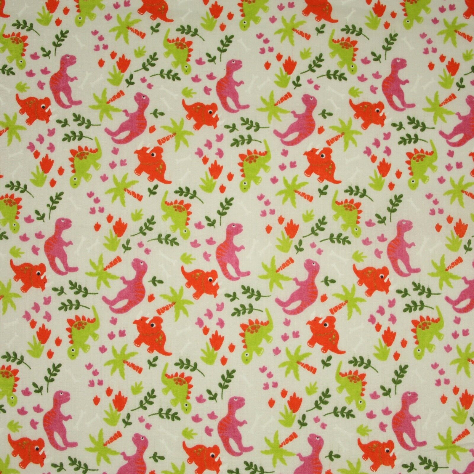 White Colourful Dinosaur Dino Printed Poly Cotton Fabric Polycotton Mask 45"3790