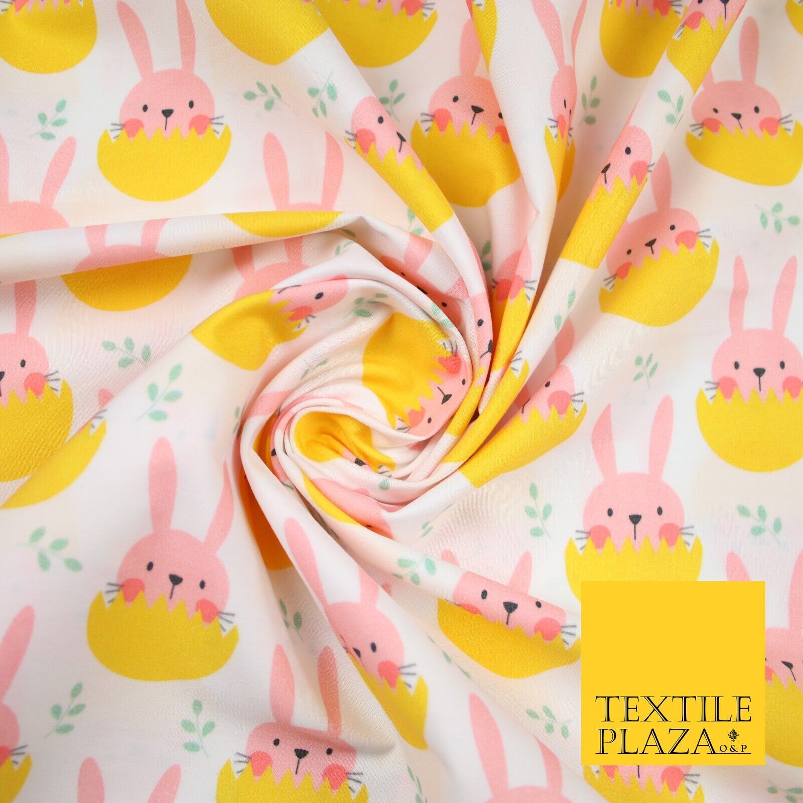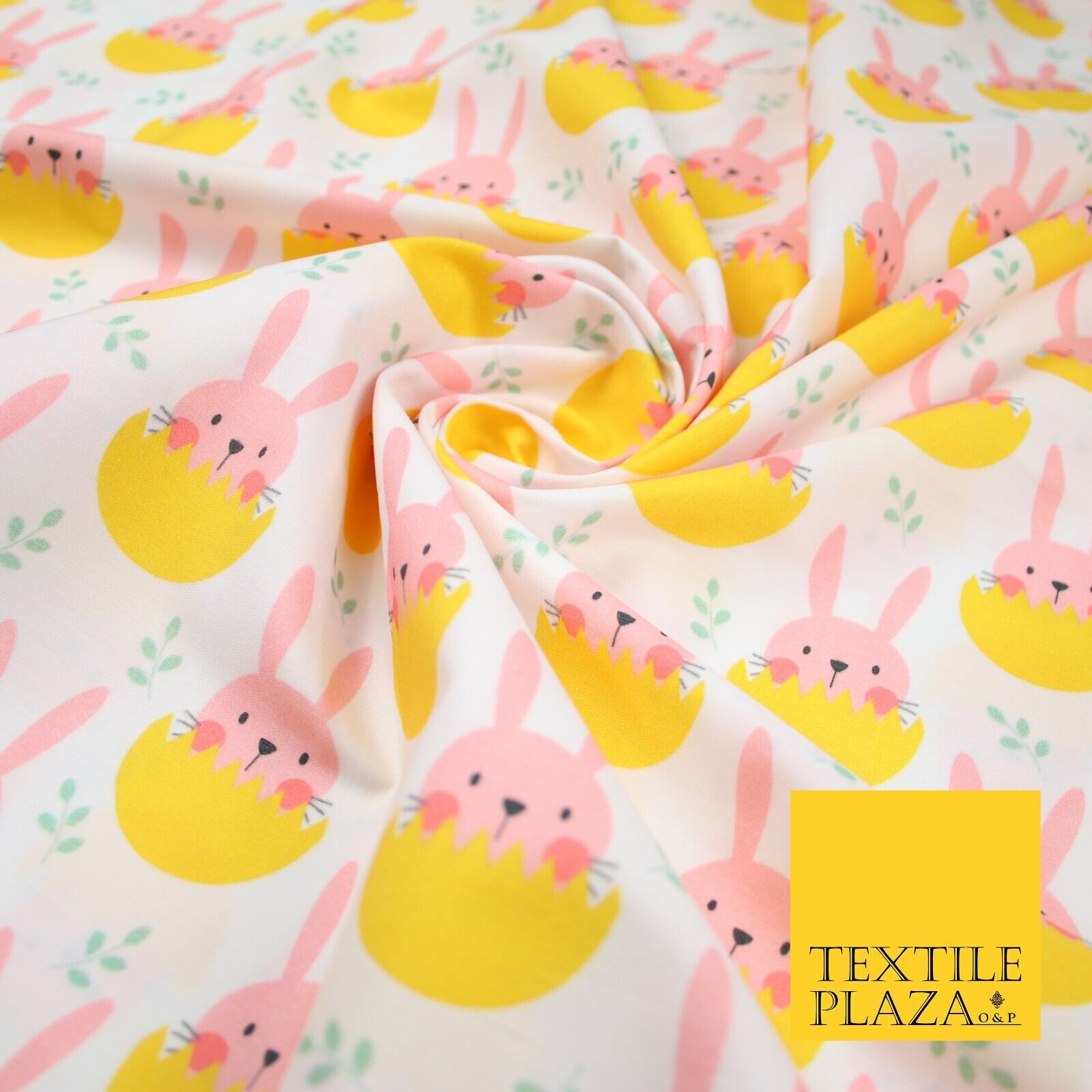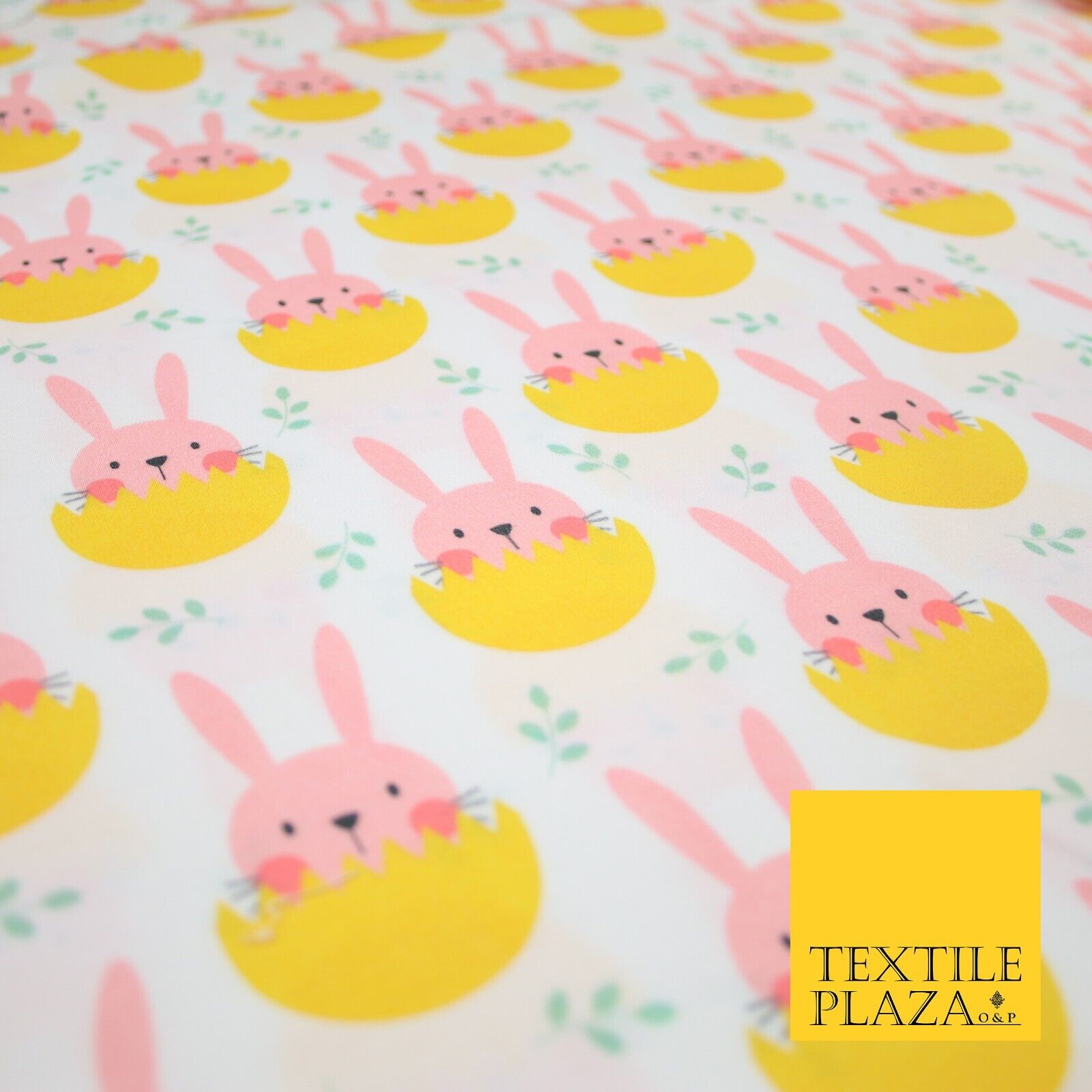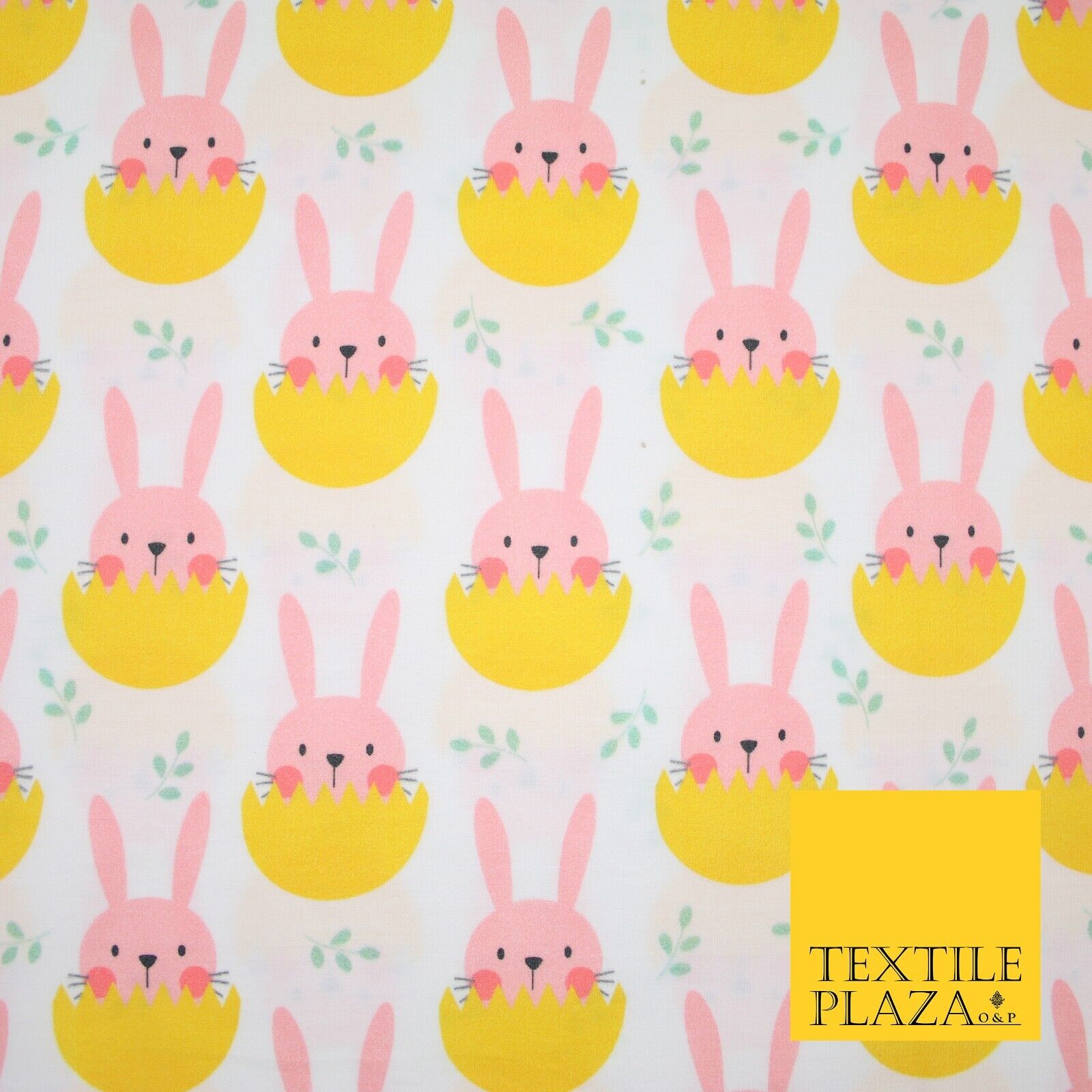 White Cute Peaking Pink Easter Bunny Rabbit Egg Printed 100% Cotton Fabric 7360