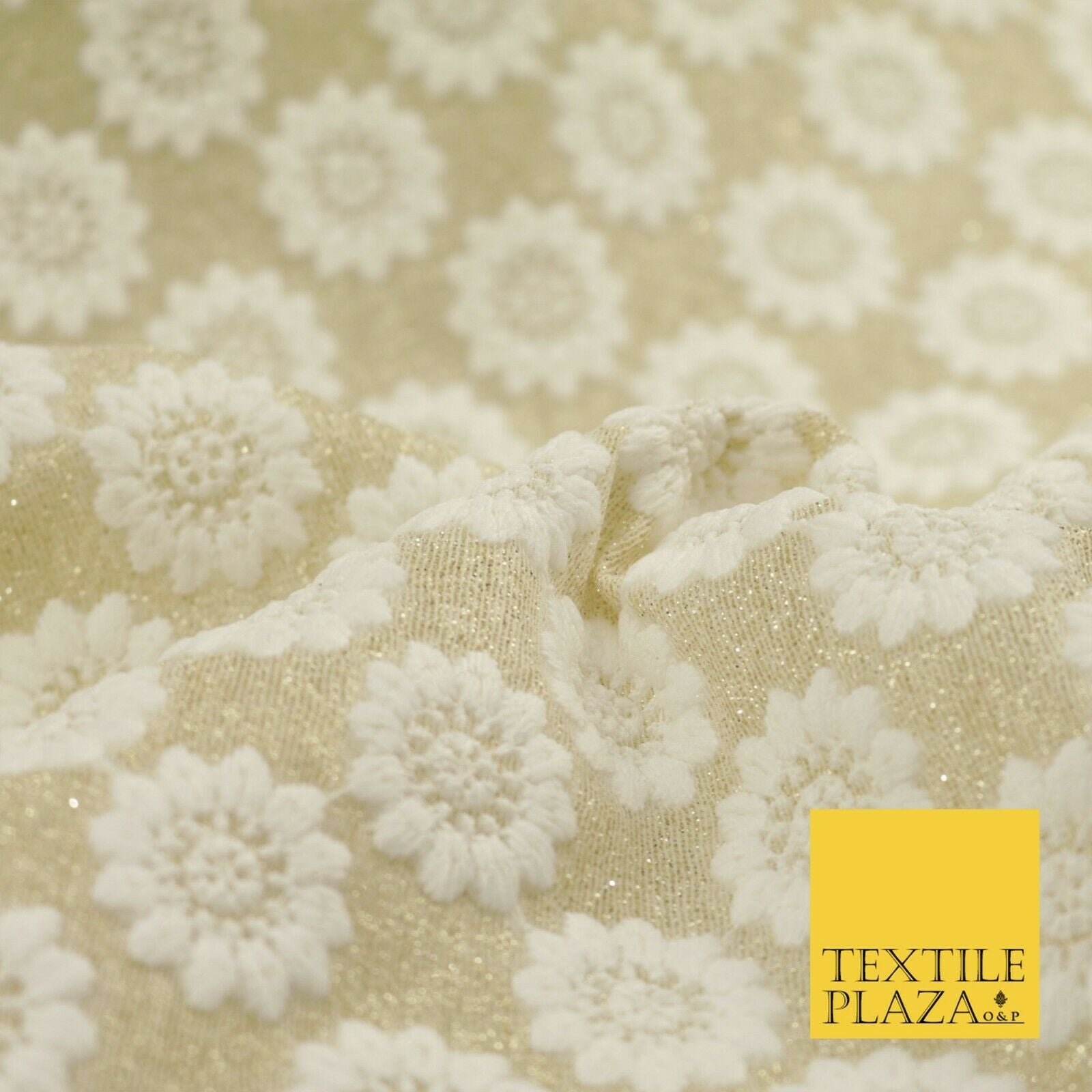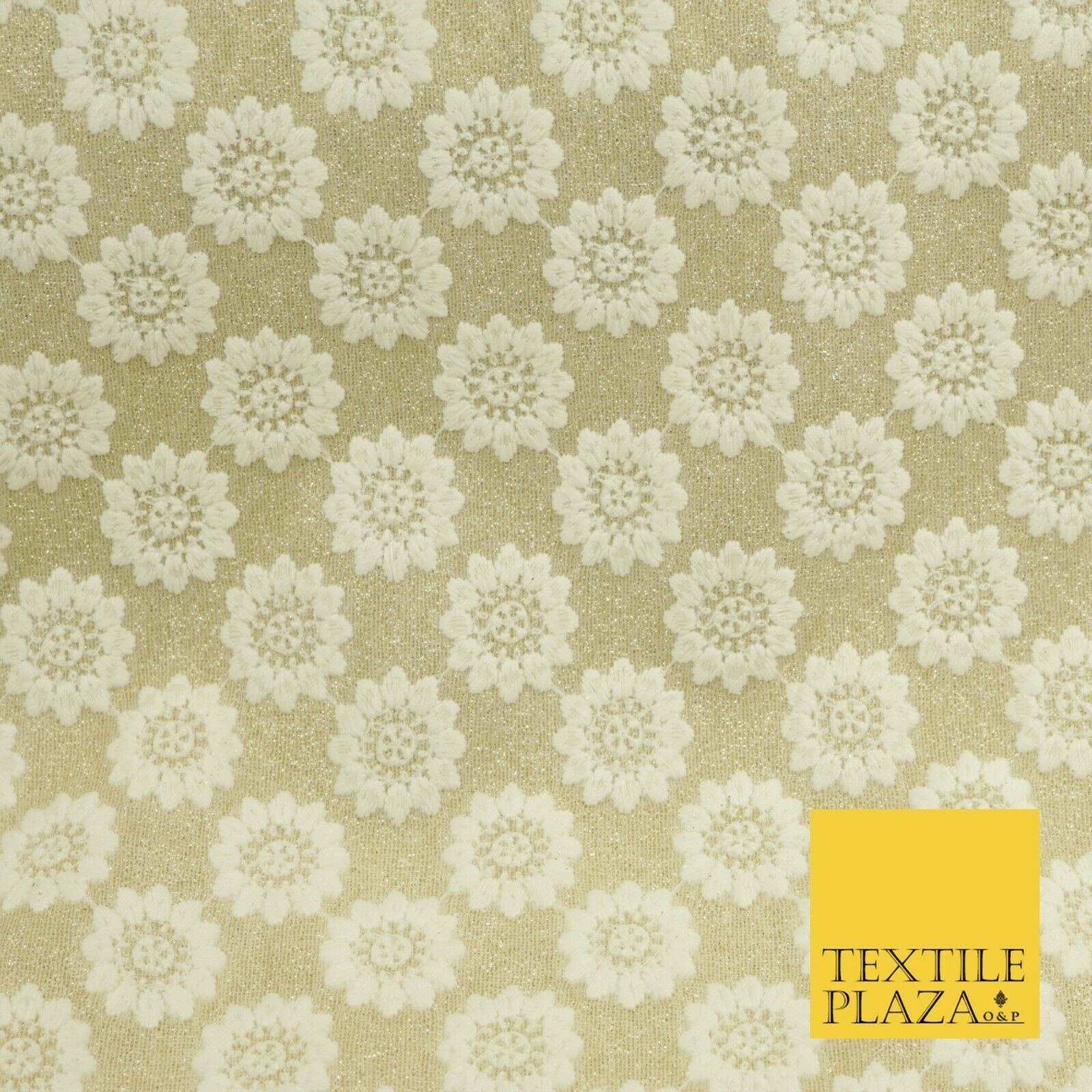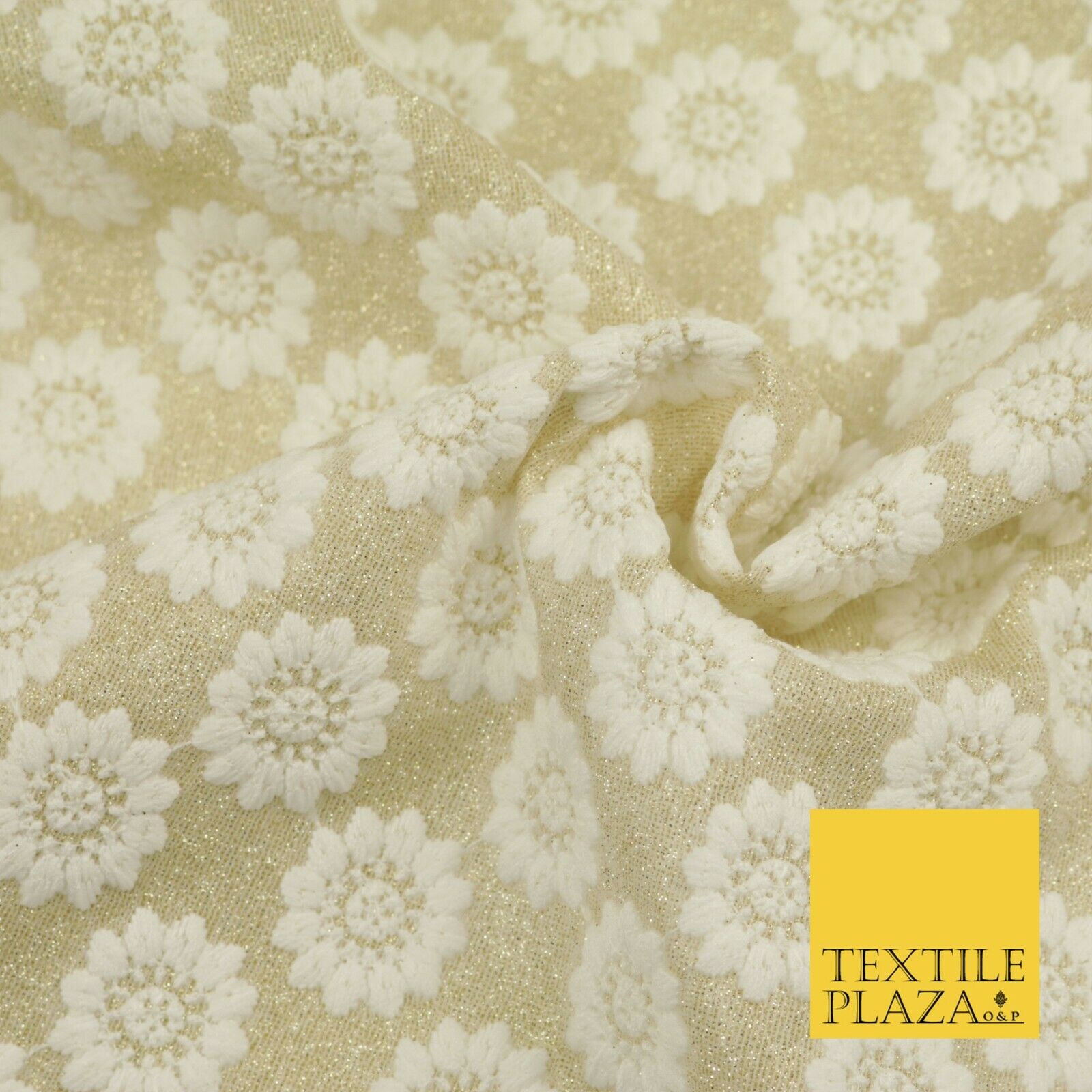 White Embroidered Gold Lurex Shimmer Fabric Backdrop Dance Sparkle 1448