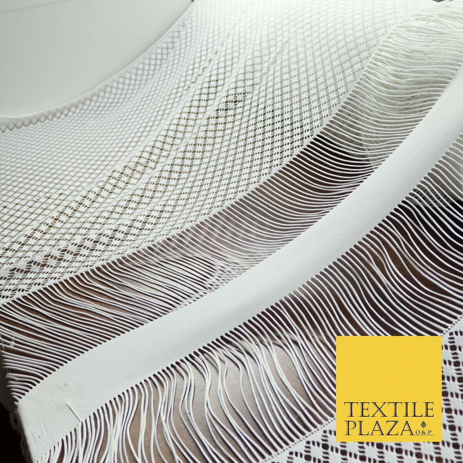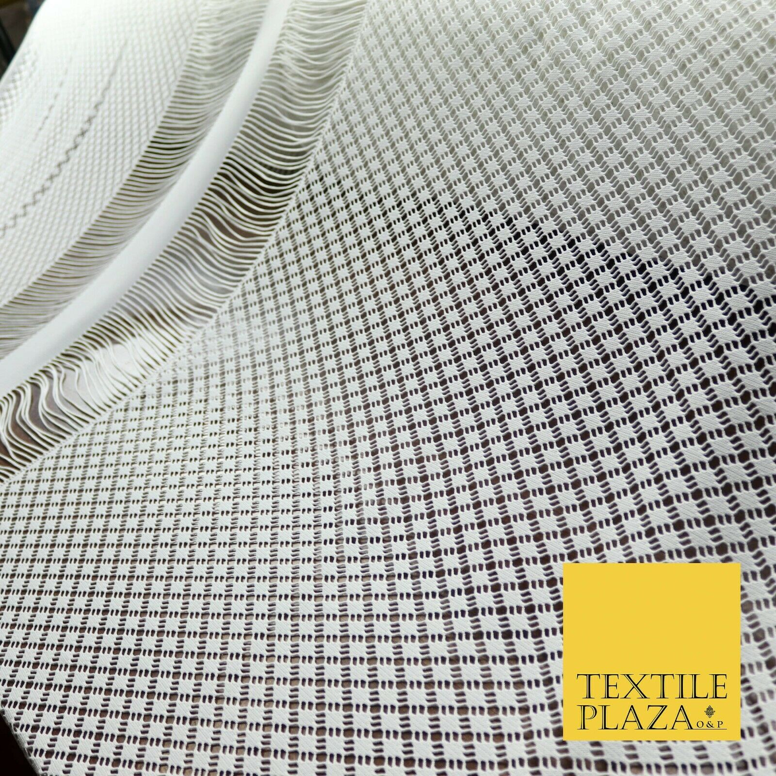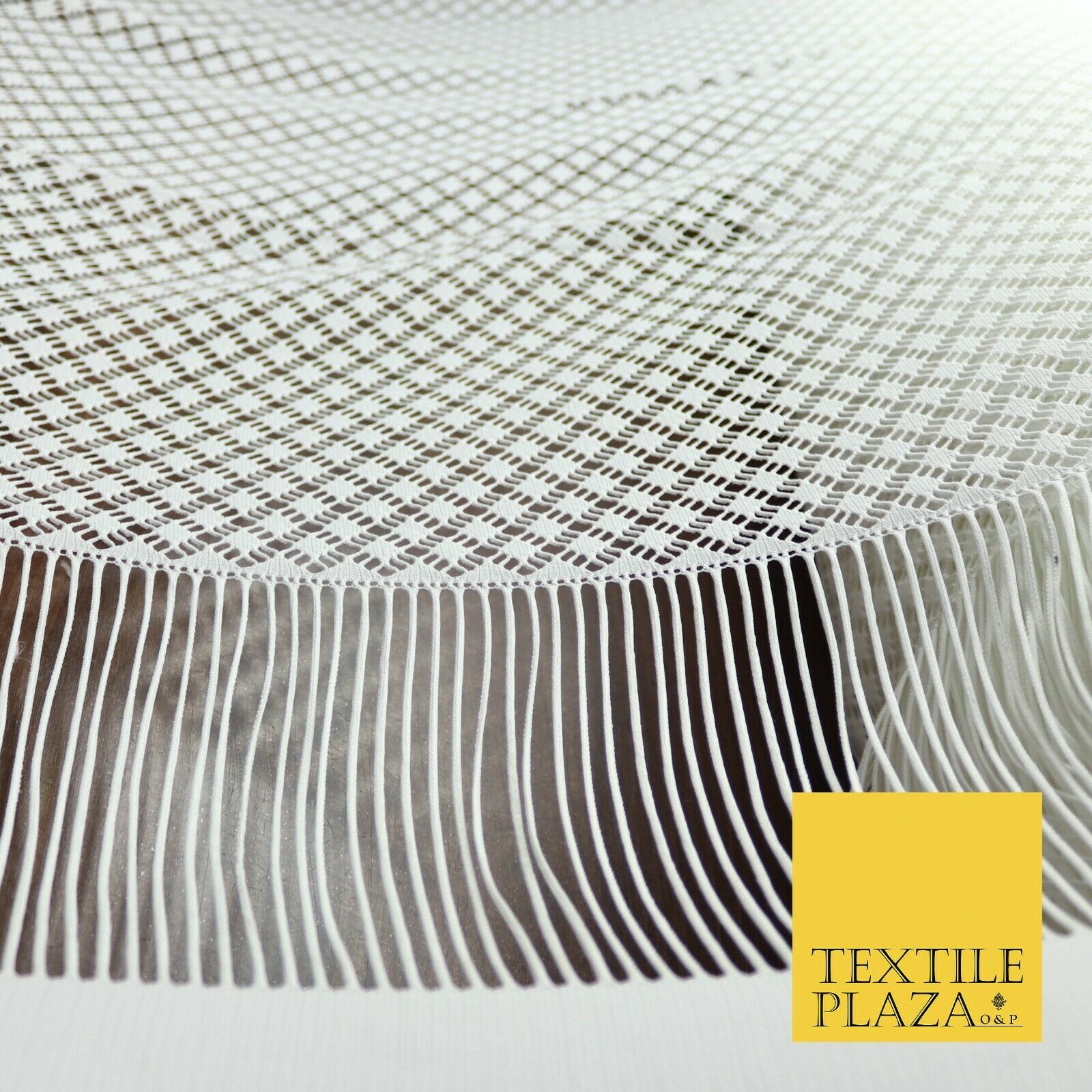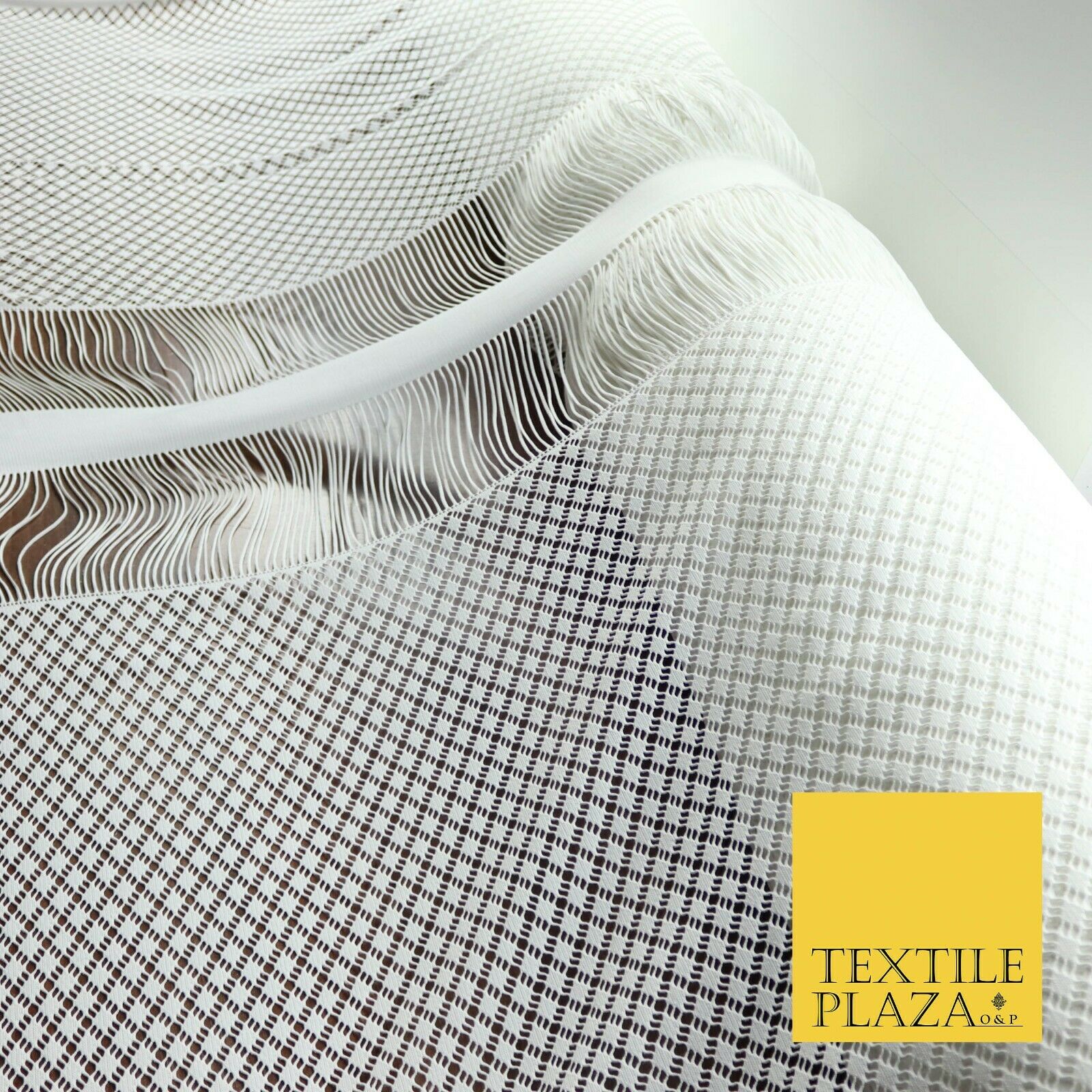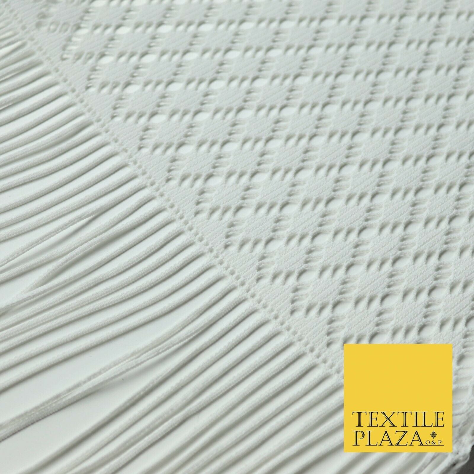 White Fringe Weave Lace Dress Fabric Coverup Swimwear Kimono Craft 69" Wide 4429