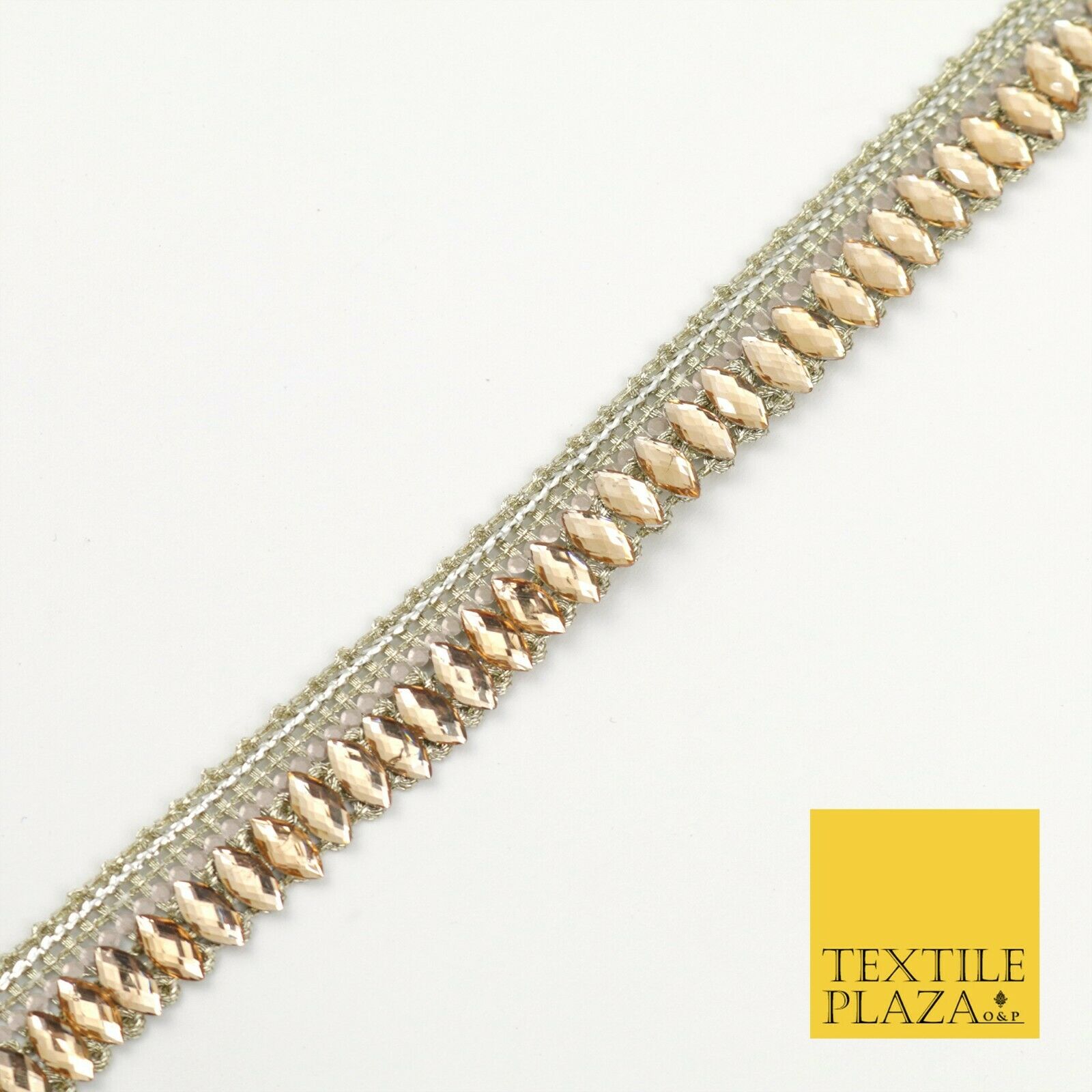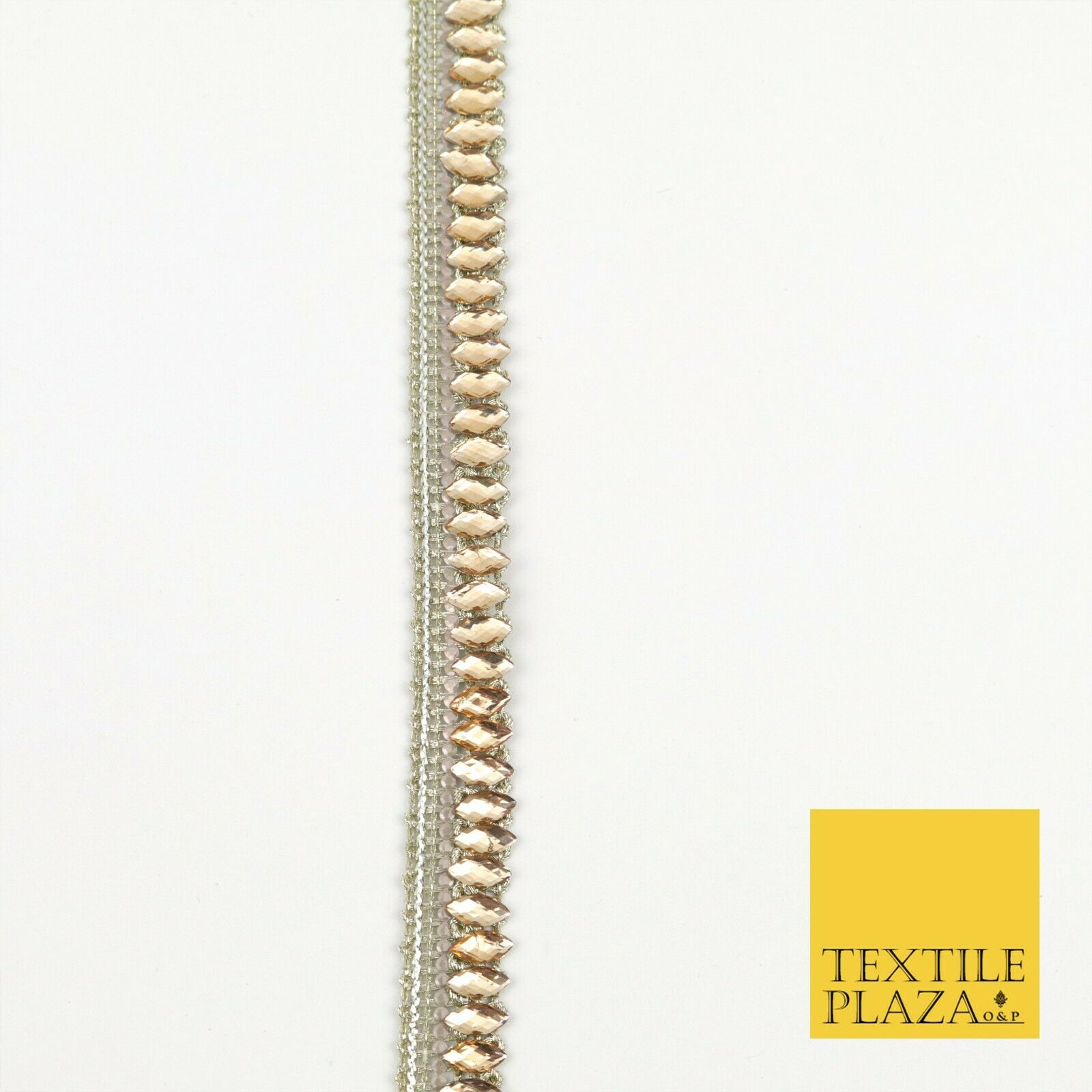 White Gold Infinite Diamonte Stone Trimming Ribbon Border Lace Ethnic Gota(X201)