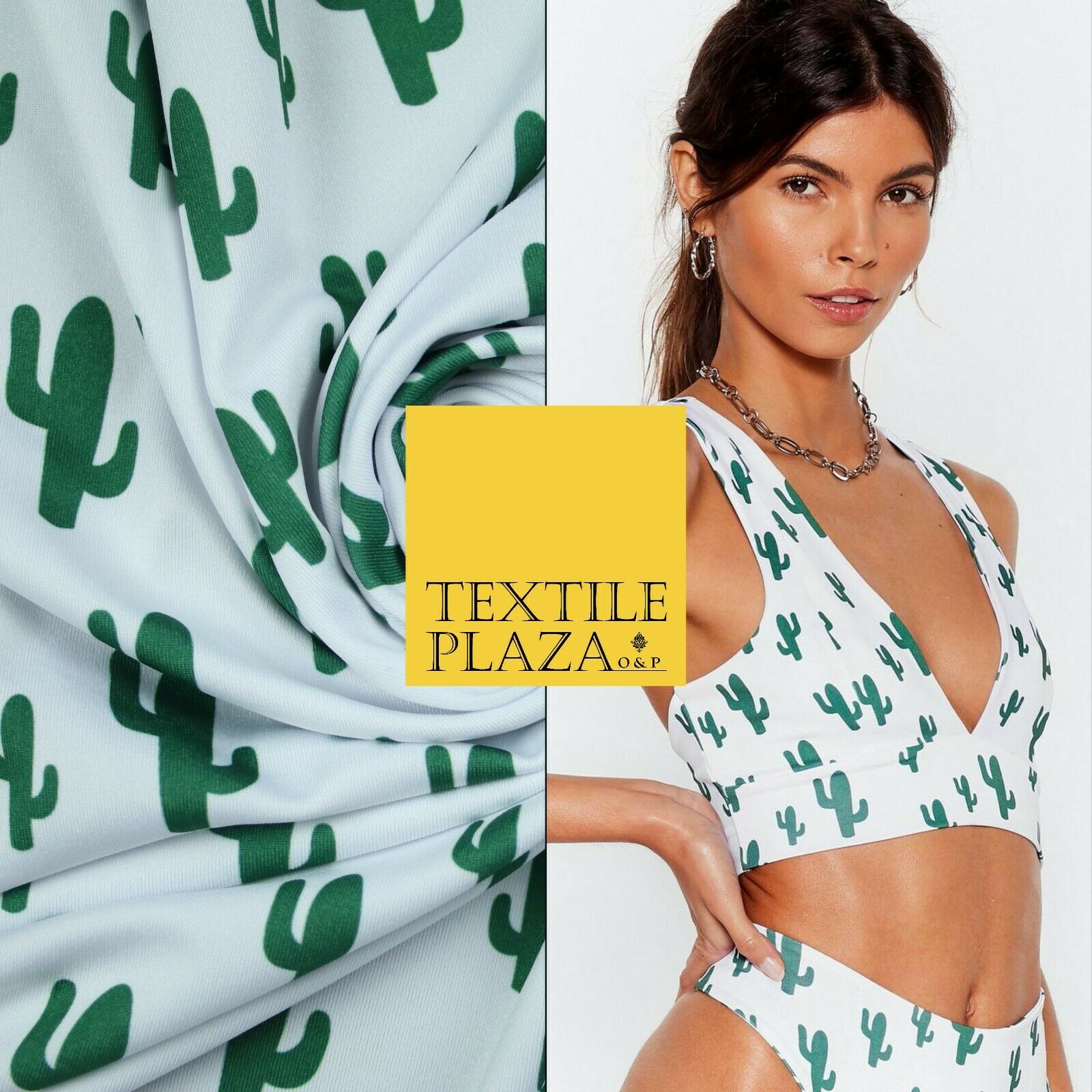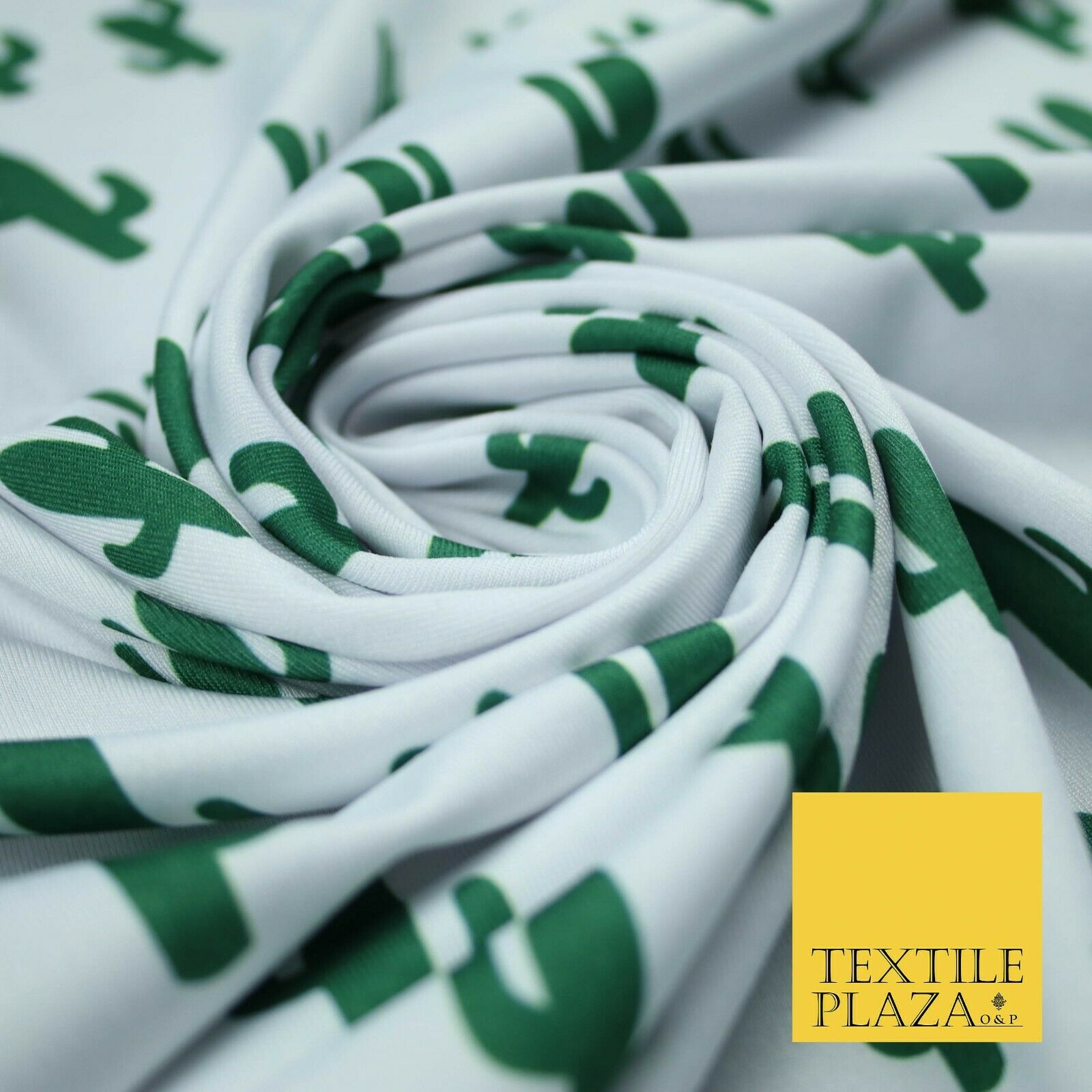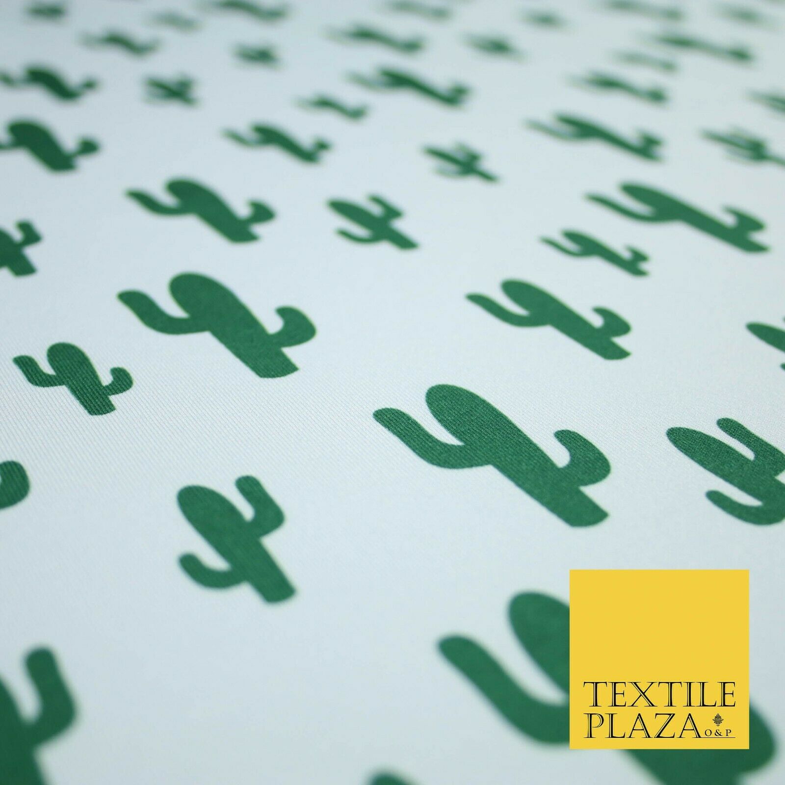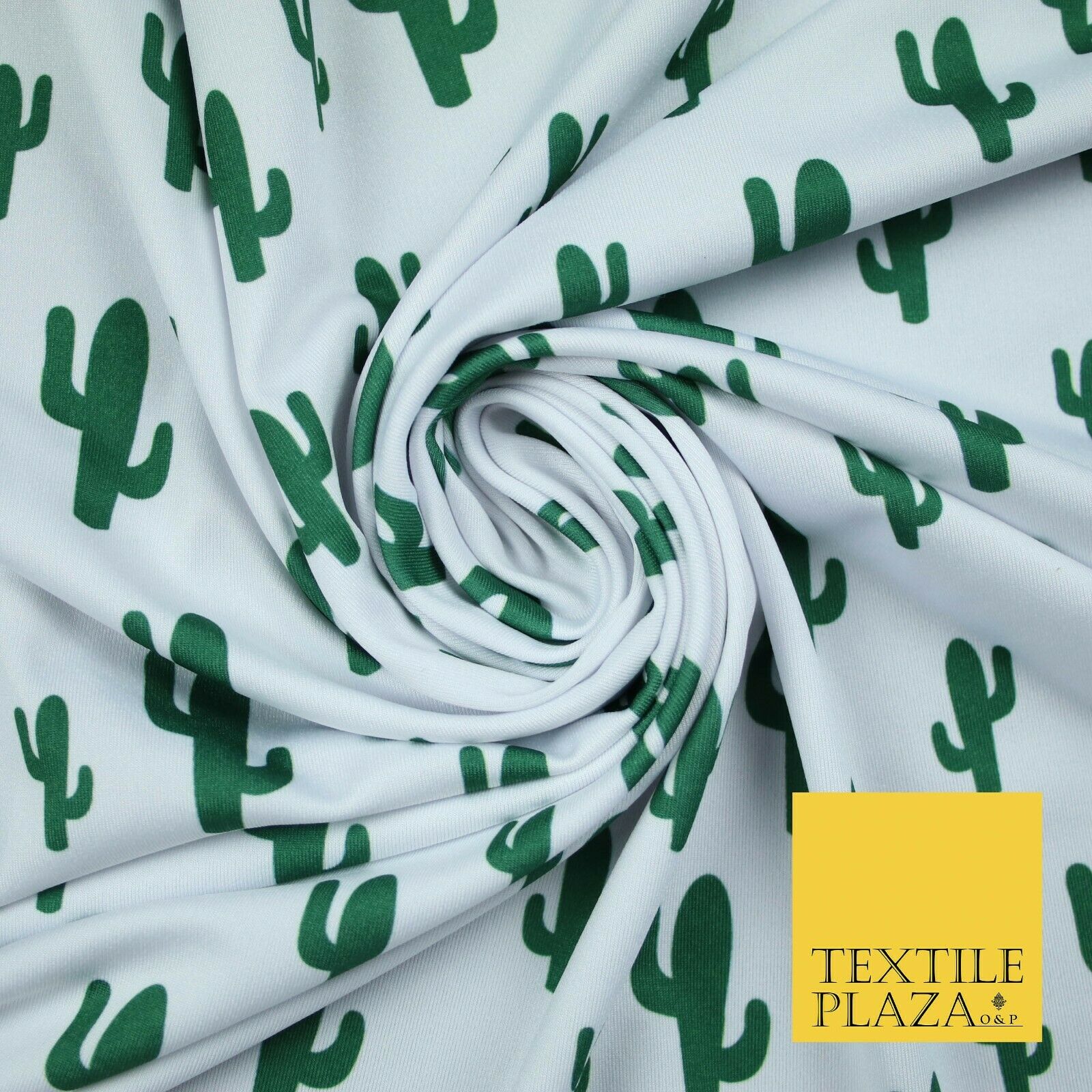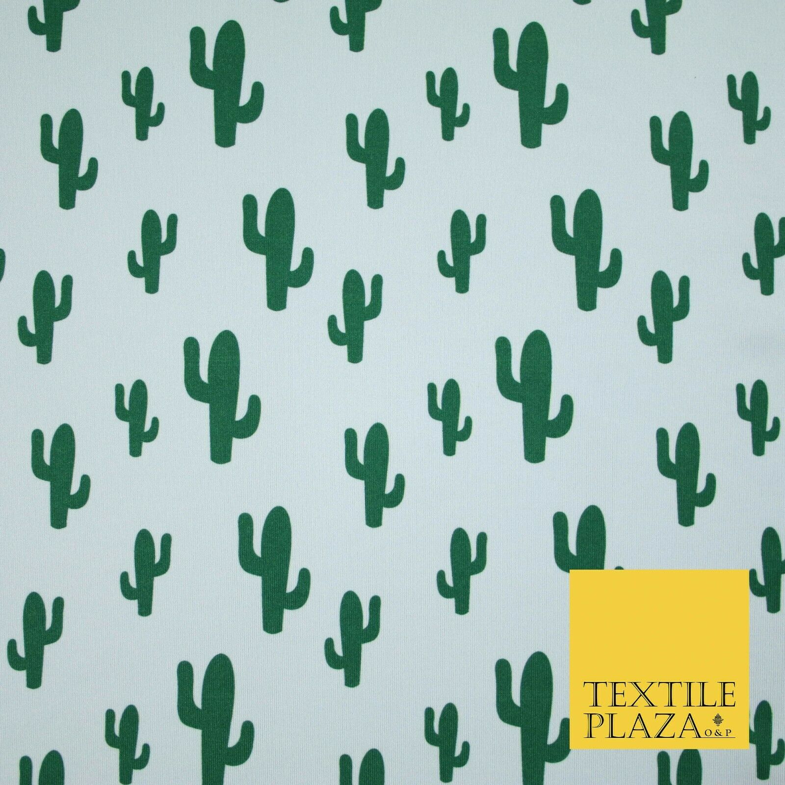 White Green CACTUS CACTI Printed Stretch JERSEY FABRIC Dress Costume 56" 4360