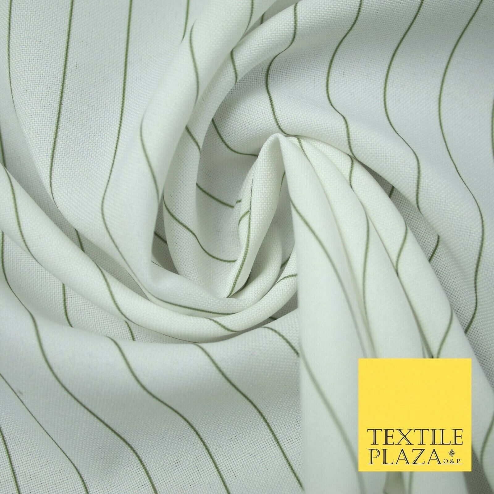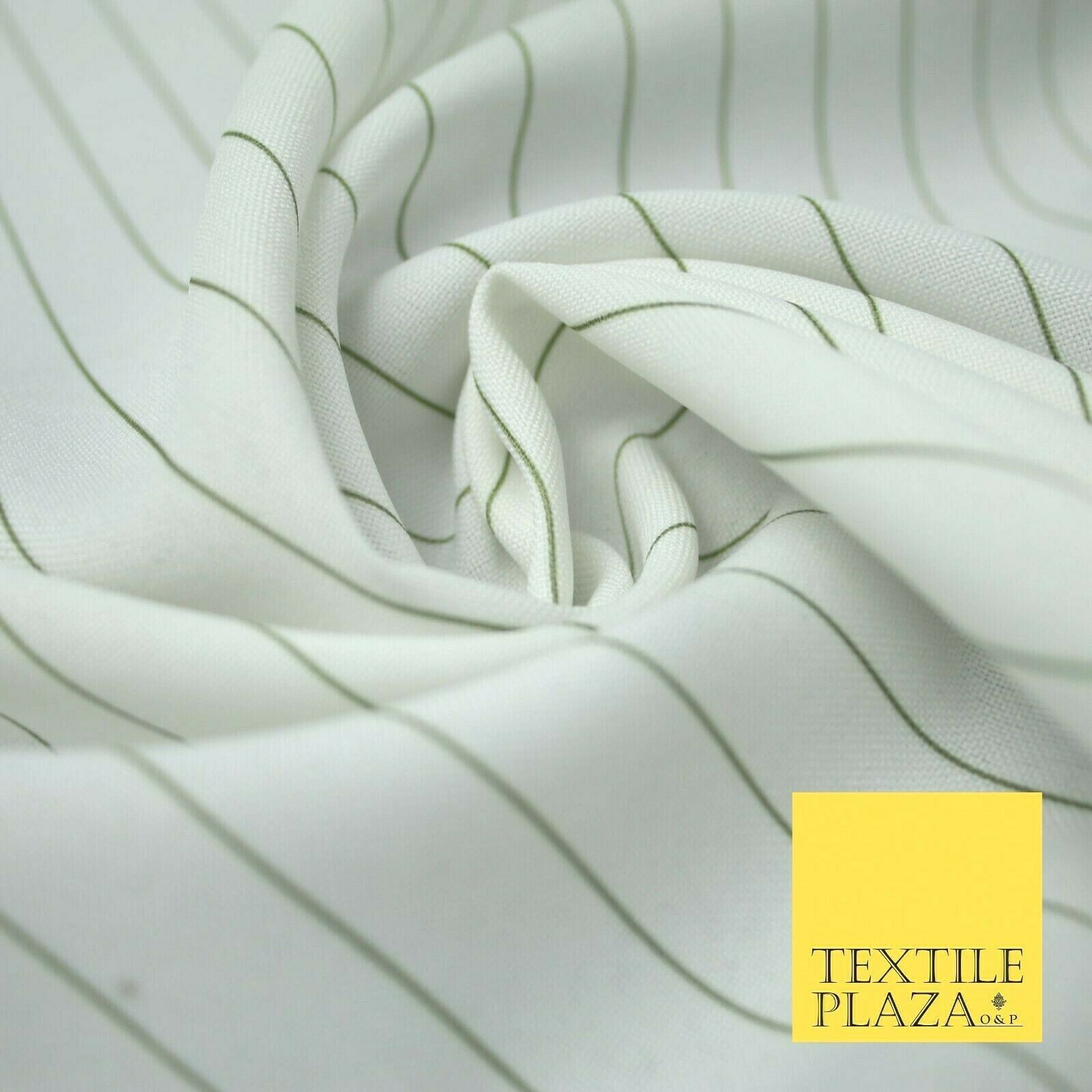 White Green Hairline Striped Bi-Stretch Fabric Suiting Uniform Skirts 58" 4713
