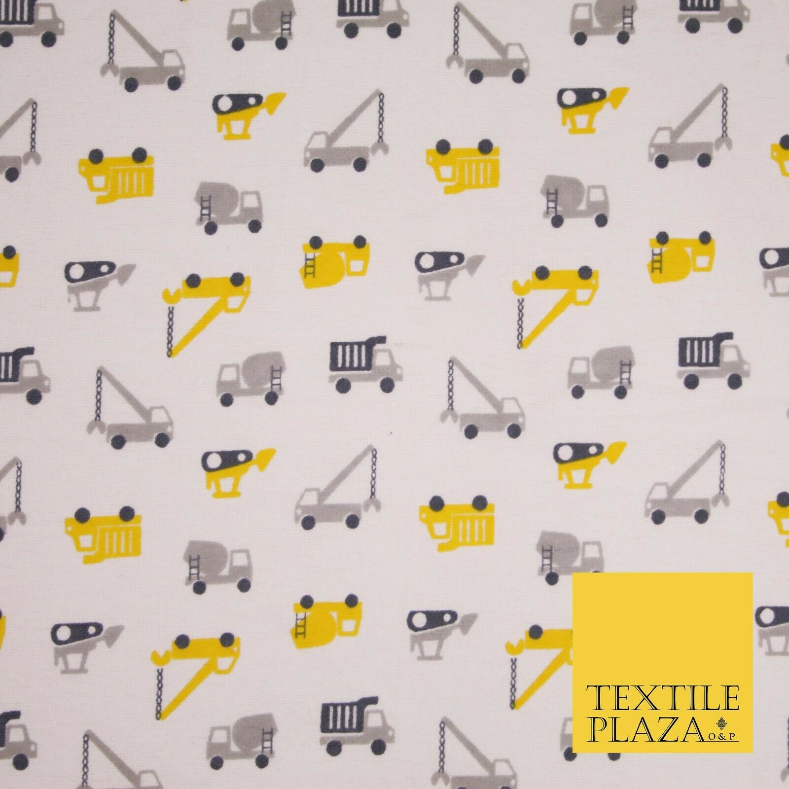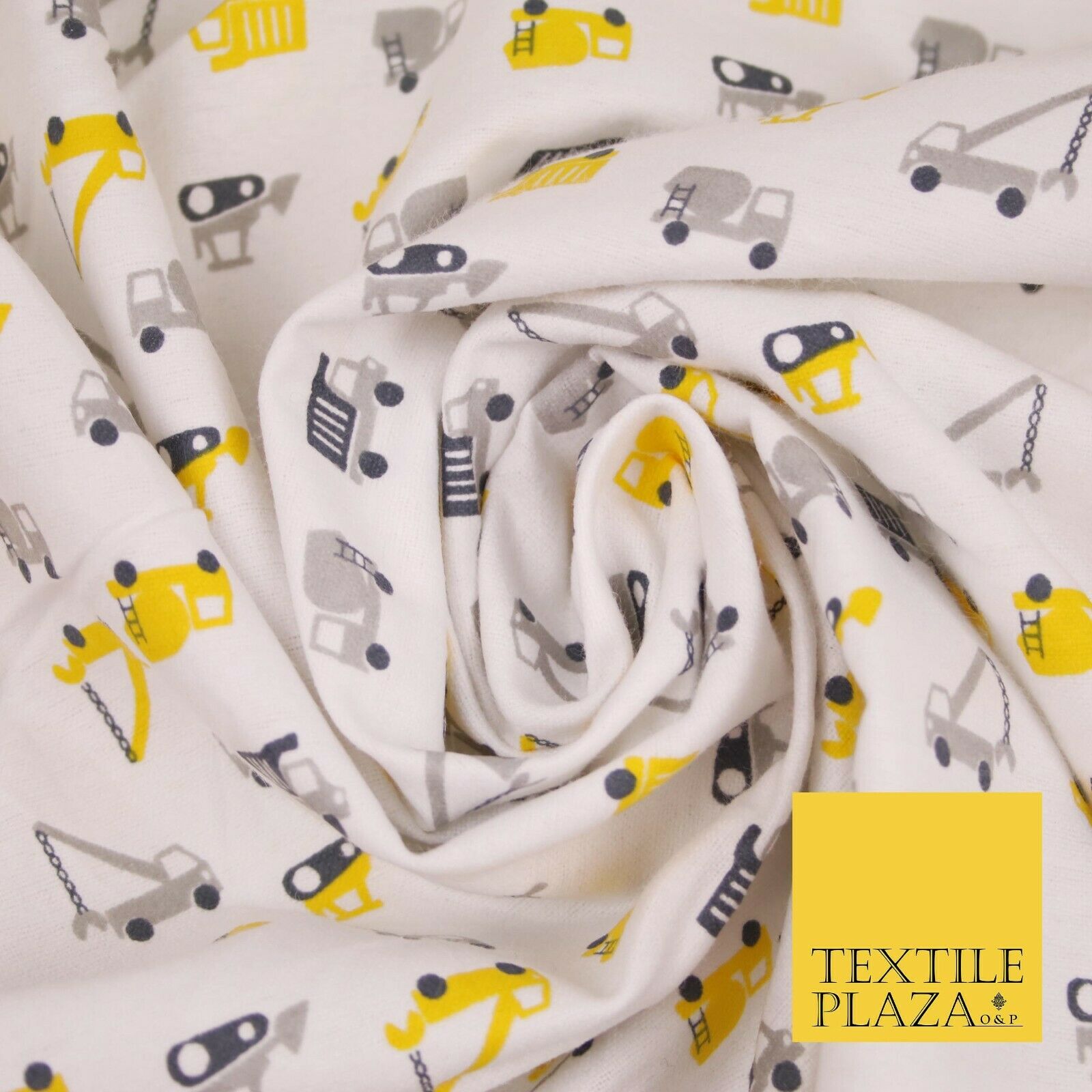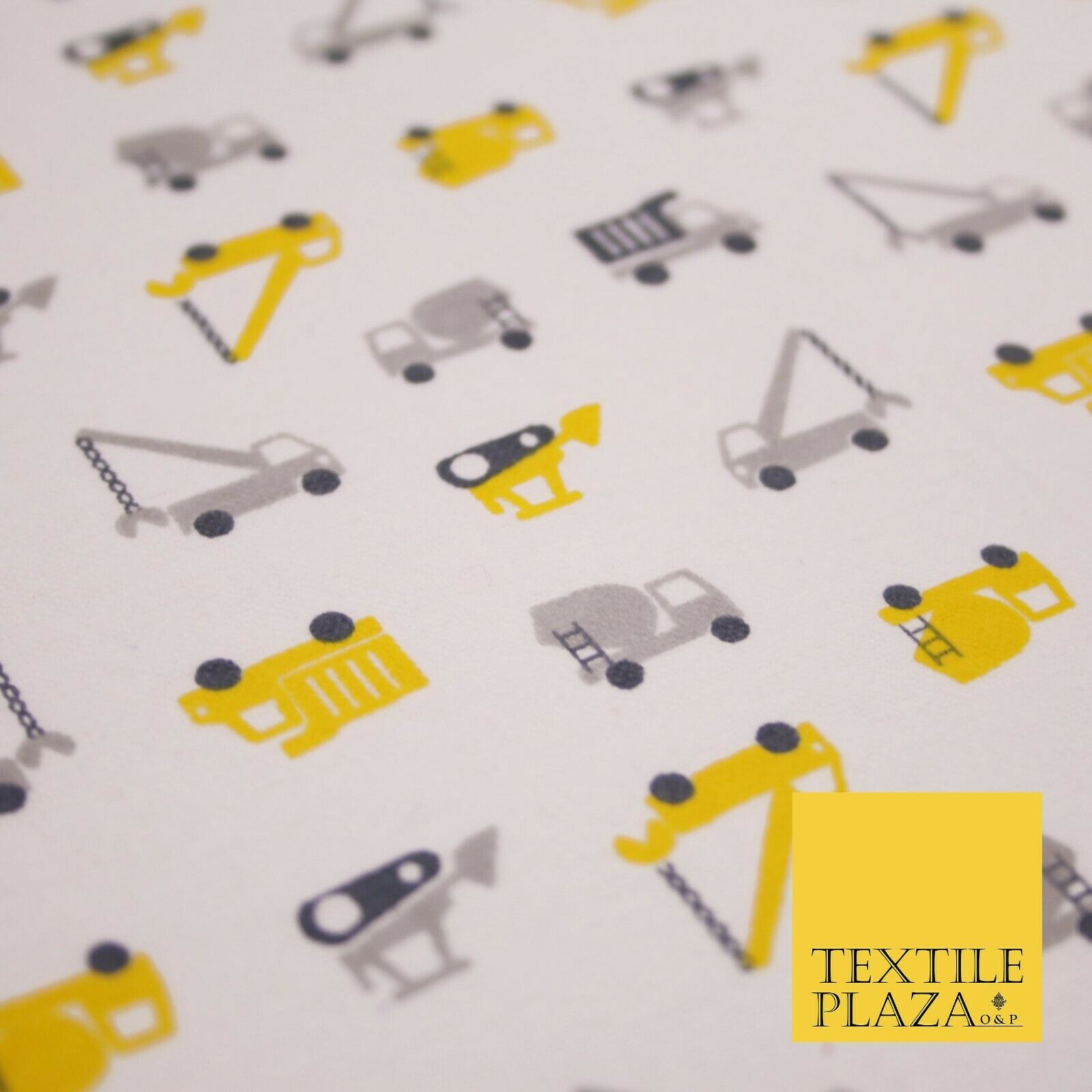 White Lorry Construction Truck Winceyette Soft Brushed Cotton Print Fabric 3983