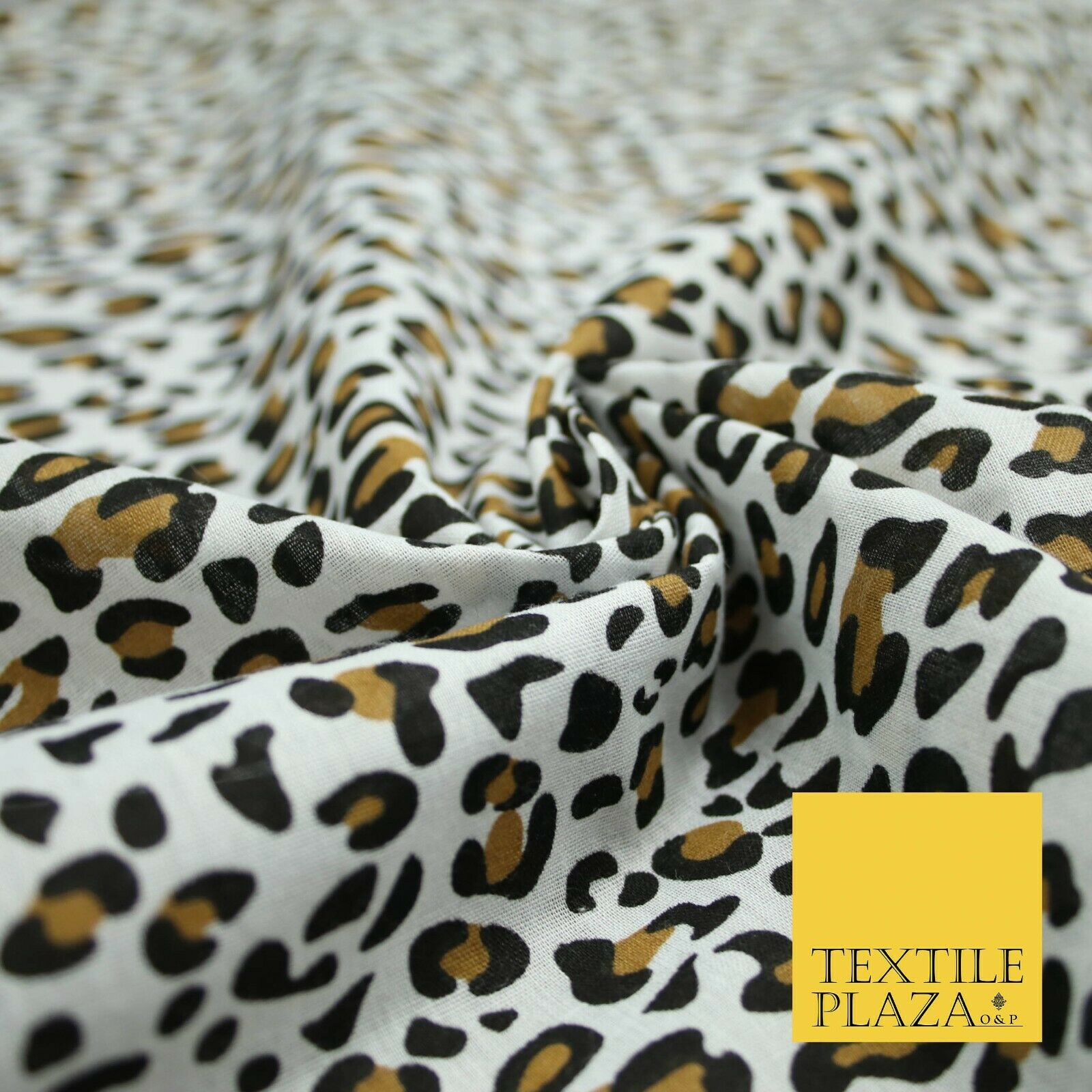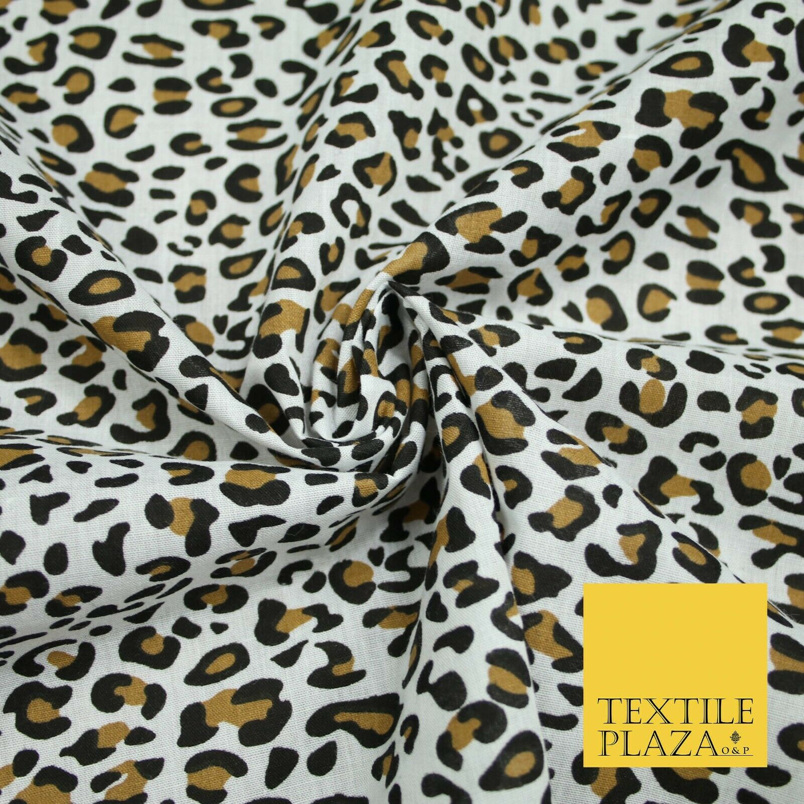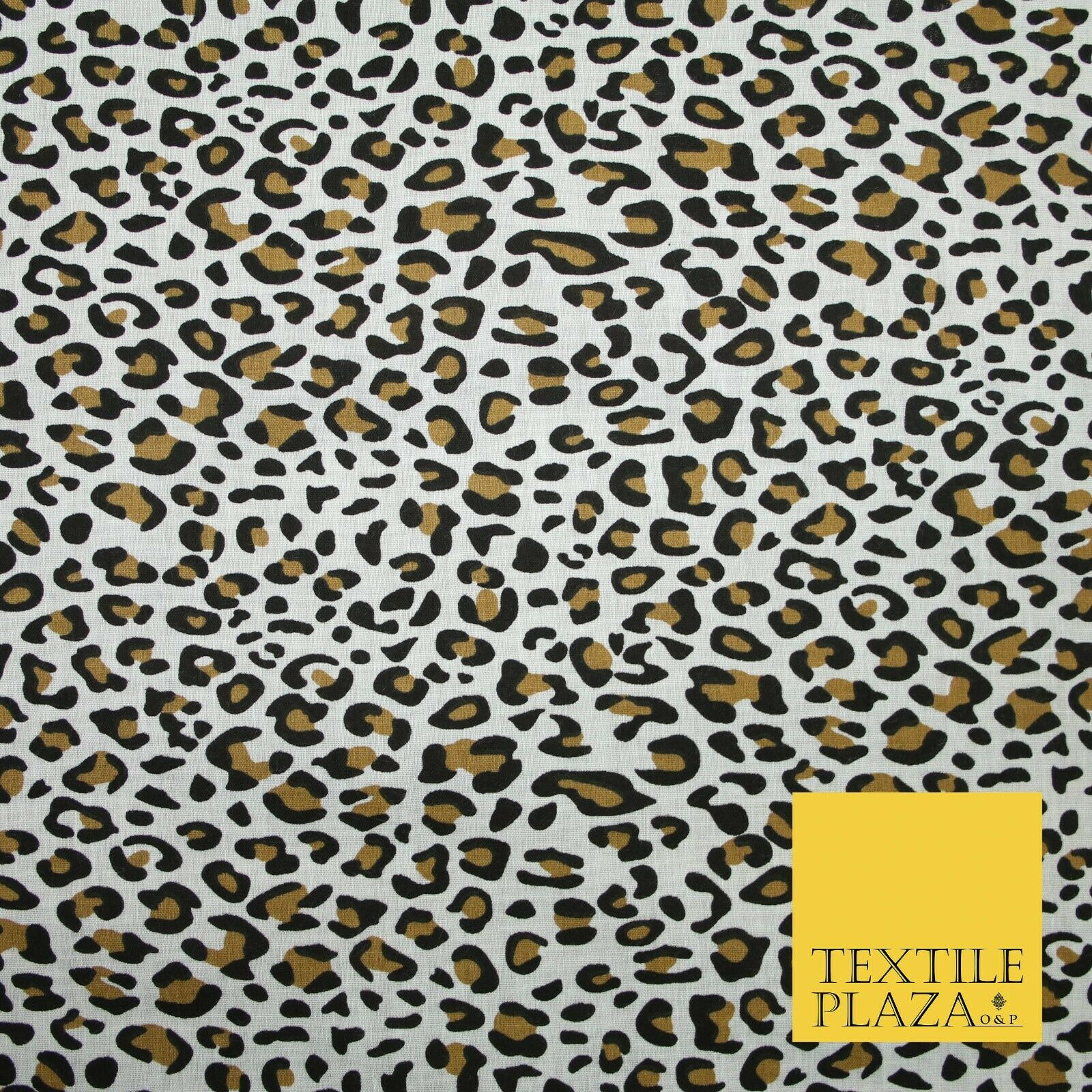 White Mini Leopard Cheetah Cat Animal Printed Poly Cotton Fabric Polycotton 5031