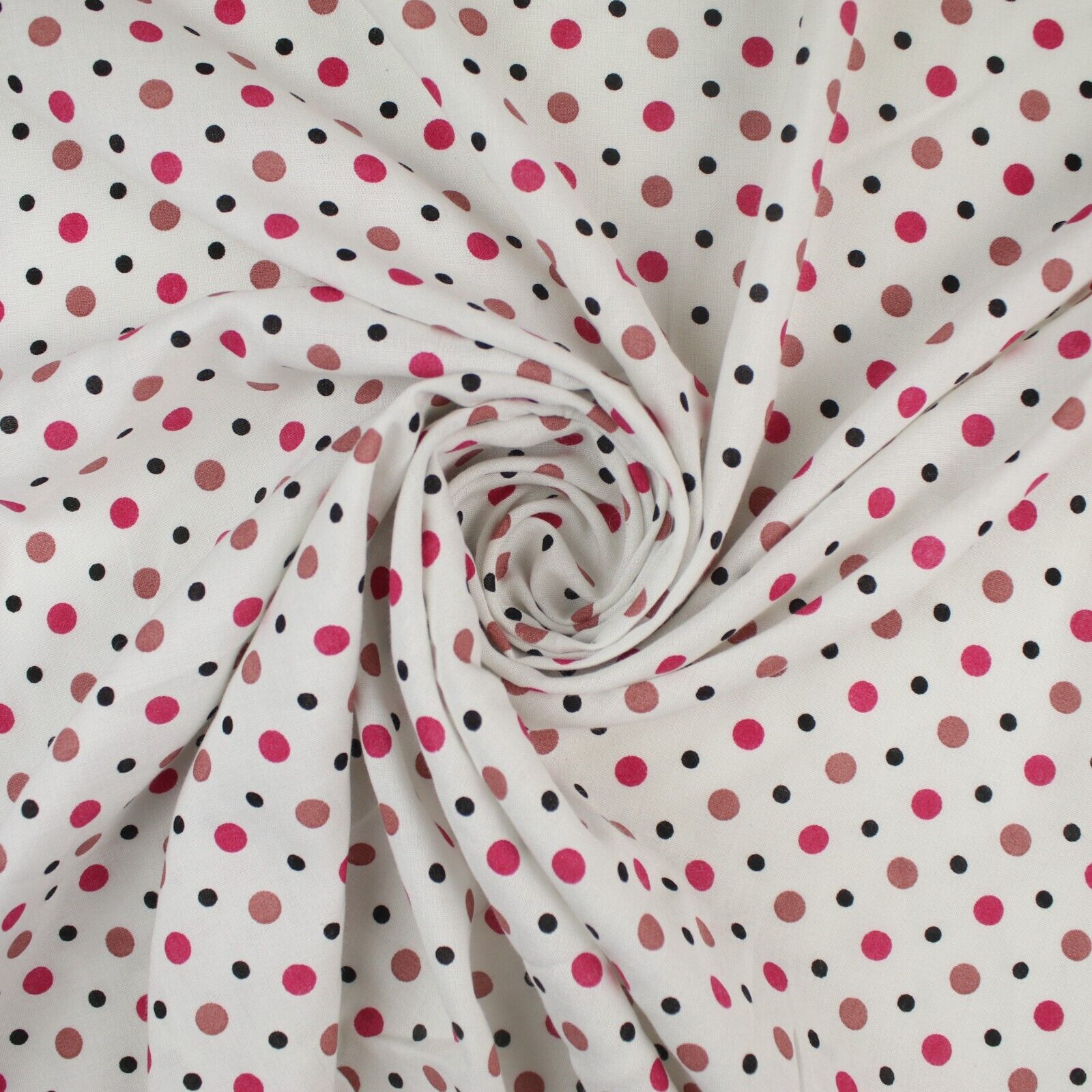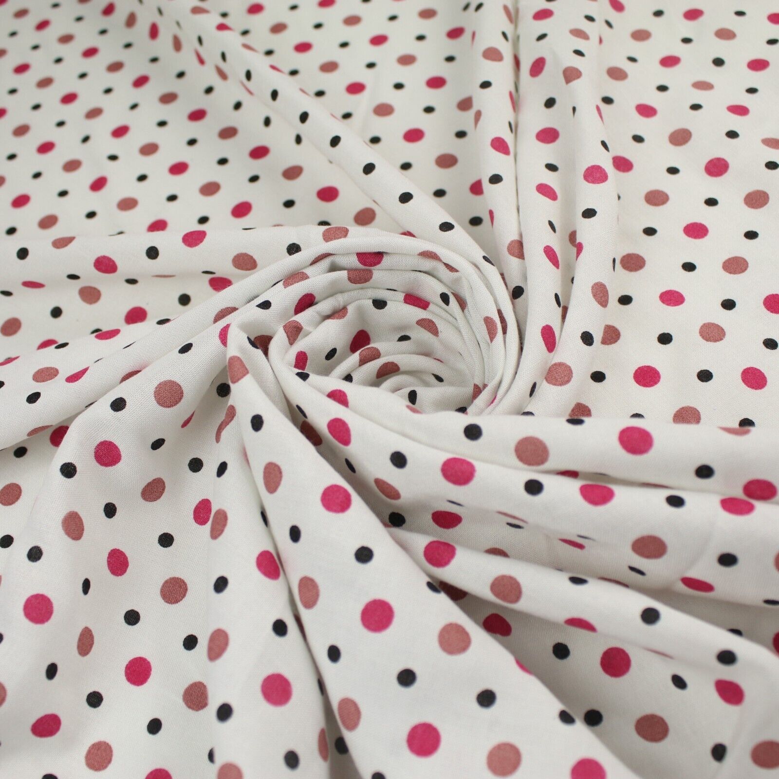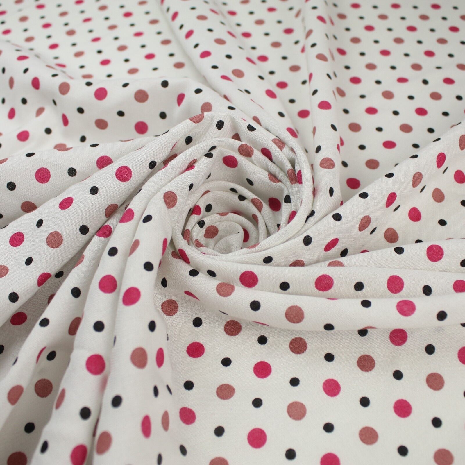 White Pink Black Multi Size Dot Spot Soft Viscose Dress Fabric Material 58" 959