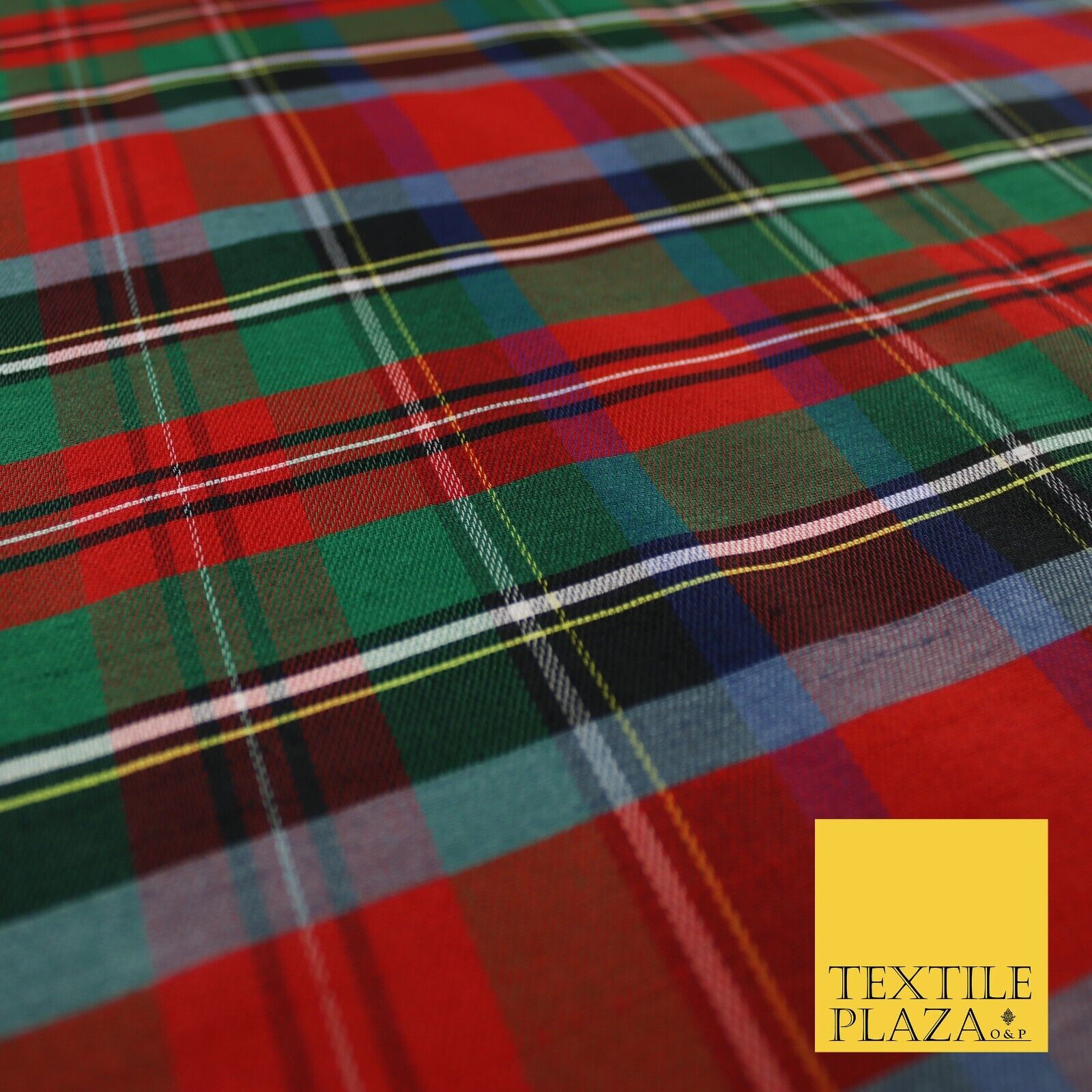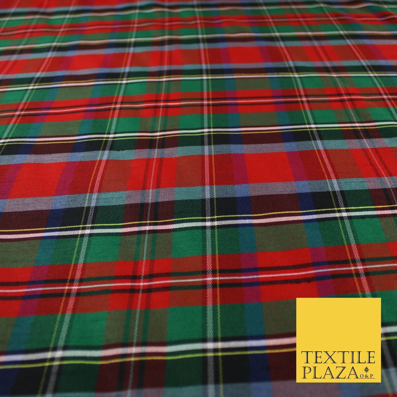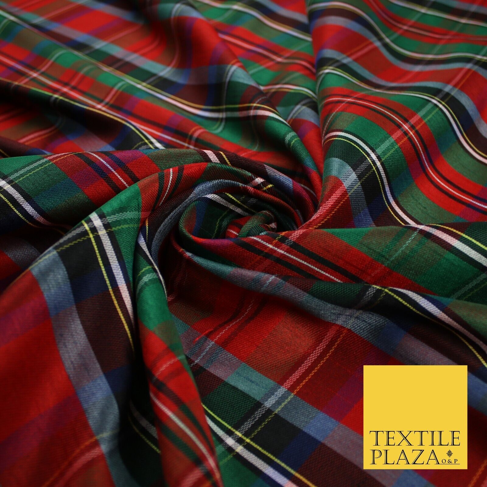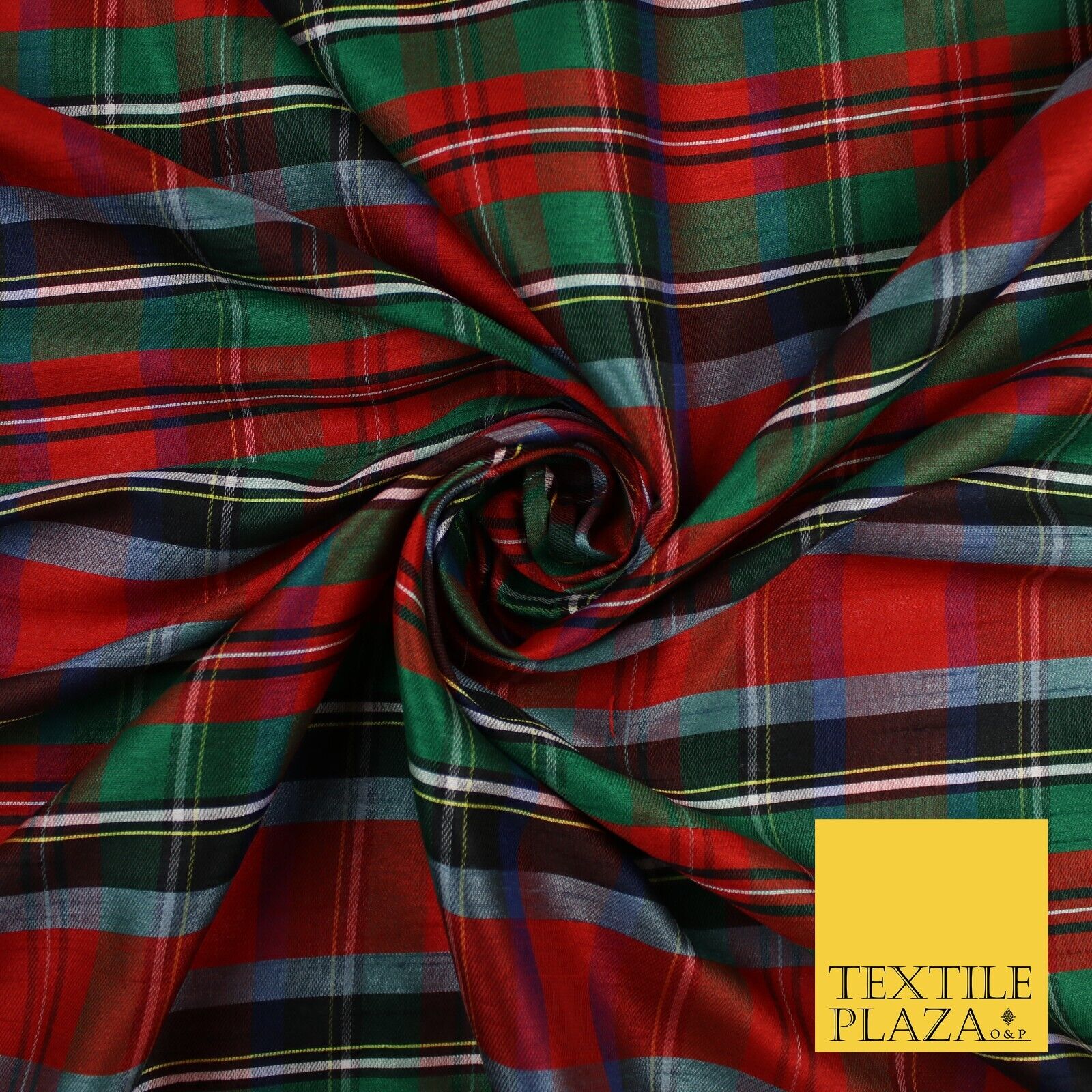 White Red Green Check Tartan Dupion Faux Raw Silk Fabric Xmas Material 57" 9643