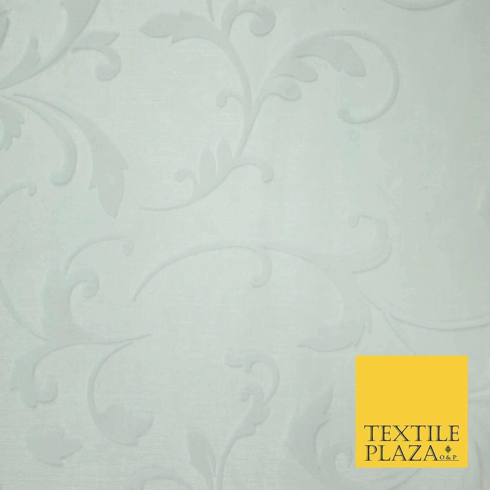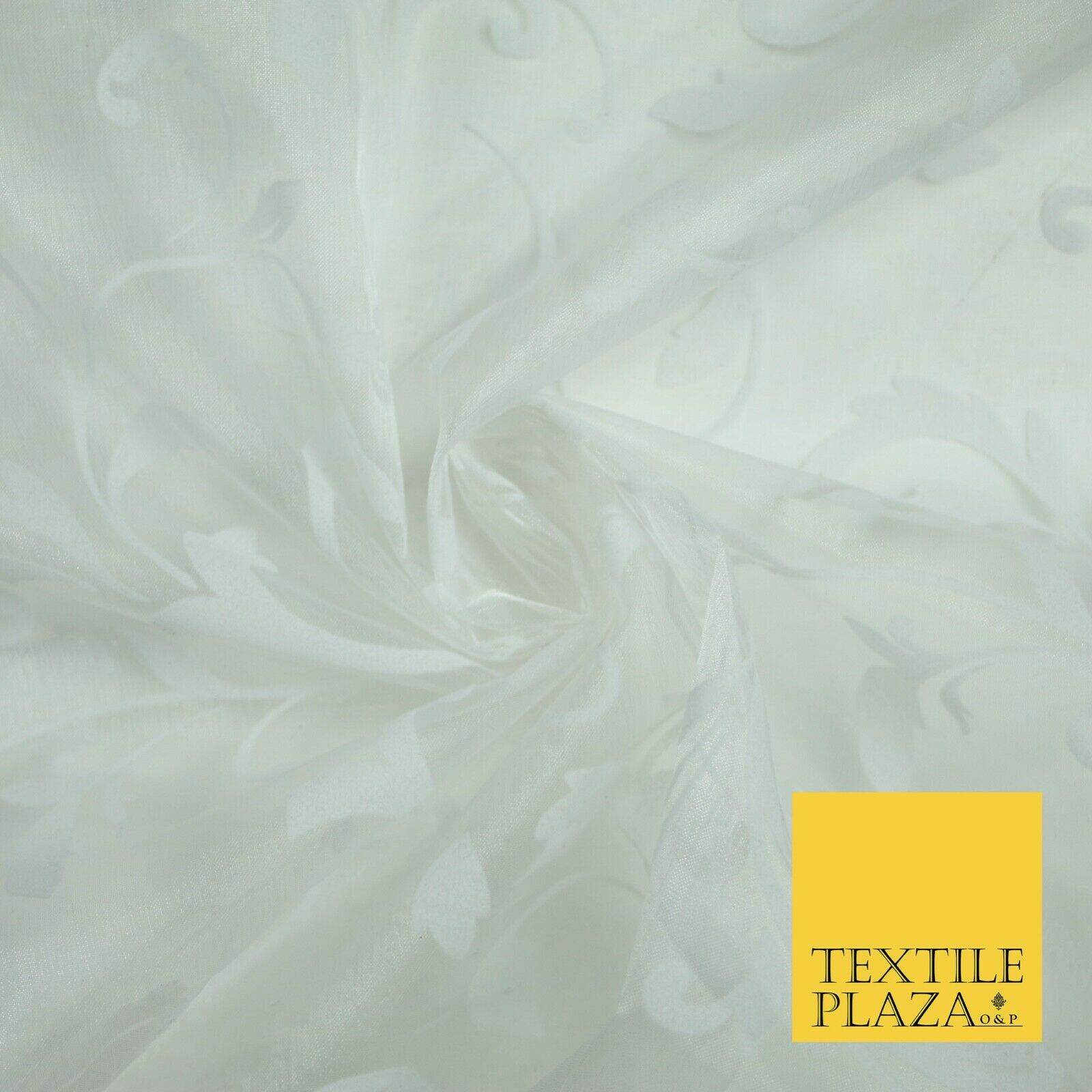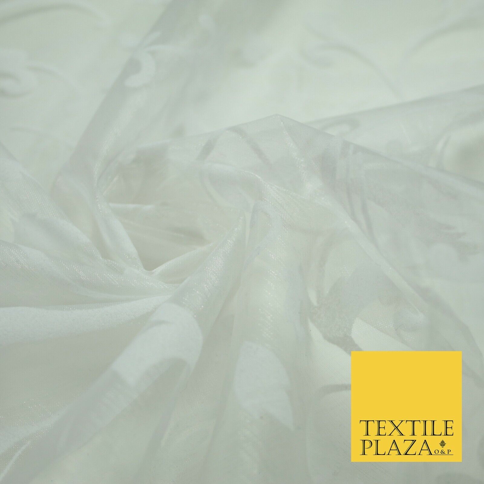 White / Silver Ornate Swirl Organdi Organza Fabric - 100% Nylon - 60" - 6354