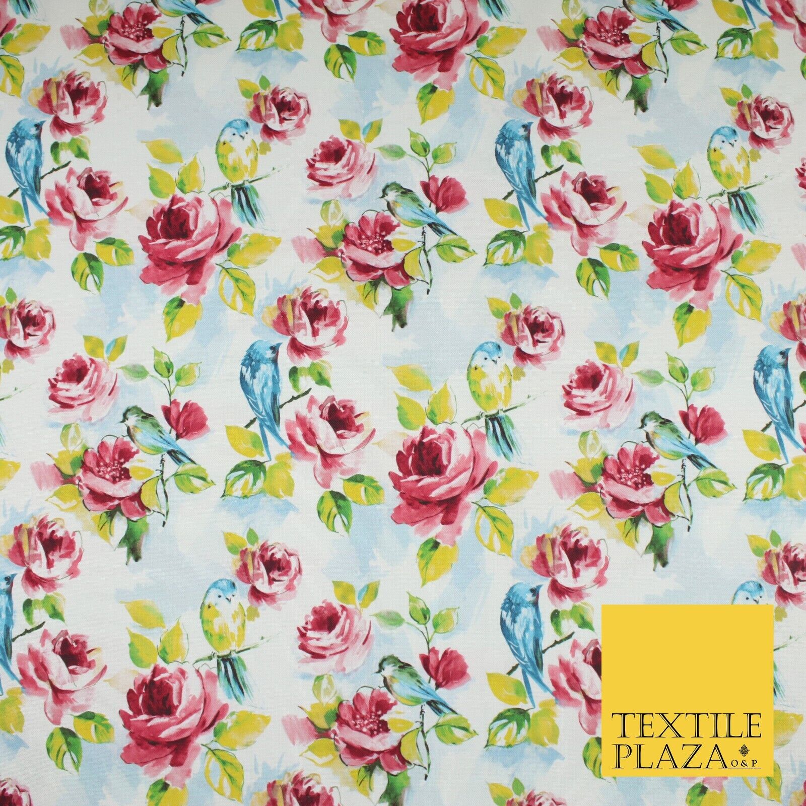White Watercolour Artsy Floral Roses 100% Cotton Canvas Print Fabric Craft 9097
