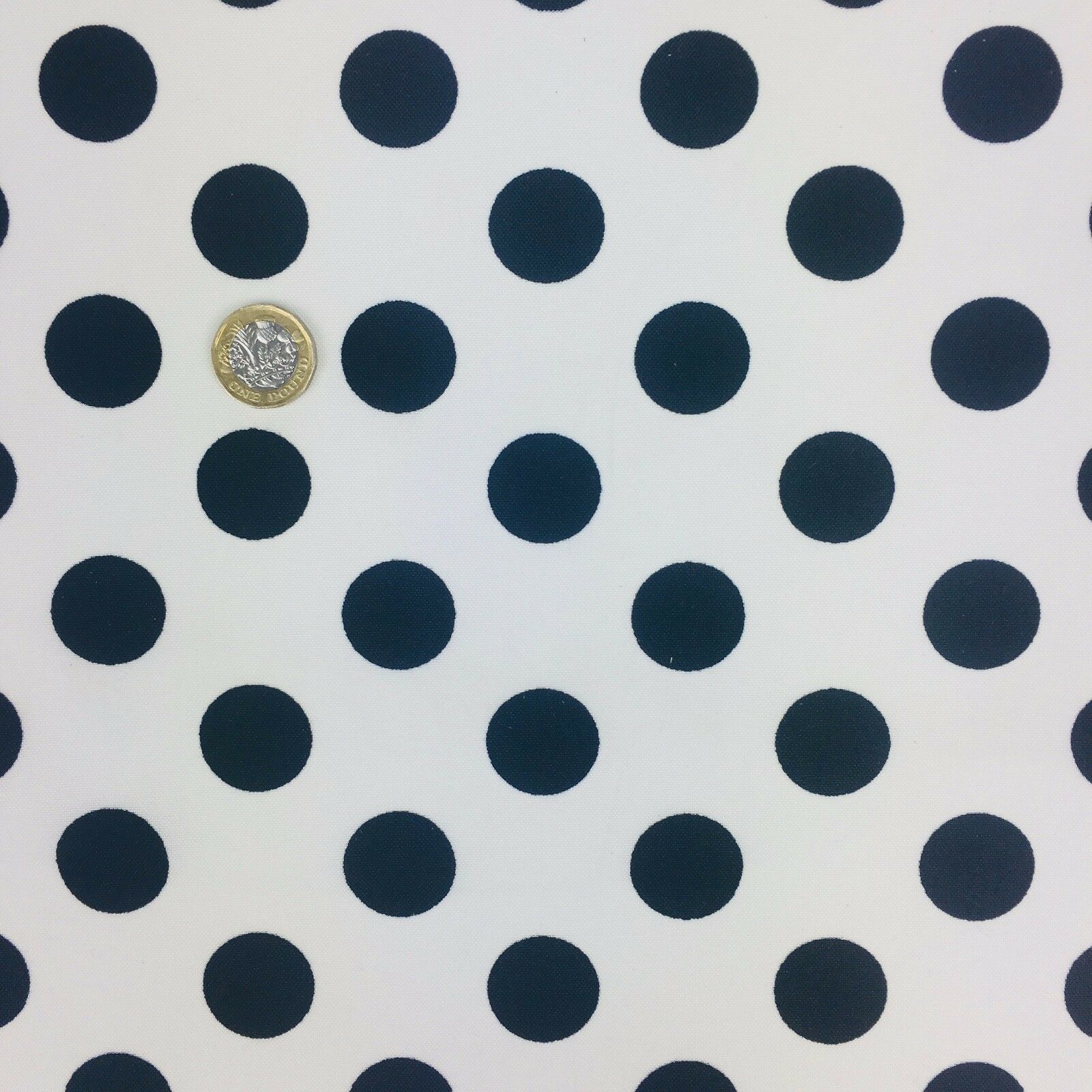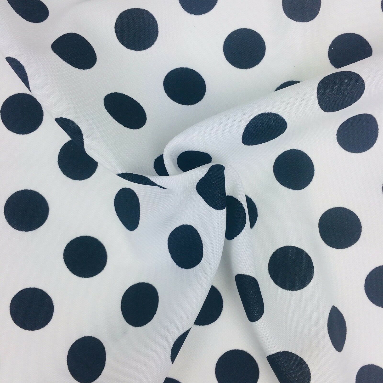 White with Black Polka Dot Spotted Spot Bi-Stretch Fabric Material 58" RC85