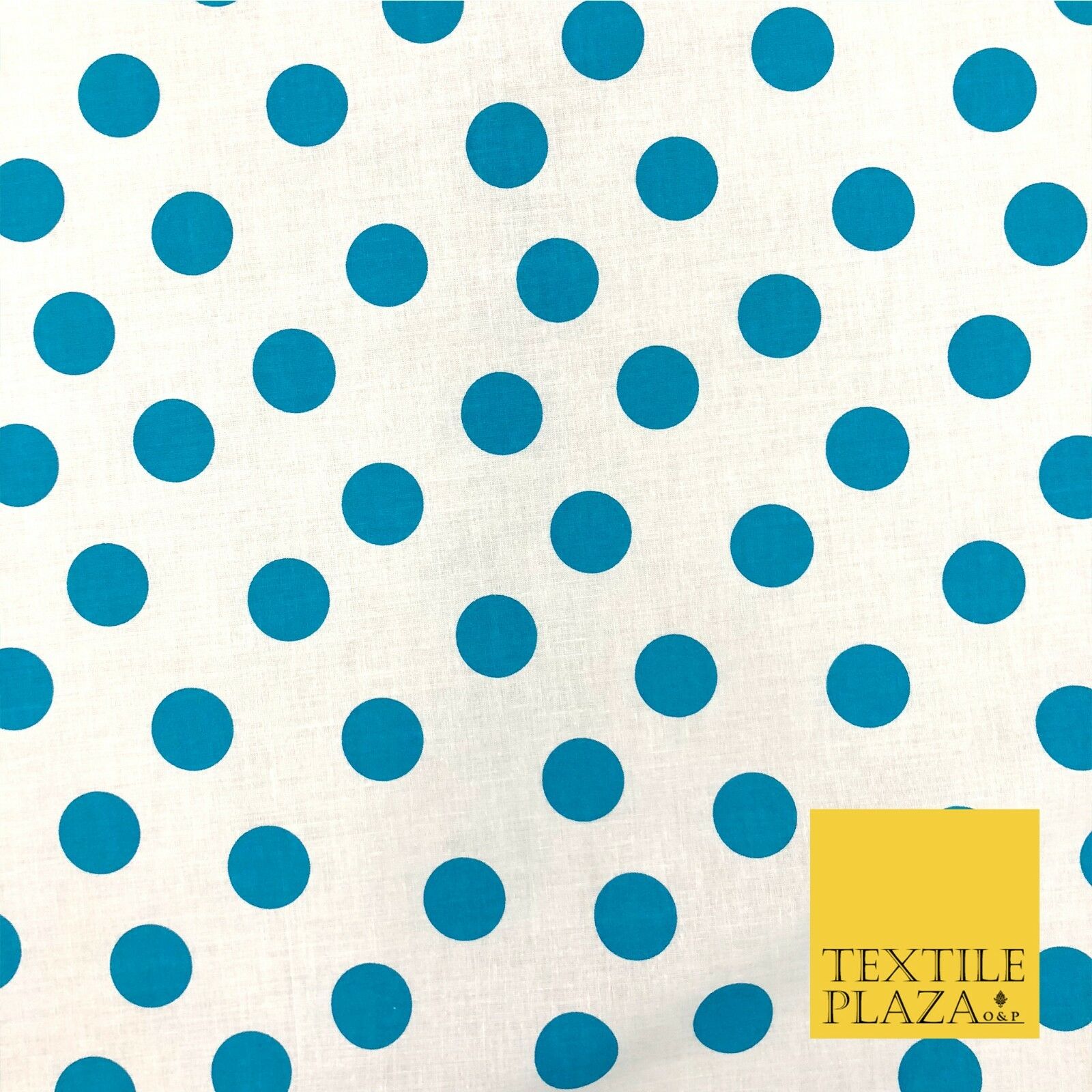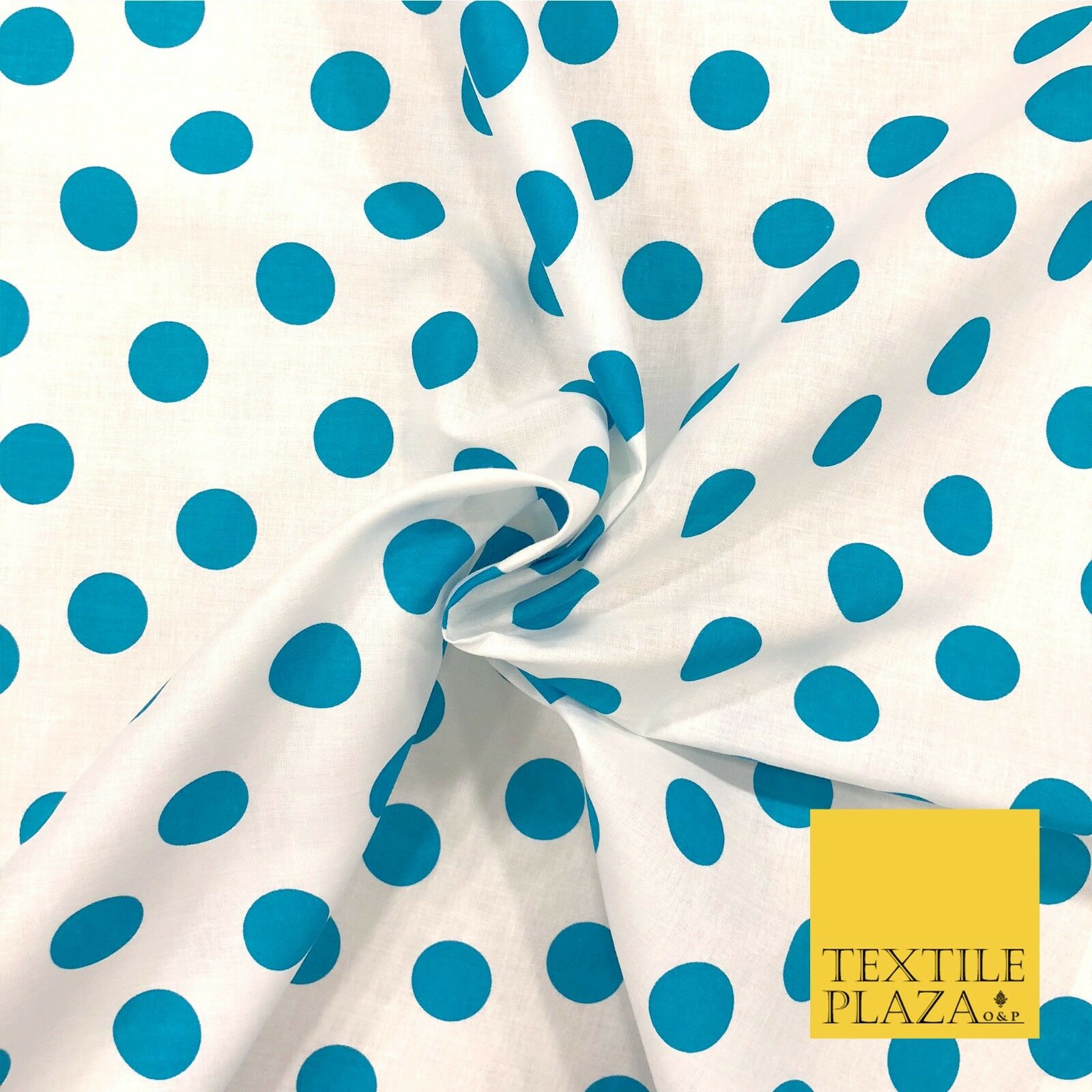 White with Turquoise Polka Dot Spot Spotted 100% Cotton Fabric Dress Craft RC360