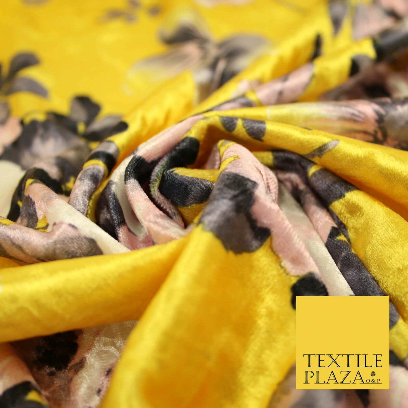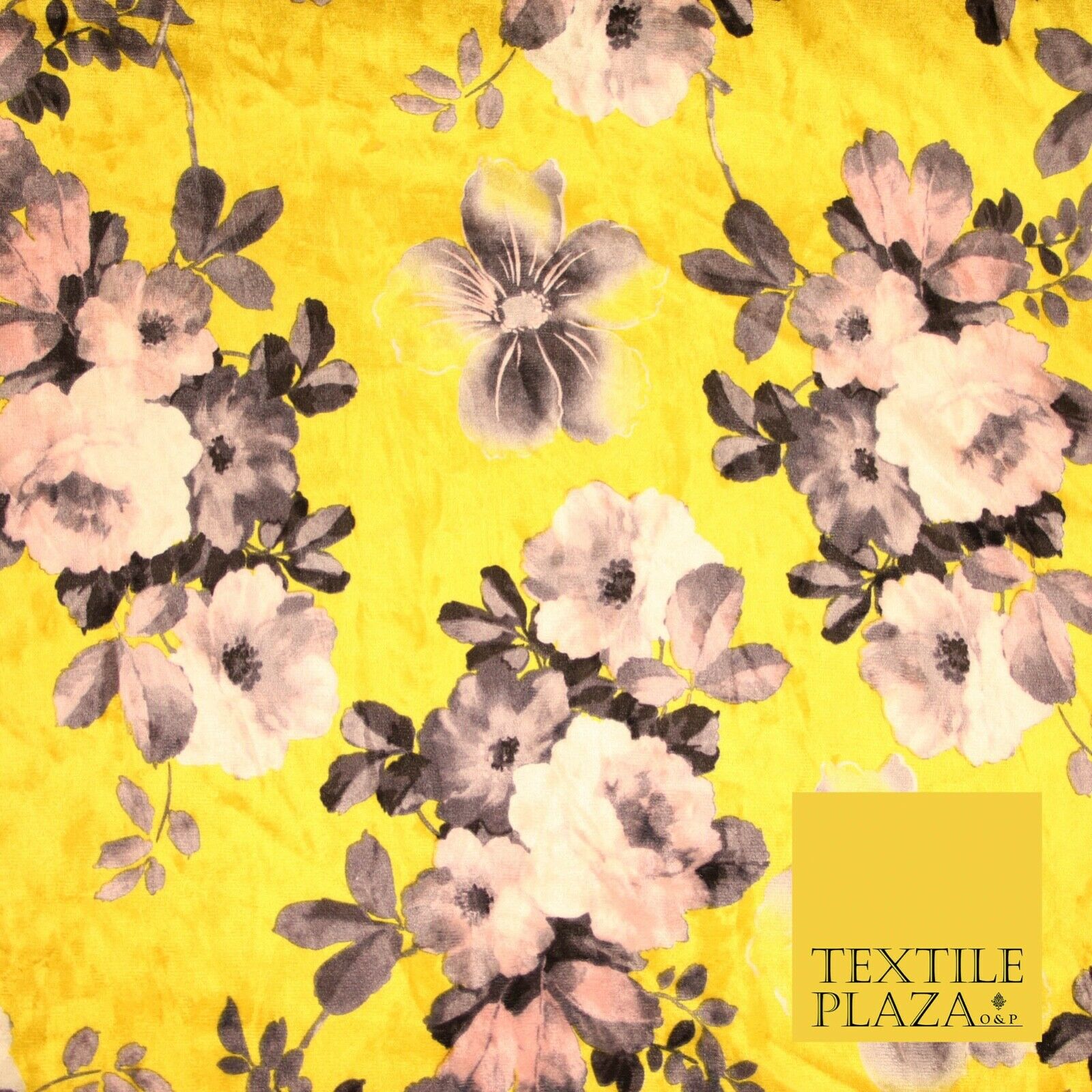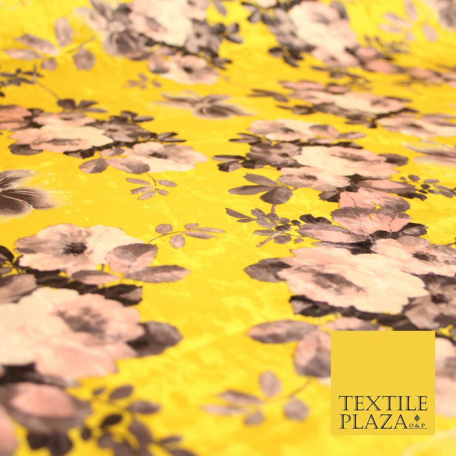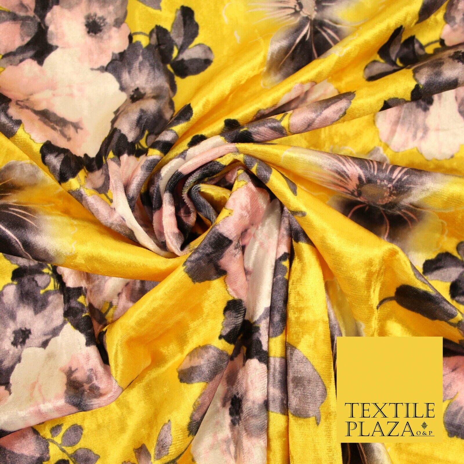 Yellow Vintage Floral Bunch Printed Soft Velvet Dress Fabric Craft Material 4705